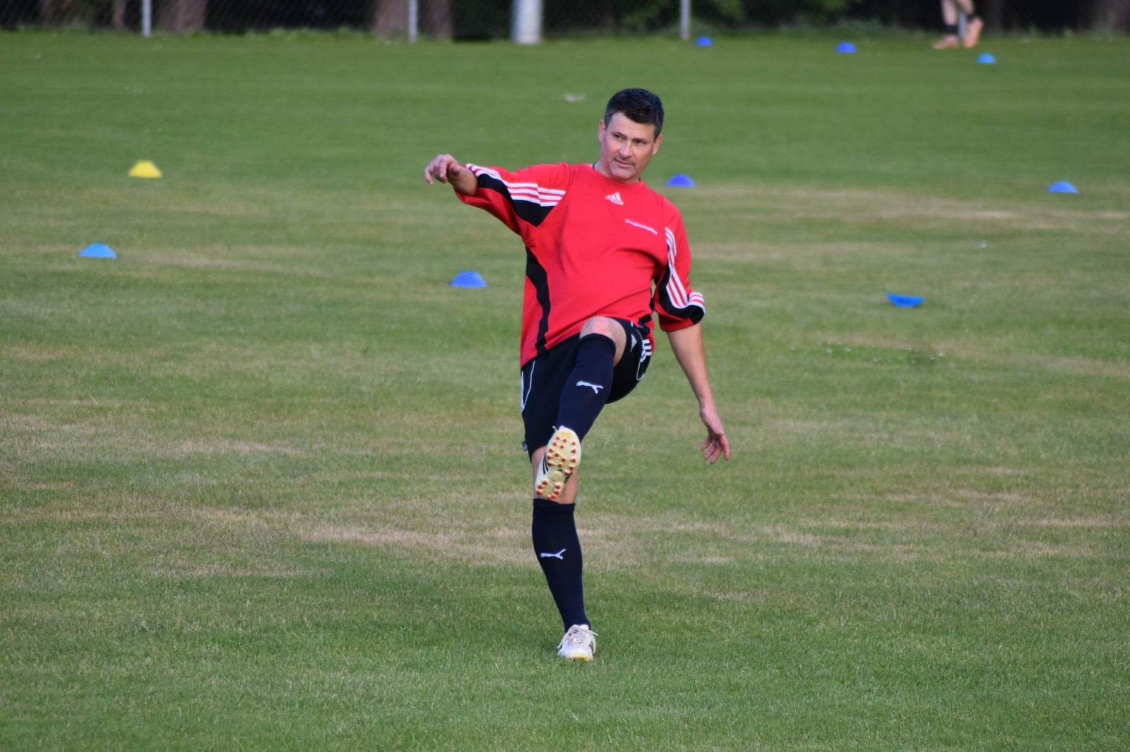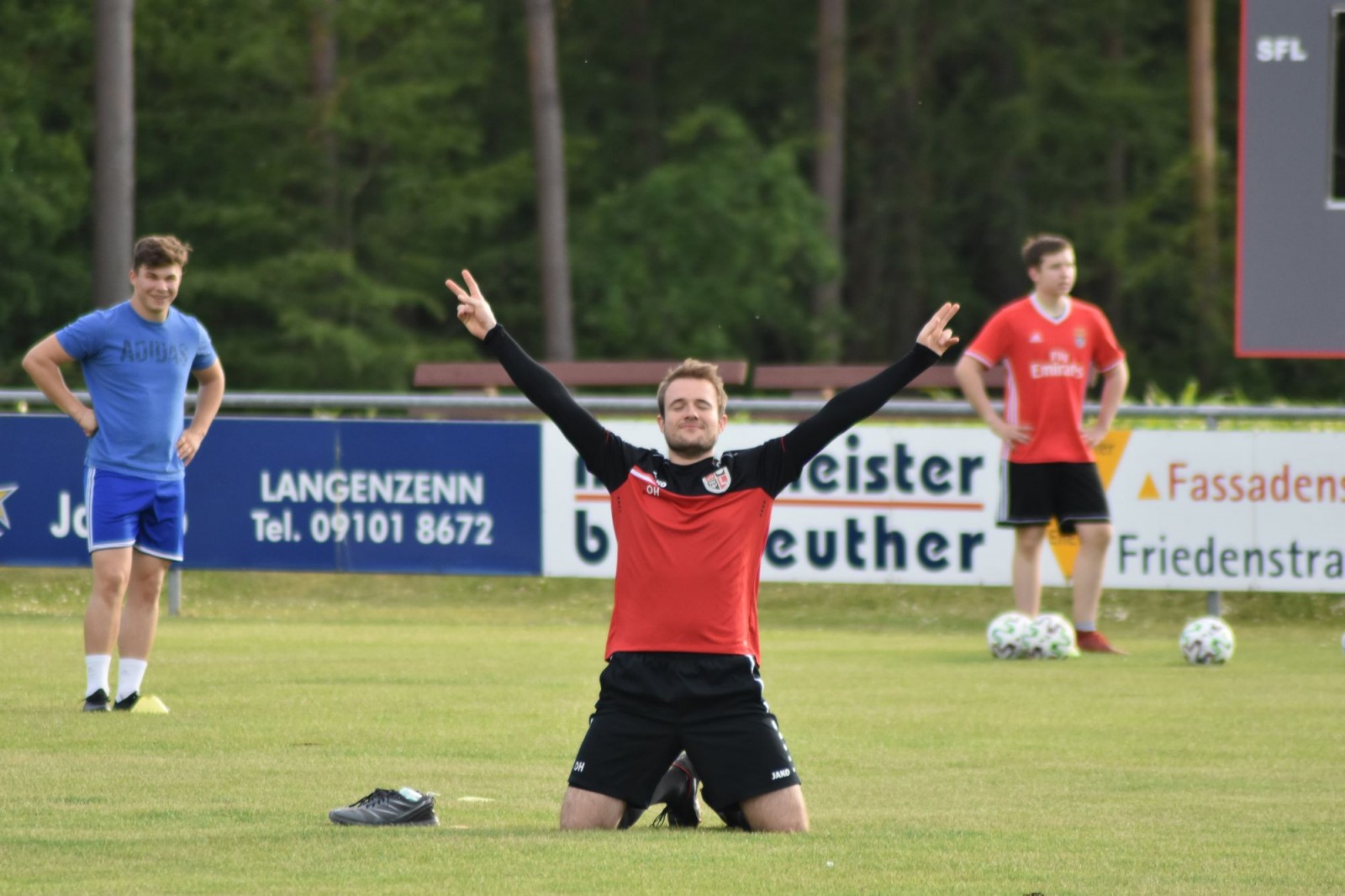 Sinnbildlich feierte Hannes Osswald (siehe Bild) die Tatsache, dass heute mit viel Disziplin wieder gemeinsam Fussball gespielt werden konnte.