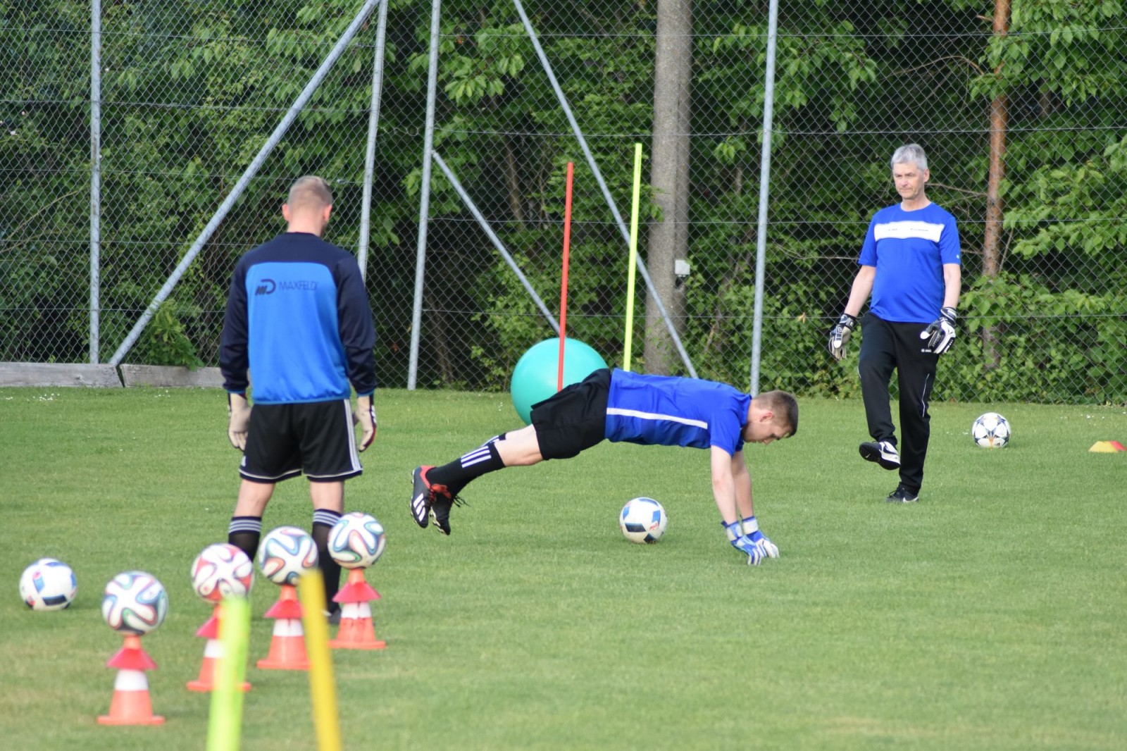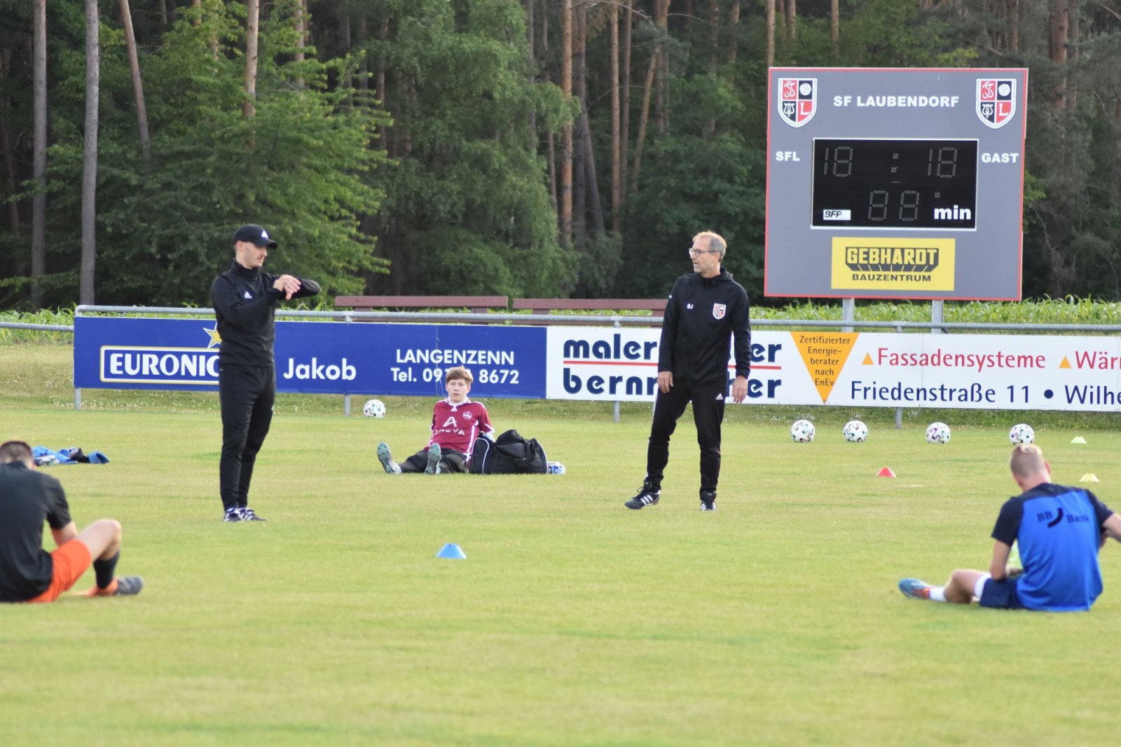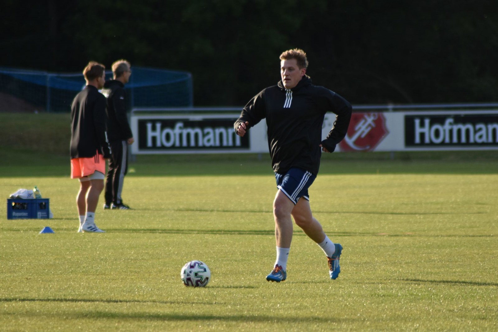 Das fünfköpfige Trainerteam um Bernd Jäger, Daniel Apel, Sadik Alkac, Mirko Lindemann und Stefan Kuhn nutzen den A- und C- Platz um zahlreiche Übungen aufzubauen, die alle nötigen Abstände zulassen. Das dies natürlich noch keinem normalen Training mit Zweikämpfen gleich kommt und einiges an Kreativität der Trainer einforderte, war bei den Spielern zweitranging. Die Freude über Ball, grüner Rasen und Sonnenschein stand heute im Mittelpunkt.