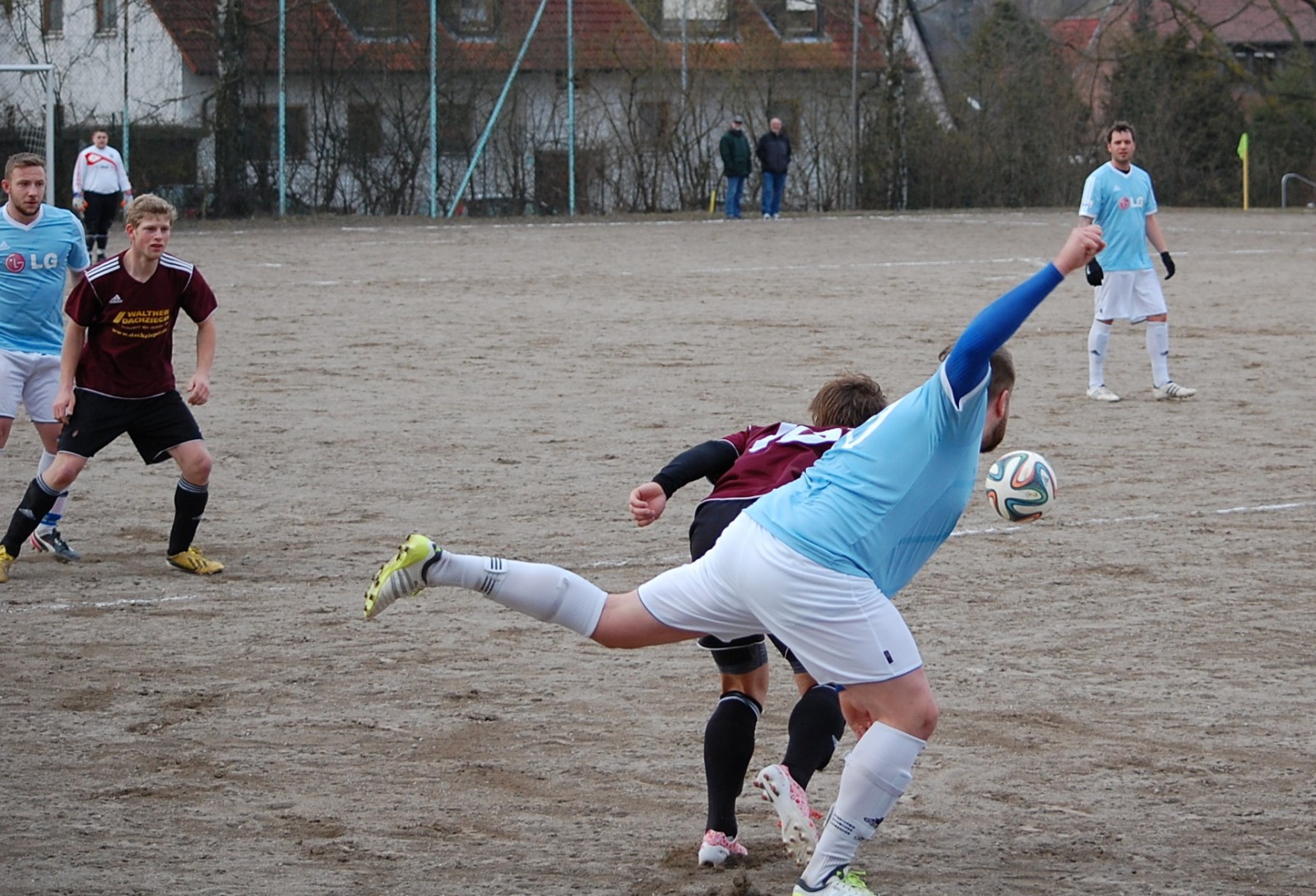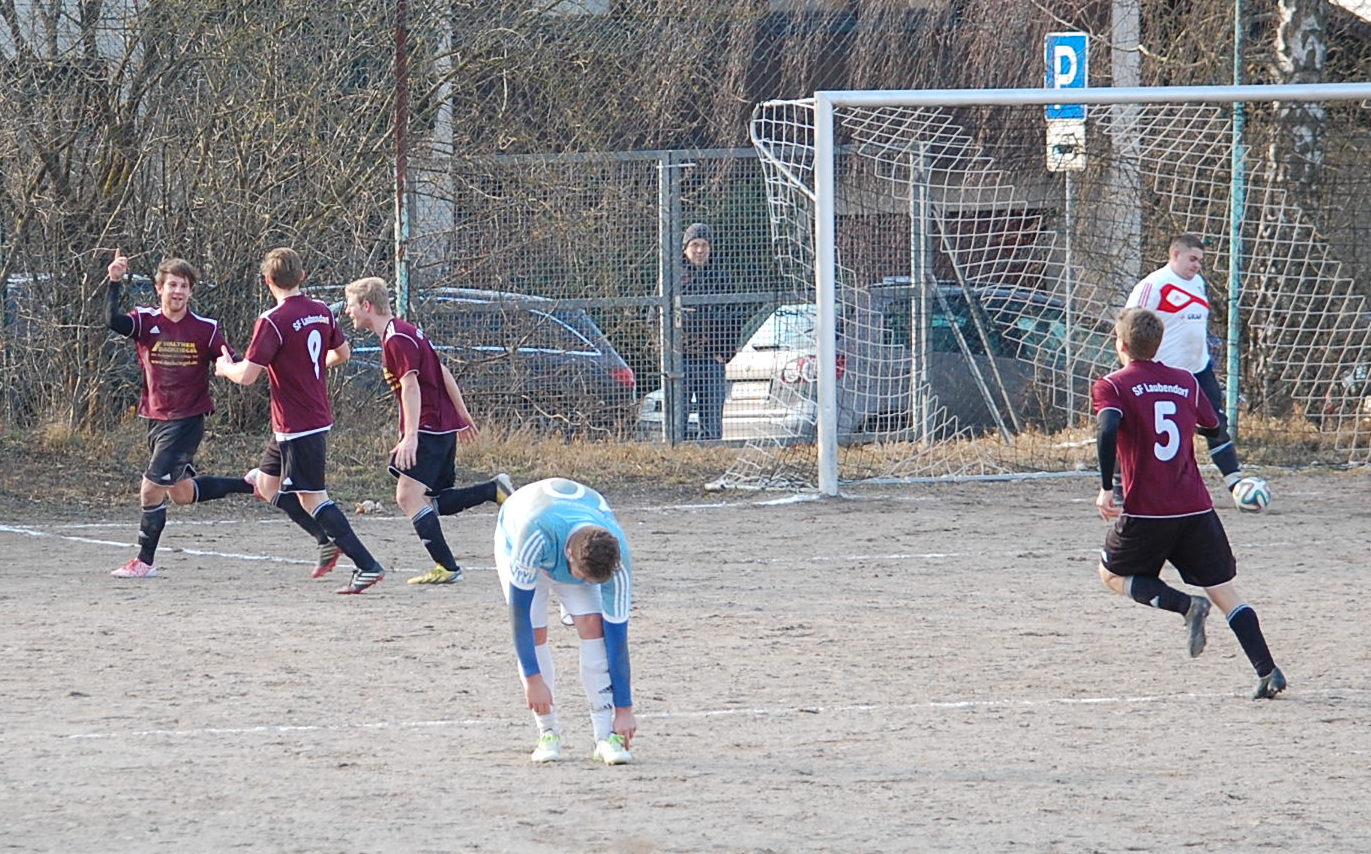 Mit einem deutlichen Sieg im Verfolgerduell startete unsere 1. Mannschaft beim TSV Neustadt II ins Spieljahr 2015. Dabei mussten sich beide Mannschaften erstmal mit dem ungewohnten Sandplatz abfinden, den man zwar kennt, aber eher bei einem A-Klassisten vermutet, als bei einem Landesligisten in einer Kreisstadt!? So ging es in der 1. Halbzeit oftmals zwischen den beiden Sechzehnmeterräumen hin und her, beide Abwehrreihen standen sicher. Mitte der 1. Halbzeit dann die etwas überraschende Führung für die Sportfreunde. Christien Tiefel setzte sich energisch auf der linken Seite durch und seine Flanke verlängerte Marc Bernreuther geschickt unter die Latte des Neustädter Tores. Neustadt versuchte Druck aufzubauen, kam auch zu einigen Freistößen, doch die SFL-Abwehr stand sicher und alles was ansonsten aufs Tor kam wurde von Frank Hallwas sicher entschärft.