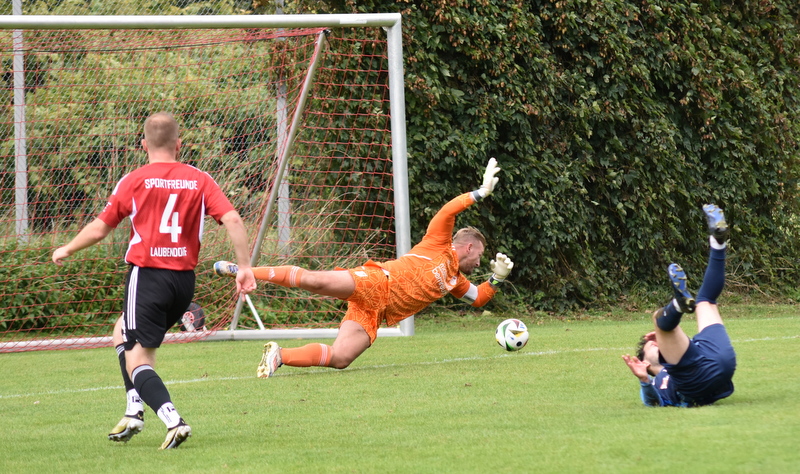 Die Heimelf rannte vom Anstoß aus an und versuchte den SFL zu überrumpeln. Bereits nach 6 Minuten konnten sie durch Engerer, der einen Lattenabpraller abstaubte in Führung gehen. Auch in den weiteren ersten 20 Minuten war es ein Spiel ausschließlich auf das Laubendorfer Gehäuse. Aber der glänzend aufgelegte Grohganz hielt seine Mannschaft solange im Spiel bis der erste Ansturm verflogen war. Teilweise mit drei Paraden am Stück. Danach konnte die SFL Defensive die Gegner früher bedrängen und so am Torabschluss hindern. Nach vorne konnte der SFL zwar nicht viel zeigen aber wenn doch, dann wurde es gefährlich. Einen Freistoß von Schneider konnte Meixner noch aus dem Winkel kratzen und Körber verzog mit seinem Abschluss. Mit dem knappen Rückstand ging es in die Pause. Nach dem Seitenwechsel stellte der SFL um und hatte dadurch mehr Spielanteile bzw. Kontrolle im Mittelfeld. Dies führte dazu, dass man sich immer wieder gut vor das gegnerische Gehäuse spielen konnte. Leider verfehlte der letzte Ball meist sein Ziel. Nicht so aber in der 60. Minute. Der Heimtorwart klärte eine Flanke direkt vor die Füße von Schneider, der den Ball zum Ausgleich über die Linie drückte. Im weiteren Spielverlauf entwickelte sich eine offene Partie mit vielen Standardsituationen. Aber keines der beiden Teams vermochte einen weiteren Treffer zu erzielen und die Partie endete mit 1:1. Nach dem Spiel sah Habram noch die rote Karte für zu heftiges Reklamieren.