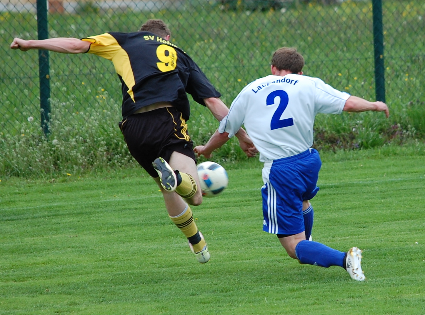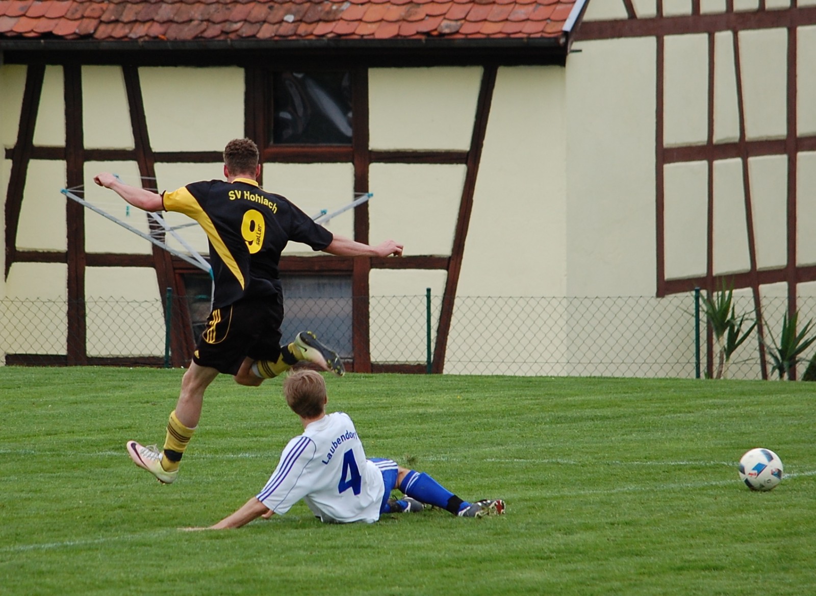 Den besseren Start in die Partie erwischte die Heimelf. Nach 19 Minuten gelang Ronny Bößendörfer auch das 1:0. Laubendorf gab nicht auf und konnte mit dem Pausenpfiff den Ausgleich erzielen. Torschütze war aber mit Markus Kamleiter ein Hohlacher. Nach dem Seitenwechsel ging das Spiel munter weiter. Mit einem erneuten Eigentor, diesmal von Wildermann, drehten die Hohlacher das Spiel zu ihren Ungunsten. In der 66. Minute traf auch mal ein Laubendorfer. Bernreuther erzielte das 1:3. Begünstigt durch einen Laubendorfer Platzverweis kam Hohlach noch einmal ins Spiel und konnte in Person von Ronny Bößendörfer auf 2:3 verkürzen (88. Minute). Mit dem 2:4 nur eine Zeigerumdrehung später machte Horneber die Ausgleichsbemühungen sogleich wieder zu Nichte und sorgte damit für den Endstand