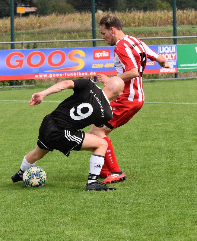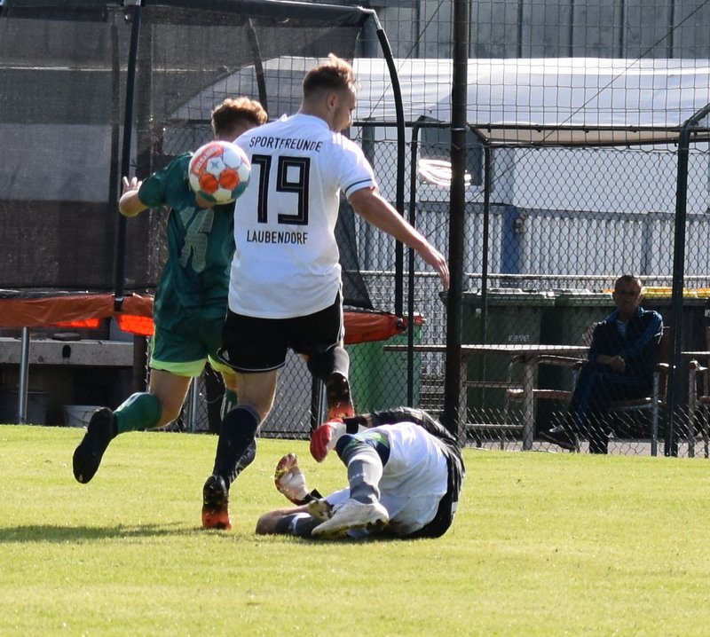 In einem körperbetonten Spiel auf einem engen Platz kam die 1. Mannschaft zunächst besser ins Spiel. Dennoch war er es die mit vielen langen Bällen agierende Heimmannschaft die in Führung ging. Mit einem langen Steckball durch die aufgerückte Laubendorfer Defensive konnte Strickstrock freigespielt werden und Laubendorfs Tormann überwinden. Aber nur 5 Minuten später konnte der SFL durch Gattinger zurückschlagen der ein Durcheinander im gegnerischen Strafraum nutzte und den Ball am Torwart vorbeispitzelte. Die Freude währte nur kurz den nur 4 Minuten später ging die Heimelf durch Kapitän Fischer wieder in Front. Dieser konnte eine Freistoßflanke freistehend einnicken. In der Folge entwickelte die Heimmannschaft etwas mehr Druck und abermals Strickstrock erhöhte auf 3:1. Aber der SFL steckte nicht zurück und biss sich zurück ins Spiel. In der 44 Minute wurde Laubendorfs Bechert dann schön von Wassner freigespielt. Mit einem Heber traf er zum Anschlusstreffer. Die mitgereisten Fans freuten sich noch über den wichtigen Anschluss vor der Pause als Knies für Bernreuther auflegte, welcher noch einen Haken schlug und dann sogar noch zum 3:3 traf und somit für die zweite Halbzeit wieder alles auf 0 stellte. Im zweiten Durchgang hatte der SFL im Großen und Ganzen mehr vom Spiel, während die Heimelf nur noch vereinzelt gefährlich werden konnte. Allerdings verpassten es die Laubendorfer daraus Kapital zu schlagen und in Führung zu gehen. Zu allem Unglück kam in der Schlussminute wieder Strickstrock nach einer Bogenlampe zum Abschluss und konnte den Ball irgendwie im Laubendorfer Gehäuse zum 4:3 Endstand unterbringen.