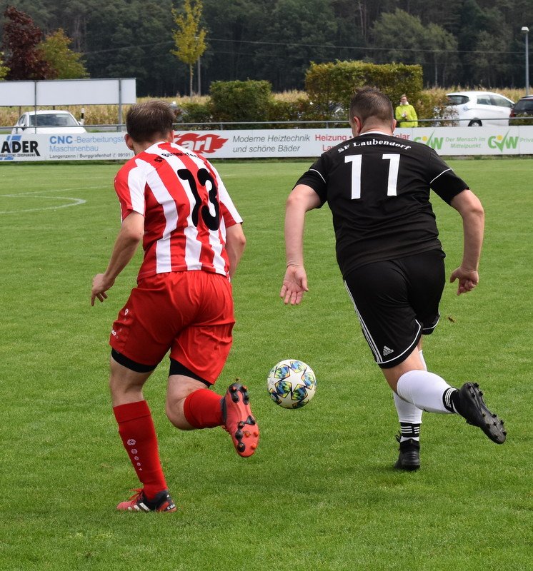 In einem körperbetonten Spiel auf einem engen Platz kam die 1. Mannschaft zunächst besser ins Spiel. Dennoch war er es die mit vielen langen Bällen agierende Heimmannschaft die in Führung ging. Mit einem langen Steckball durch die aufgerückte Laubendorfer Defensive konnte Strickstrock freigespielt werden und Laubendorfs Tormann überwinden. Aber nur 5 Minuten später konnte der SFL durch Gattinger zurückschlagen der ein Durcheinander im gegnerischen Strafraum nutzte und den Ball am Torwart vorbeispitzelte. Die Freude währte nur kurz den nur 4 Minuten später ging die Heimelf durch Kapitän Fischer wieder in Front. Dieser konnte eine Freistoßflanke freistehend einnicken. In der Folge entwickelte die Heimmannschaft etwas mehr Druck und abermals Strickstrock erhöhte auf 3:1. Aber der SFL steckte nicht zurück und biss sich zurück ins Spiel. In der 44 Minute wurde Laubendorfs Bechert dann schön von Wassner freigespielt. Mit einem Heber traf er zum Anschlusstreffer. Die mitgereisten Fans freuten sich noch über den wichtigen Anschluss vor der Pause als Knies für Bernreuther auflegte, welcher noch einen Haken schlug und dann sogar noch zum 3:3 traf und somit für die zweite Halbzeit wieder alles auf 0 stellte. Im zweiten Durchgang hatte der SFL im Großen und Ganzen mehr vom Spiel, während die Heimelf nur noch vereinzelt gefährlich werden konnte. Allerdings verpassten es die Laubendorfer daraus Kapital zu schlagen und in Führung zu gehen. Zu allem Unglück kam in der Schlussminute wieder Strickstrock nach einer Bogenlampe zum Abschluss und konnte den Ball irgendwie im Laubendorfer Gehäuse zum 4:3 Endstand unterbringen.