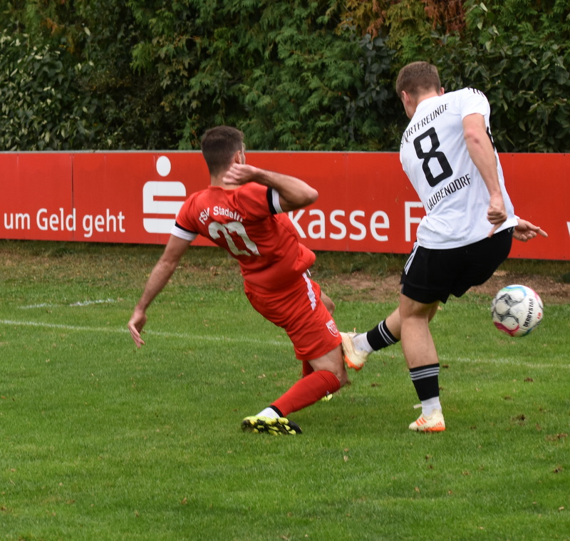 Beide Mannschaften starteten ausgeglichen in die Partie. Zwar konnte die 1. Mannschaft in der 1. Hälfte die ein oder andere Abschlussmöglichkeit verbuchen aber nichts war zwingend genug. Die Stadelner Hausherren machten es da schon besser. Nach 14 Minuten konnte Eckert seine Farben nach einem Eckball in Führung bringen. Schmidt war es dann der nach einem Laubendorfer Ballverlust und ein paar guten Stadelner Pässen auf 2:0 stellen konnte. Mit diesem Ergebnis ging es dann auch in die Halbzeitpause. Für den zweiten Durchgang hatten sich die Laubendorfer viel vorgenommen aber wurden nach nur 2 gespielten Minuten kalt erwischt als Kohl einen Abpraller des Laubendorfer Schlussmannes zum 3:0 abstaubte. Aber Laubendorf steckte nicht auf und kam nur 3 Minuten später zum 3:1. Wassner verwandelte einen Strafstoß sicher, den er zu vor selbst erzwungen hatte. Danach blieb noch genug Zeit für die Aufholjagd und die Laubendorfer Gäste zeigten gute spielerische Ansätze. Allerdings waren, wie schon im ersten Durchgang, die erspielten Möglichkeiten keine zwingenden Chancen und es gelang kein weiterer Treffer mehr. Auch die Heimmannschaft konnte sich nicht mehr auf der Torliste eintragen, weswegen am Ende das 3:1 auch der finale Spielstand war.