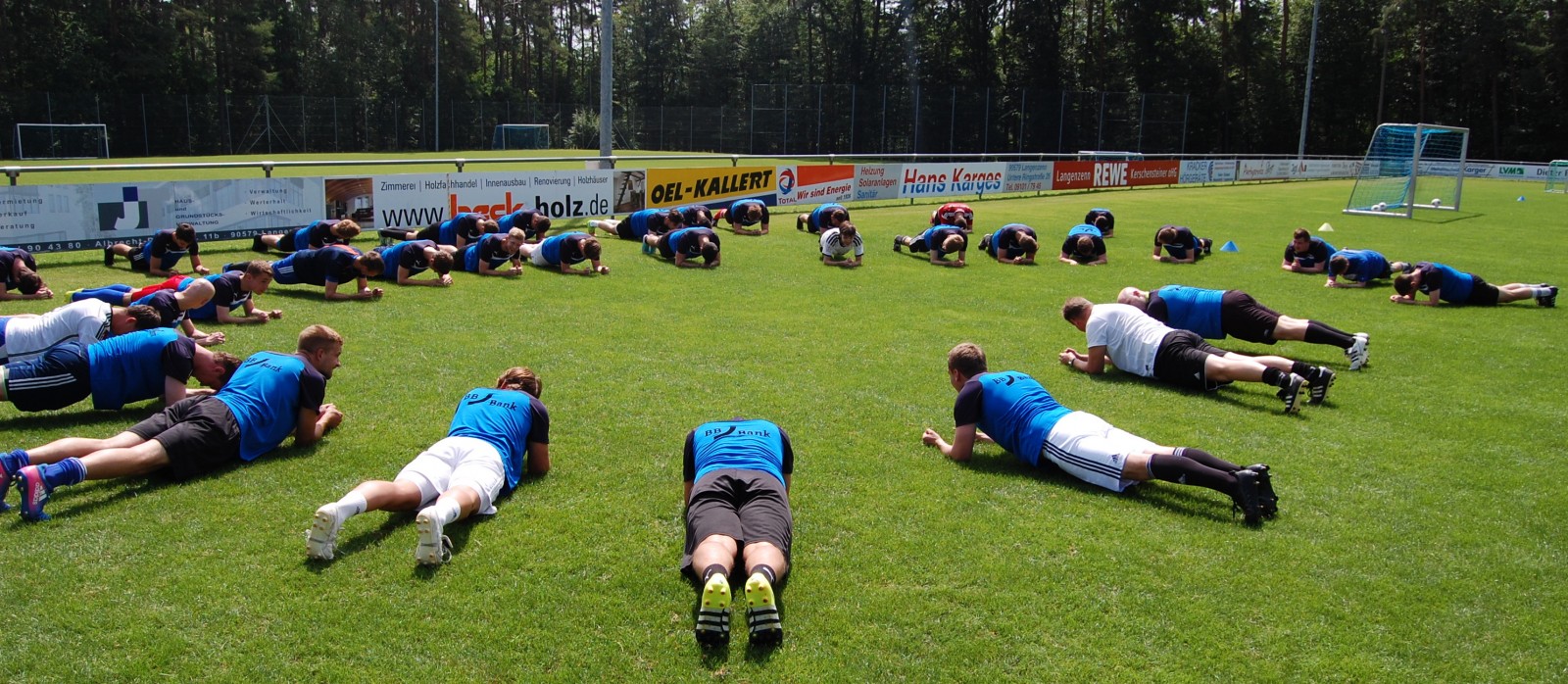 Bei hochsommerlichen Temperaturen begrüßte Michael Bayer, Trainer der 1.Mannschaft, 35 Spieler aktive Spieler auf dem Platz am Laubendorfer Sportgelände. Da die halbe 1.Mannschaft aufgrund von Urlaubern erst am Dienstag einsteigt eine klasse Zahl.