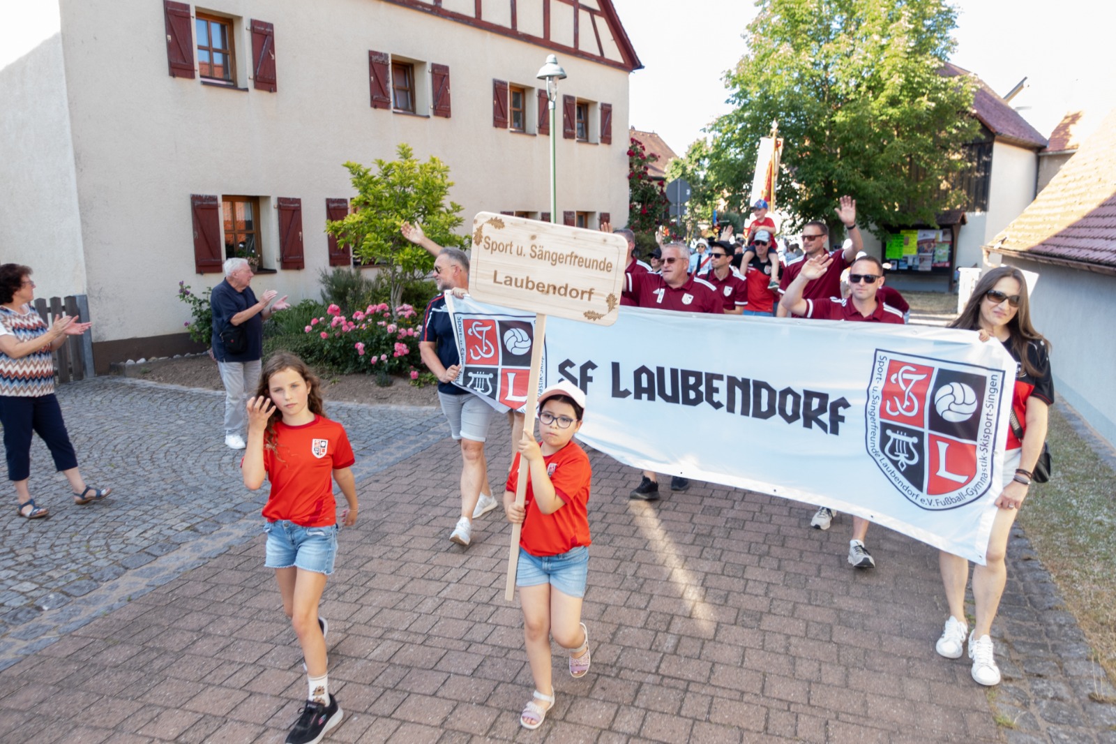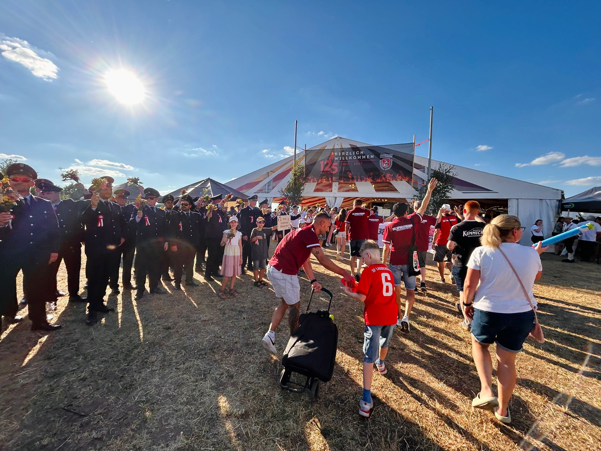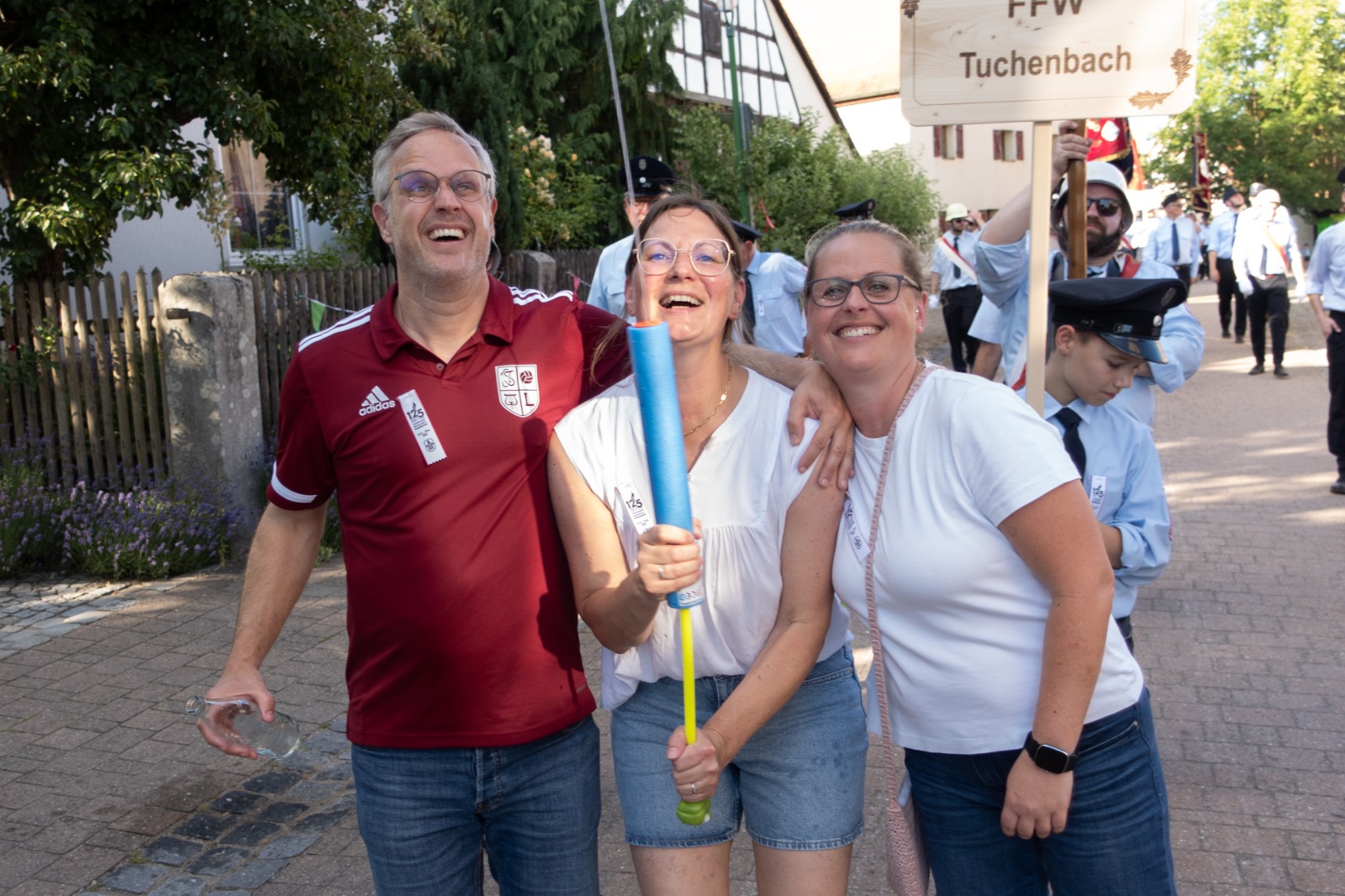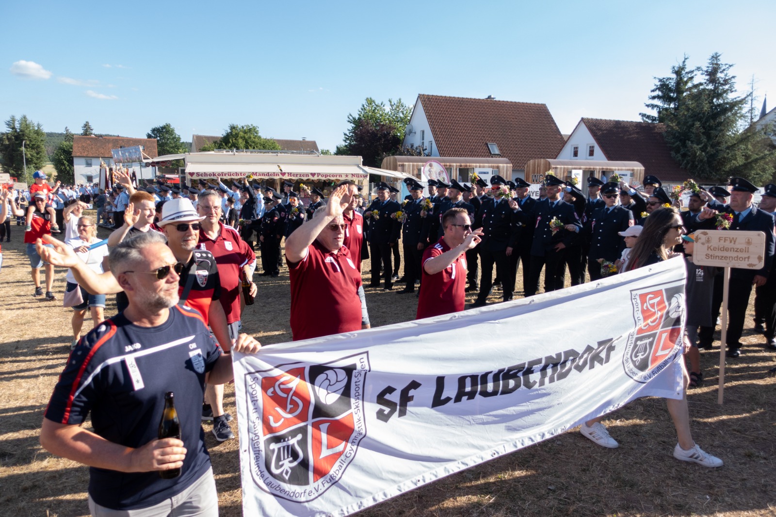 Die Sportfreunde waren mit einer großen Abordnung beim Umzug der Freiwilligen Feuerwehr Keidenzell anlässlich ihres 125-jährigen Jubiläums vertreten. Bei extrem heißen Temperaturen hatten wir einen Trolley mit Wasser dabei und die Kinder spritzten uns und die Gäste mit ihren Pumpguns zur Abkühlung an. Zick zack ging es durch Keidenzell und die Straßen waren von vielen Besuchern gesäumt.