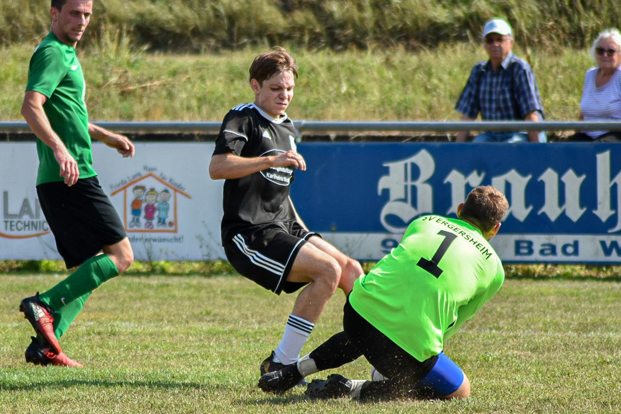 Es entwickelte sich vom Anstoß weg ein enges und umkämpftes Spiel, dass zu keinem Zeitpunkt Langeweile aufkommen ließ. Beide Mannschaften gingen mit vollem Einsatz in die Zweikämpfe und blieben dabei aber stets fair. In der Anfangsphase schafften es die Laubendorfer Gäste ihren Kasten sauber zu halten und machten erste Schritte sich dem Tor zu nähern. Doch die ersten Versuche verliefen im Sand. Wenn dann wurde es bei Standards gefährlich, doch da konnte der Ergersheimer Schlussmann zweimal stark parieren. Da auch der Gegner aus seinen wenigen Möglichkeiten – Laubendorfs Defensive war immer sofort zur Stelle – kein Kapital schlagen konnte ging es mit dem torlosen Remis in die Halbzeitpause. Nach dem Seitenwechsel ging das Spiel munter weiter. Der SFL nahm die Zweikämpfe an und verteidigte bissig. Nach vorne wurde es etwas besser als in der ersten Hälfte. Leider aber scheiterten Bannert und Zarnescu am gegnerischen Schlussmann mit den besten Möglichkeiten. Locher und Körber verzogen knapp. Beinahe hätte in dieser Phase die Heimelf in Führung gehen können, aber zum Glück für Laubendorf landete der Sonntagsschuss nur auf der Latte. So blieb auch am Ende die Null auf beiden Seiten stehen. Dennoch konnte man aufgrund der mannschaftlich geschlossenen kämpferischen Leistung mit diesem einen Punkt gegen einen starken und bissigen Gegner zufrieden sein.