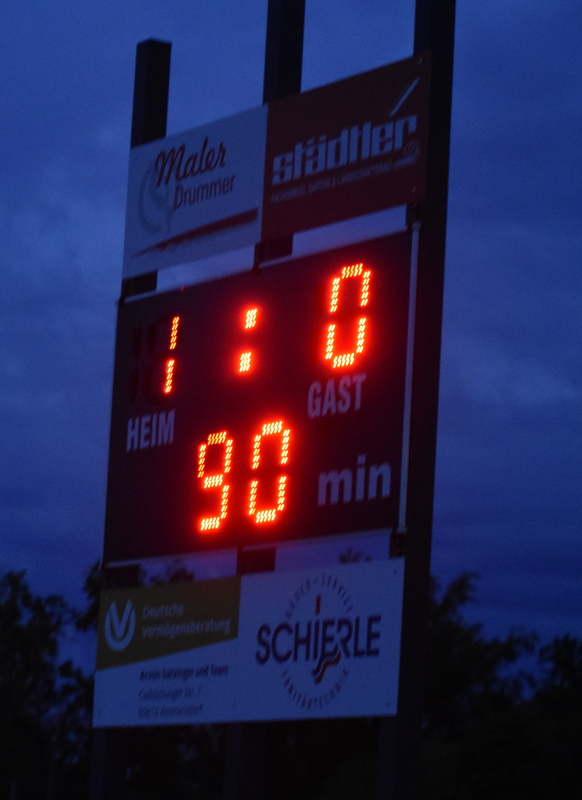 Die Partie begann sehr flott und beide Teams konnten gleich hochkarätige Chancen verbuchen. Den Ammerndorfer Versuch aus sehr abseitsverdächtiger Position konnte Grohganz stark parieren und auf der Gegenseite konnte Galsterer den Versuch von Gattinger gerade noch an die Latte lenken. Im weiteren Verlauf der ersten Hälfte wurde die Partie dann zunehmend intensiver mit vielen hart geführten Zweikämpfen und zahlreichen Unterbrechungen, wodurch auch das Spielgeschehen etwas litt. In dieser Phase hatte die Heimelf den größeren Zug zum Tor, aber die Laubendorfer Mannschaft konnte alles wegverteidigen und nach einer Zeitstrafe mit einem Mann weniger das Remis in die Pause bringen. Nach dem Seitenwechsel wurde die Partie zunächst wieder etwas ruhiger, was allerdings keinen Einfluss auf das Spiel hatte. Beide Mannschaften Versuchten Möglichkeiten zu kreieren aber spielten insgesamt zu hektisch und ungenau. Danach war dann der SFl etwas besser im Spiel und konnte mehr Zug zum Tor entwickeln. Ein Versuch von Gattinger streifte das Außennetz und Werner Kopfball ging über das Tor. Mitten in diese Phase wurde der SFL nach einem Eckball ausgekontert und Blaha konnte zum 1:0 einschieben. Im weiteren Verlauf wurde die Partie dann wieder ruppiger. Die Laubendorfer probierten nochmal alles, aber es wollte trotz zeitweiliger Überzahl – auch die Heimelf musste eine Zeitstrafe hinnehmen – kein Treffer fallen. So musste man sich knapp mit 1:0 geschlagen geben.