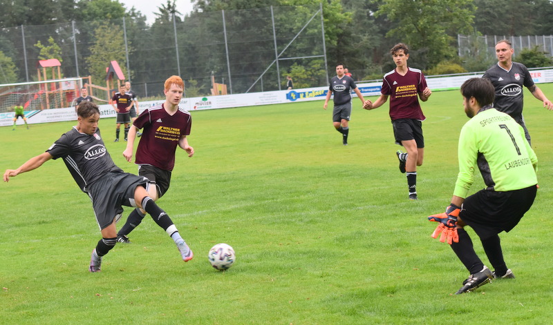 Mit einer etwas defensiveren Grundausrichtung ging die 2. Mannschaft die zweite Partie der Saison an. Dennoch fanden erste Torannäherungen auf Seiten des Gegners statt. Diese blieben aber zunächst harmlos. Erst in der 15. Minute wurde Roßmann in die Tiefe geschickt und konnte den Ball am Laubendorfer Schlussmann vorbei spitzeln. Nach einer knappen halben Stunde – der SFL konnte auch ein, zwei Annäherungen verbuchen – nutzte Feiler einen Ballverlust in der gegnerischen Abwehr und traf überlegt zum Ausgleich. Zwar fühlte der SFL sich jetzt sicherer, musste aber nur 4 Minuten später einen weiteren Rückschlag hinnehmen. Marktbergel kam über den Flügel und legte den Ball zurück an das Strafraumeck, von wo Meyer aus vollem Lauf wuchtig und präzise ins lange Eck zum 1:2 Pausenstand traf. Nach dem Seitenwechsel waren die Laubendorfer die ersten Minuten mehr am Drücker und hätten durch Körber ausgleichen können. Sein Versuch verpasste das Gehäuse allerdings um wenige Zentimeter. Fast im Gegenzug war es erneut Meyer, der mit einer Körpertäuschung 3 Gegenspieler narrte und in den linken oberen Winkel traf. Aber es kam noch dicker nur 2 Minuten später konnte Löder eine Ablage, ebenfalls sehr präzise, mit einer Direktabnahme im langen Eck unterbringen. Der SFL zeigte sich in Folge aber keineswegs verunsichert. Stattdessen folgte die beste Phase des Spiels in der die Laubendorfer einige Chancen verbuchen konnten. Zunächst traf Schönauer zum 2:4 nach einem Versuch von Wozniak und dann konnte der eingewechselte Rosner sogar noch auf 3:4 verkürzen. In der Schlussphase der Partie wäre durchaus mehr drin gewesen, allerdings verlor der SFL in einem unruhigen Spiel den Faden und musste sich mit der knappen Niederlage abfinden. In der Schlussminute sah Ehrl wegen einem weiteren Foulspiel noch die Ampelkarte.