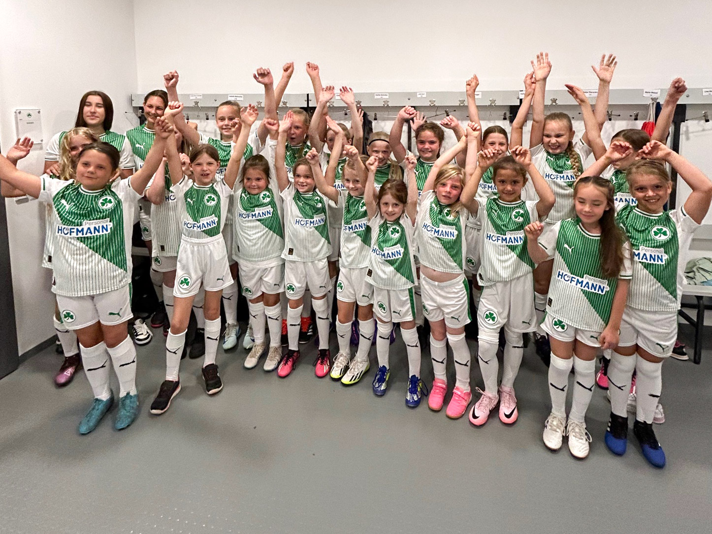Der 24.8. war für unsere Mädchen ein ganz besonderer Tag, denn sie hatten die (wahrscheinlich) einmalige Gelegenheit, als Einlaufkinder im Fürther Ronhof dabei zu sein.