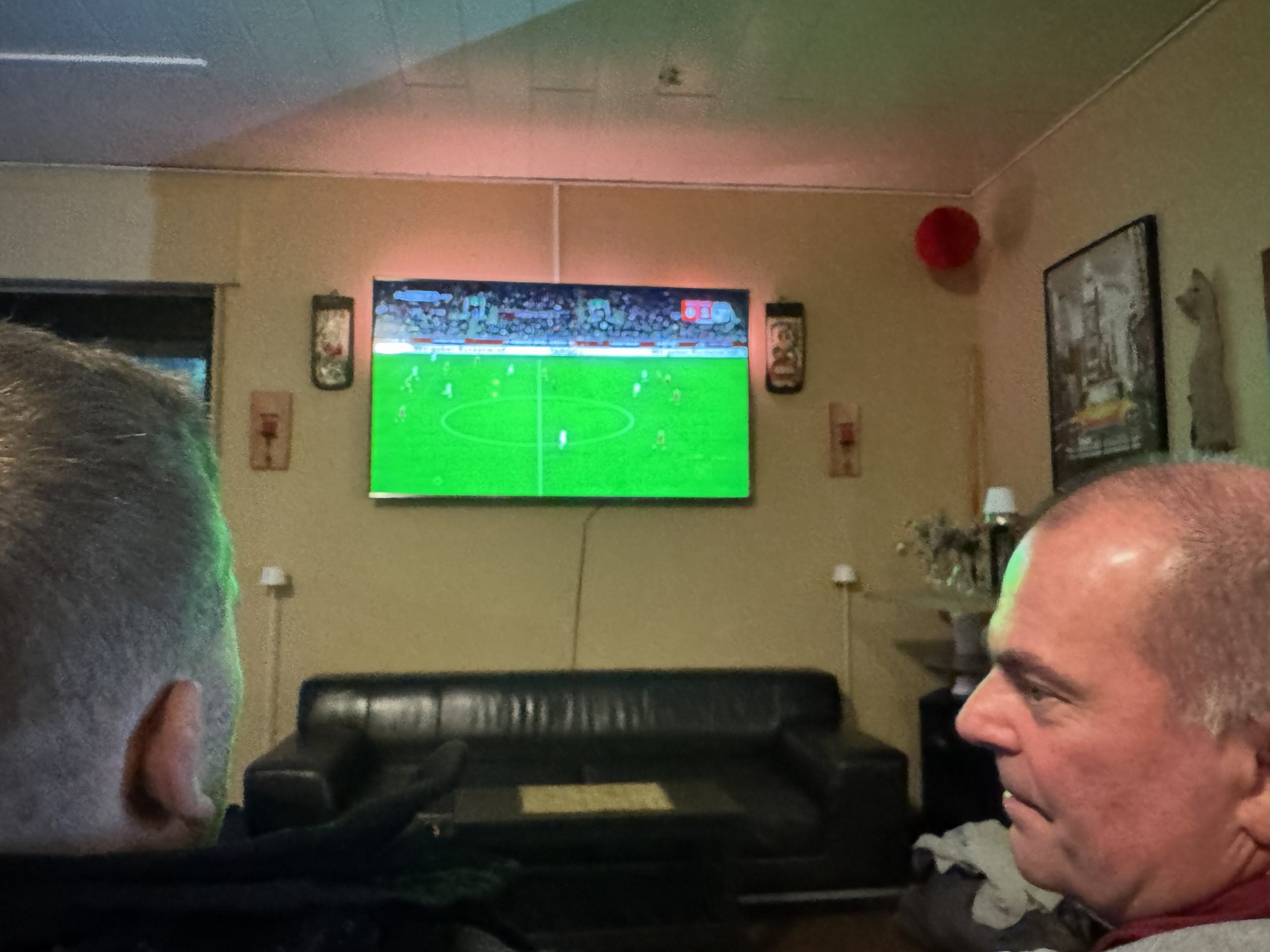 Der Plan sah vor, dass wir zuerst beim Hotel in Düsseldorf kurz einchecken und dann weiter zum „Länderspiel-Ort“ nach Hilden weiterfahren. Allerdings lag das Hotel in einer sehr befahrenen engen Straße und durch einen U-Bahn-Umbau in Düsseldorf, fuhr auch der Schienenersatzverkehr (sprich Busse) genau durch diese Straße. Also Sonja konnte hier nicht halten. Wir suchten einen geeigneten Platz und haben ausgeladen, Sonja fuhr mit dem Bus weiter und hat uns dann nach der vereinbarten Zeit wieder abgeholt. Dann ging es weiter nach Hilden, einem Stadtteil von Düsseldorf – hier haben wir dann das Patenkind von Wolfgang Bernreuther getroffen, die auch mitgeholfen hat, das „Länderspiel“ überhaupt möglich zu machen. Wir wurden sehr freundlich empfangen und auch die Platzbedingungen waren einwandfrei. Die Anzahl der Auswechselspieler war zwar etwas ungleich (Hilden hatte gefühlt noch ein komplettes zweites Team zur Verfügung) – aber egal unsere Traditionself ist gut in Schuss und so konnten wir die Partie mit 3:6 für uns entscheiden. Danke ganz besonders an Christian, der bis kurz vor Anpfiff noch nicht wusste, dass er als Keeper einspringen muss, dies aber souverän gemeistert hat. Danach war für uns ein Abendessen im angrenzenden Sportheim vereinbart und so haben wir das mal übernommen. Inkl. unserer eigenen Musikbox und nachdem der Glubb just an diesem Abend auch noch in Düsseldorf gespielt hat, konnten wir die Partie gemeinsam mit den Hildenern (die tendenziell natürlich auch eher Düsseldorf-Fans sind) anschauen. Kurzzeitig wurde es im Sportheim etwas still, als Michi die „Legende lebt“ eingespielt hat und unsere anwesenden Club-Fans hier natürlich mitgesungen haben, ein Tote-Hosen Song sorgte wieder für Ausgleich und das Spiel ging ja auch Hin- und Her und endete dann mit einem 2:3 Auswärtssieg für den Glubb. Die von den Hildenern spendierten Fässer Altbier hatten wir in der Zwischenzeit gemeinschaftlich geleert und es ging mit dem Bus zurück ins Hotel. Für etwas Aufregung sorgte eine Sporttasche die wir, nach mehrfacher Rücksprache mit den Hildenener, mit in den Bus genommen hatten, die dann doch nicht zu uns gehörte und wir aber schon 20 Minuten gefahren waren – hat dann etwas gedauert, aber wir konnten dann weiter Richtung Hotel fahren. Je nach Wunsch wurde dann entweder ins Hotel oder noch in die anliegenden Kneippen gegangen und ein schöner erster Tage ging zu Ende.