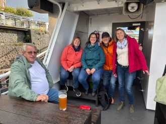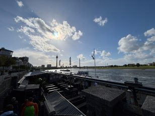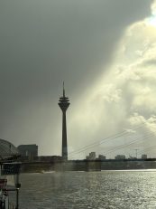Am nächsten Tag, nach ausreichendem und sehr gutem Frühstück ging es dann Richtung Düsseldorf, mit Schienenersatzverkehr, aber Funki hat hier für Durchblick gesorgt und so sind wir dann gut an der KÖ (Königsalle) aufgeschlagen. Leider bei strömenden Regen, so dass wir uns wieder in zwei Gruppen aufgeteilt haben, die einen die gleich ein Lokal angesteuert haben und die andere Gruppe die, trotz des Wetters, etwas von der Stadt sehen wollten. Wir haben uns dann für einen „Hop-On-Hop-Off“-Bus entschieden. Die Haltestelle zu finden war etwas tricky und vor allem hat es geschüttet was runter ging. Die Schirme halfen einigermaßen und als dann endlich der Bus da war, hatten wir zumindest einen Sitzplatz ohne Regen von oben. Sicht allerdings eher weniger, da die Scheiben dermaßen angelaufen waren und wir mehr eine „Hörfahrt“ hatten. Aber wir haben das Beste daraus gemacht. Nach der Fahrt hat es dann tatsächlich aufgehört zu Regnen und wir haben uns dann mit dem zweiten Teil der Gruppe wieder vereint. Zusammen ging es dann an den Rhein. Angekommen am Anleger der Personenschifffahrt, warteten wir dann auf unser Schiff, welches uns die Highlights an einem kurzen Abschnitt des Rheins (linke und rechte Seite) zeigte. Es war kalt, hat aber nicht mehr geregnet und einen Teil hatte die HopOn HopOff-Bus-Truppe bereits von der Landseite gesehen, von der Wasserseite aus war es dann noch beindruckender, vor allem weil es ja nun nicht mehr geregnet hat.