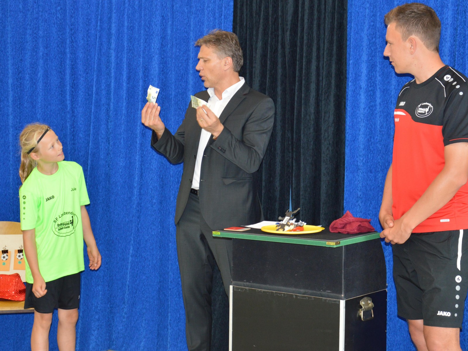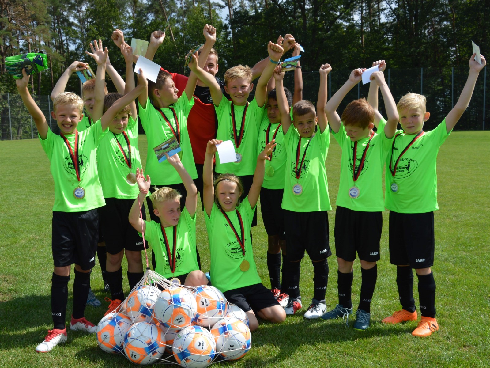Zum Schluss gab es eine Menge Preise zu verteilen. Bei der „Weltmeisterschaft“ belegte Spanien den ersten Platz. Die älteren Teilnehmer hatten ein Holland-Turnier gespielt, bei dem keine Mannschaft gewinnt, sondern jeder Spieler in der Mannschaftswertung Punkte sammelt und die Mannschaften von Spiel zu Spiel neu zusammengestellt werden. Hier siegte punktgleich Steffen Kohler, Max Madacs und Lewin Grille knapp vor Philipp Morjan und Jannick Reinfelder. Den Technik-Wettbewerb bei den Jüngeren gewann Maximilian Schubert vor Mario Jabs und Max Zaremba. Bei den Älteren war Lewin Grille der Beste, gefolgt von Elias Klemm und Jonas Morjan.