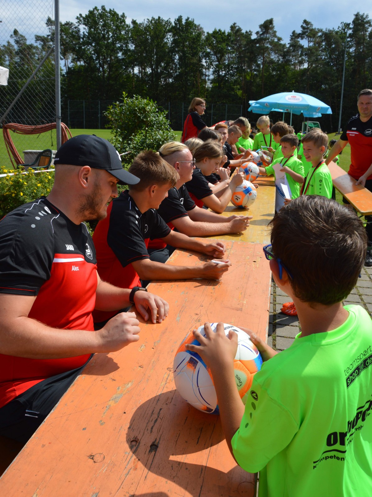 Die Autogrammstunde hat schon Tradition beim Orthopoint Fußballcamp. Erneut saß am Ende des Camps das Trainerteam bereit, um Fotos, Trikots oder die neuen Bälle zu signieren, die die Kinder mit nach Hause nehmen durften – eine schöne Erinnerung an drei tolle Fußball-Tage.