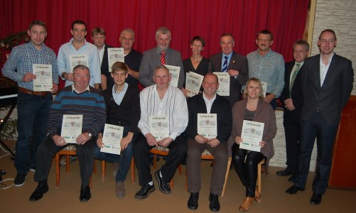 Für 40-jährige Mitgliedschaft  = Walter Brunner, Wolfgang Erhart, Reinhold Gattinger, Heinz Pöllet, Hans Scherb und Gerhard Stiegler