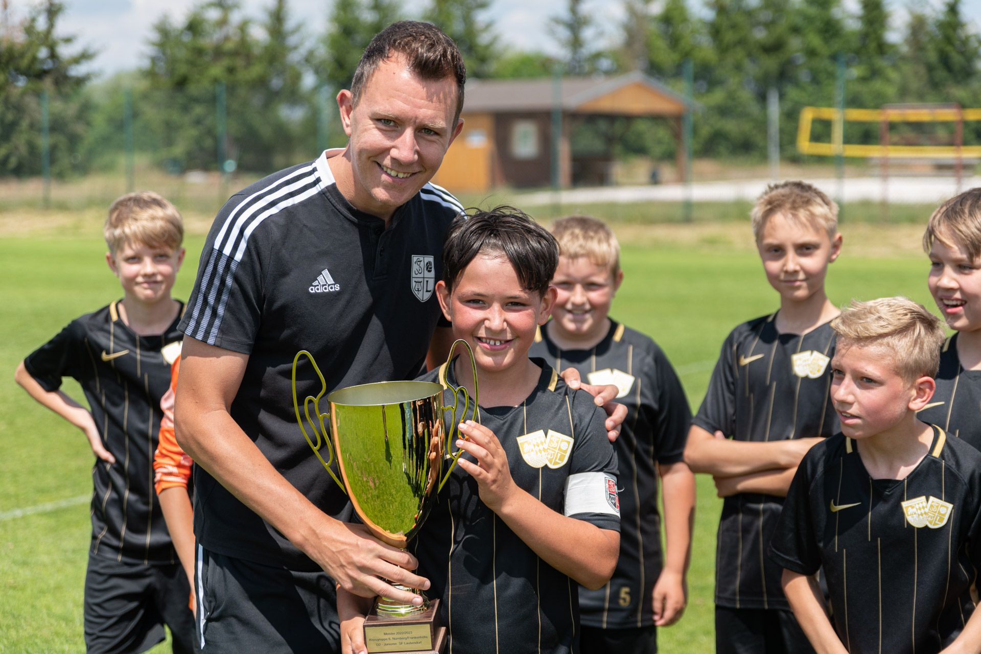Ausgelassen, glücklich und feiernd nahmen die Laubis den Meisterpokal durch unseren Jugendabteilungsleiter Patrick Mitzler in Empfang.