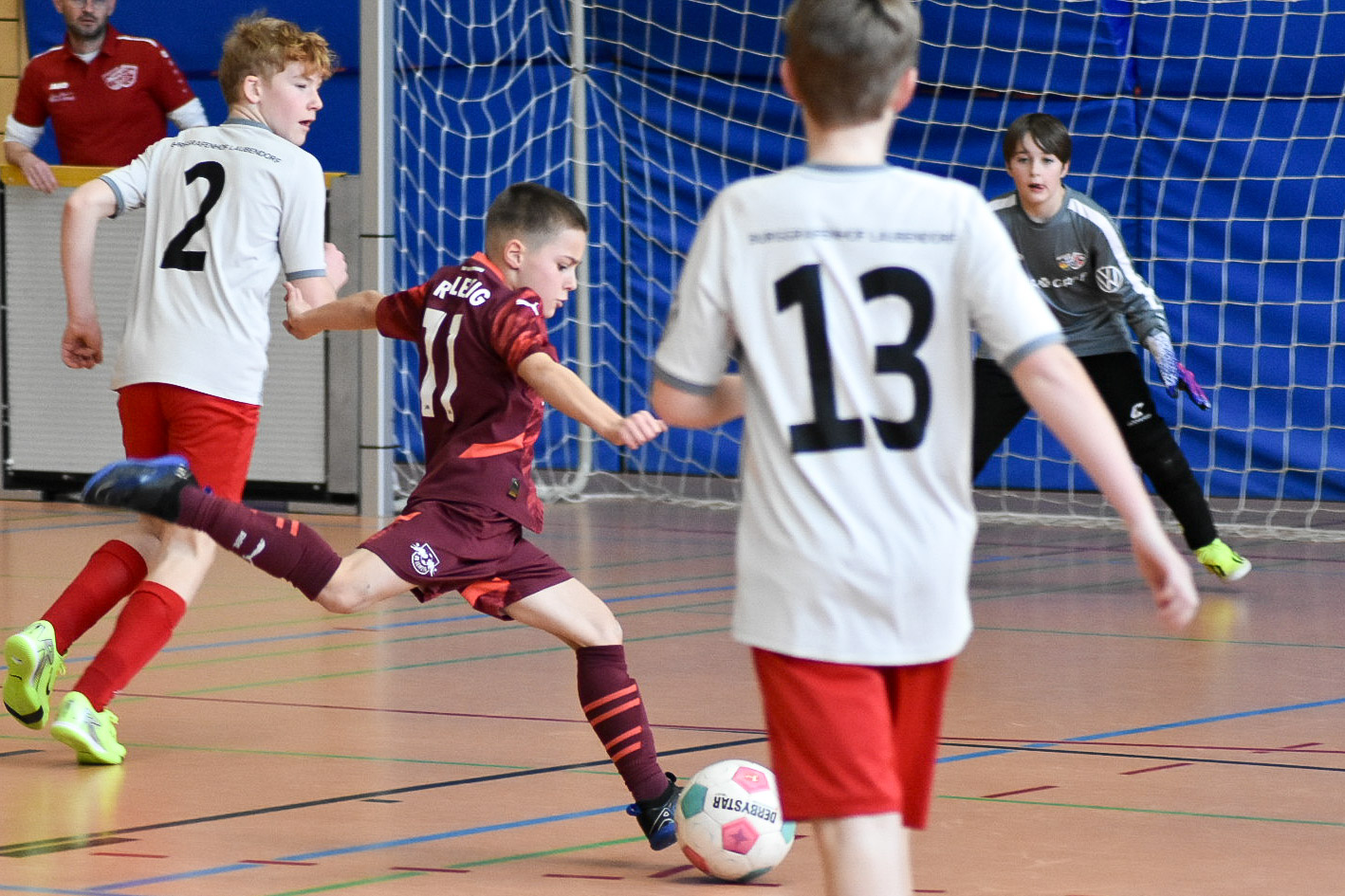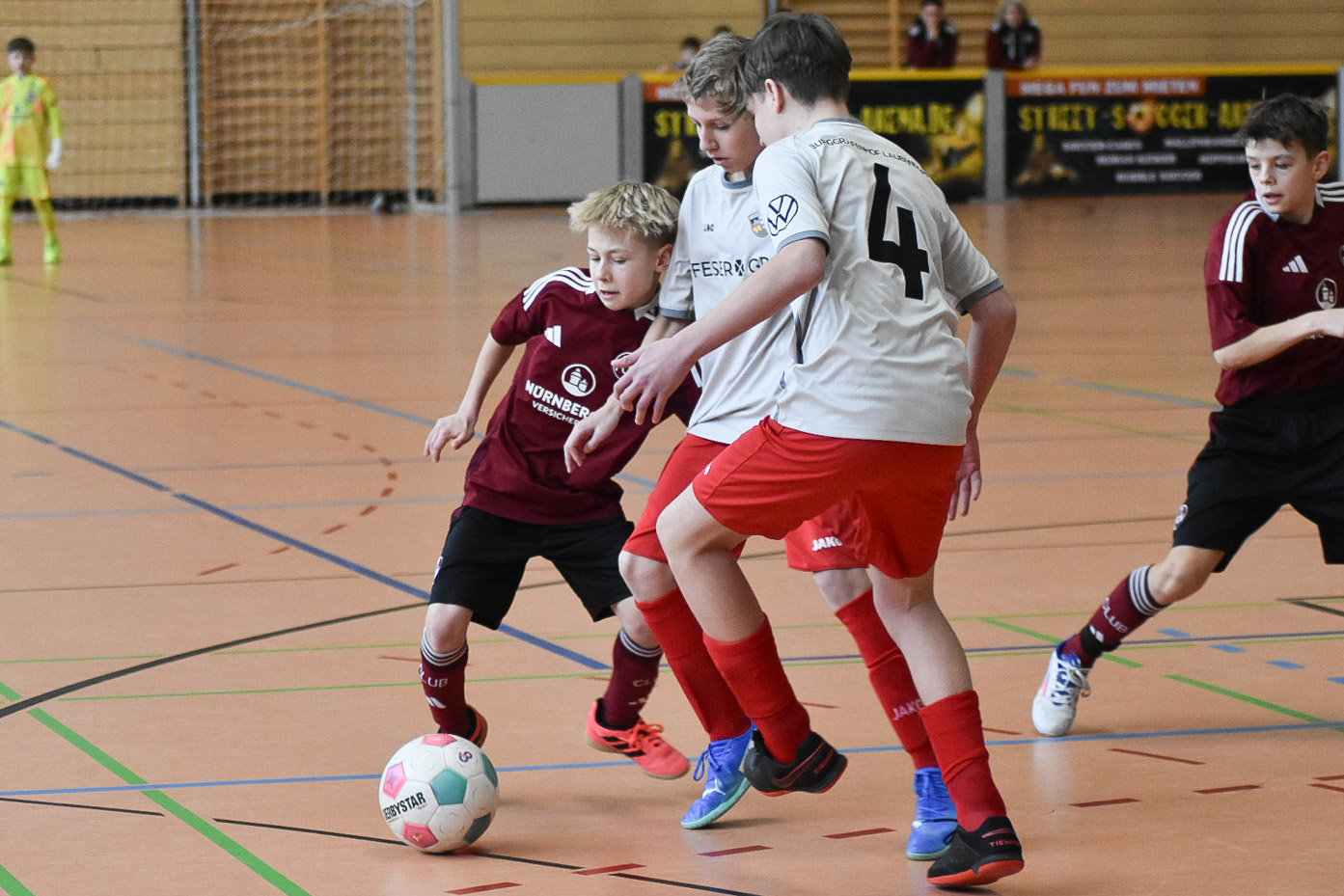 Dort erwarteten unser Team hochklassige Mannschaften. Vorrundengegner waren RB Leipzig, der 1.FC Nürnberg, SV Wehen Wiesbaden und die SpVgg Greuther Fürth. Gegen RB und den Club zog man den kürzeren. Das absolute Highlight war aber der 4:0 Erfolg gegen das Kleeblatt aus Fürth und die damit verbundene Qualifikation für die Silberrunde. Wehen Wiesbaden, immerhin ehemaliger Zweitligist, trotzten wir noch ein Unentschieden ab.