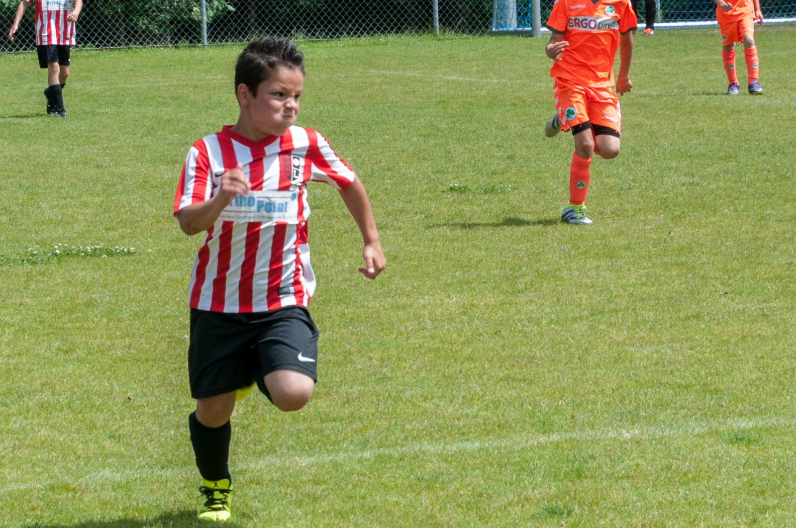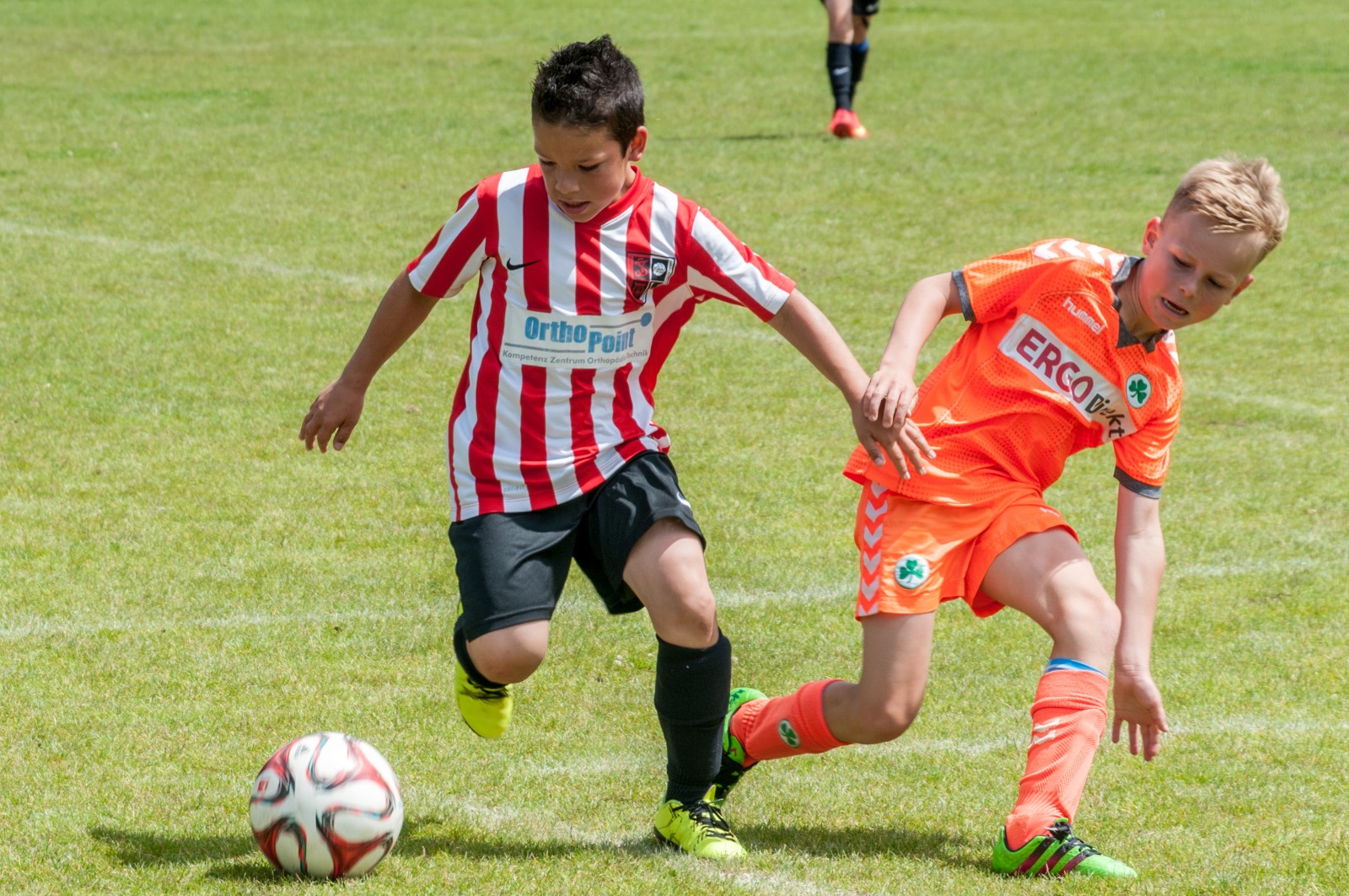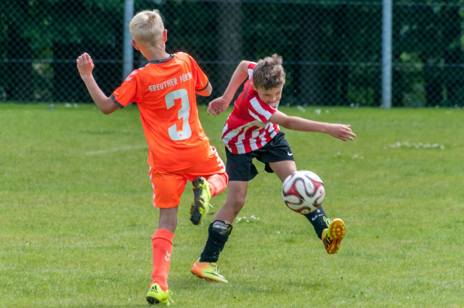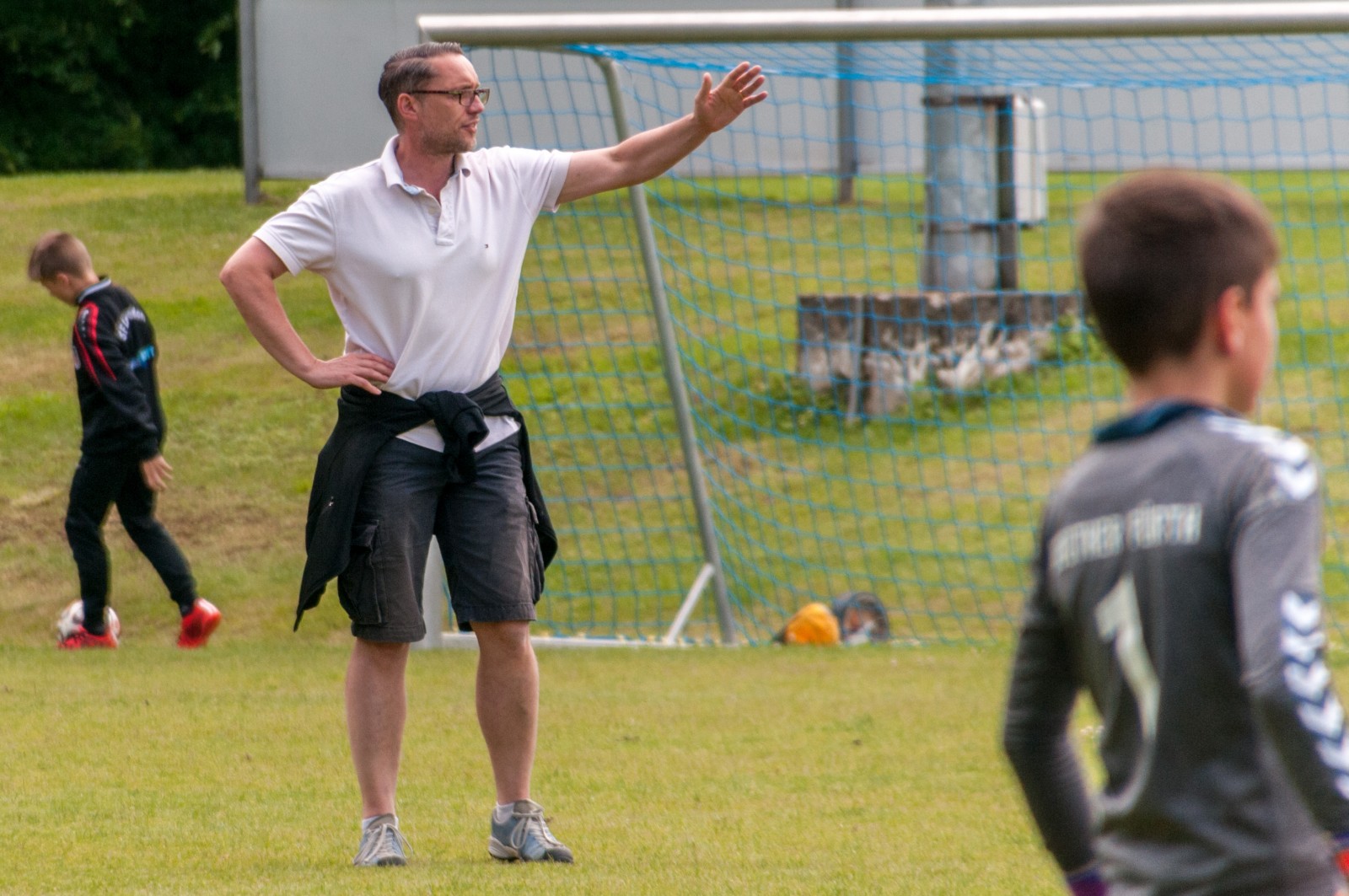 Vor großer Zuschauerkulisse und schönem Fußballwetter bestritten die E2-Junioren zum Abschluss einer langen Saison am vergangenen Sonntag ihr Abschlussspiel gegen die Mannschaft der SpVgg Greuther Fürth. Im Vorfeld wurde vereinbart drei Halbzeiten zu je 20 Minuten zu spielen. Unsere Jungs konnten gegen die erwartet spielstarke Mannschaft der Greuther überraschenderweise ganz gut mithalten und erspielte sich immer wieder gute Möglichkeiten. Das erste und zweite Drittel schlossen wir dann je mit 1:3 ab. Im letzten Drittel des Spiels merkte man dann den Jungs die kräftezehrenden ersten beiden Drittel dann doch an und die Widerstandskraft ließ langsam nach. Insgesamt können wir aber mit dem Ergebnis von 3:12 Toren gegen eine sehr spielstarke Mannschaft am Ende mehr als zufrieden sein. Allen Beteiligten hat das Aufeinandertreffen Spaß gemacht.