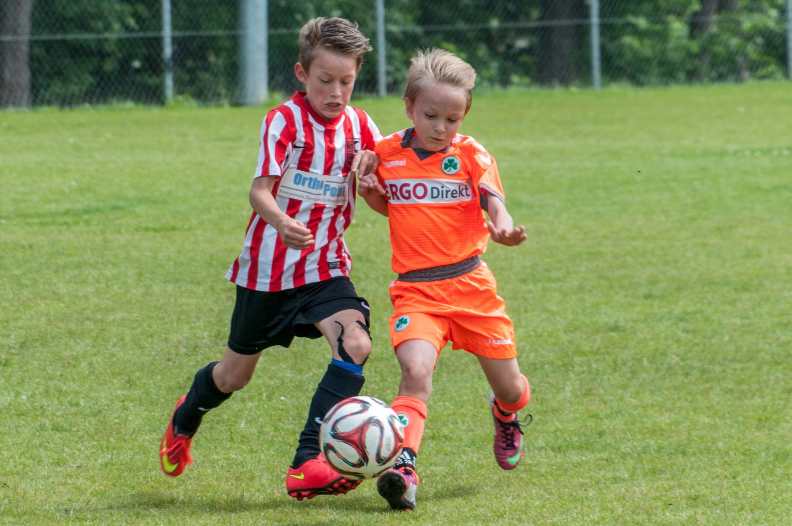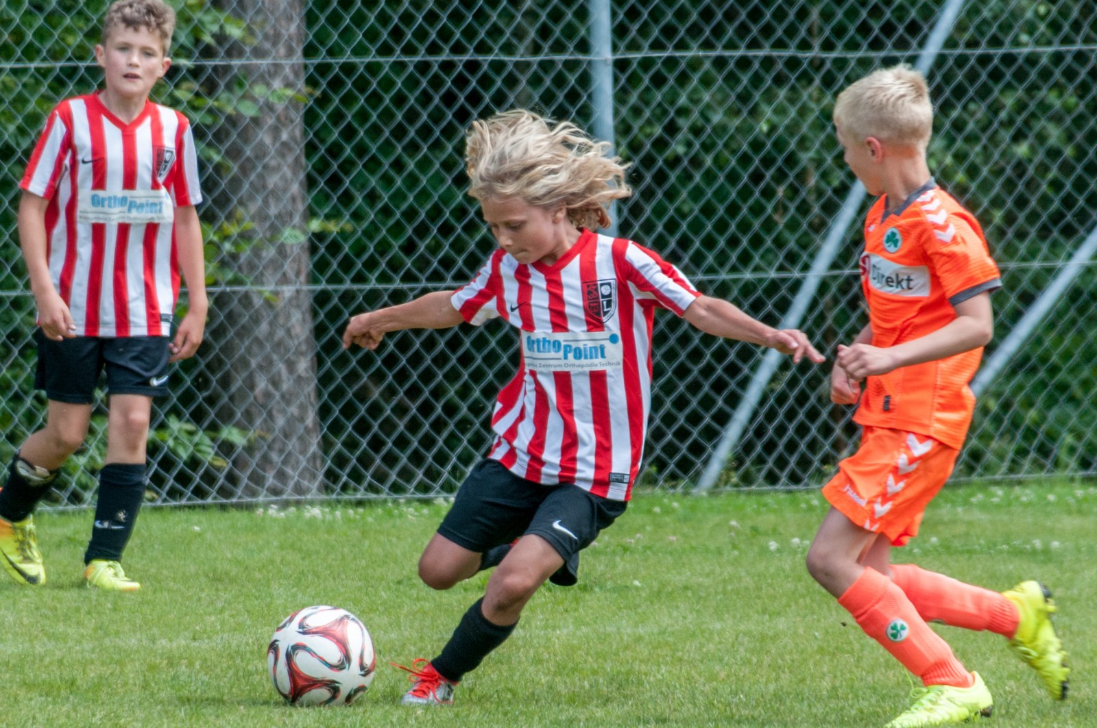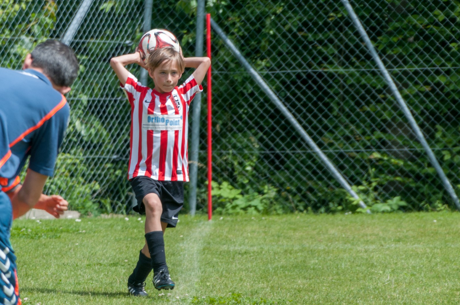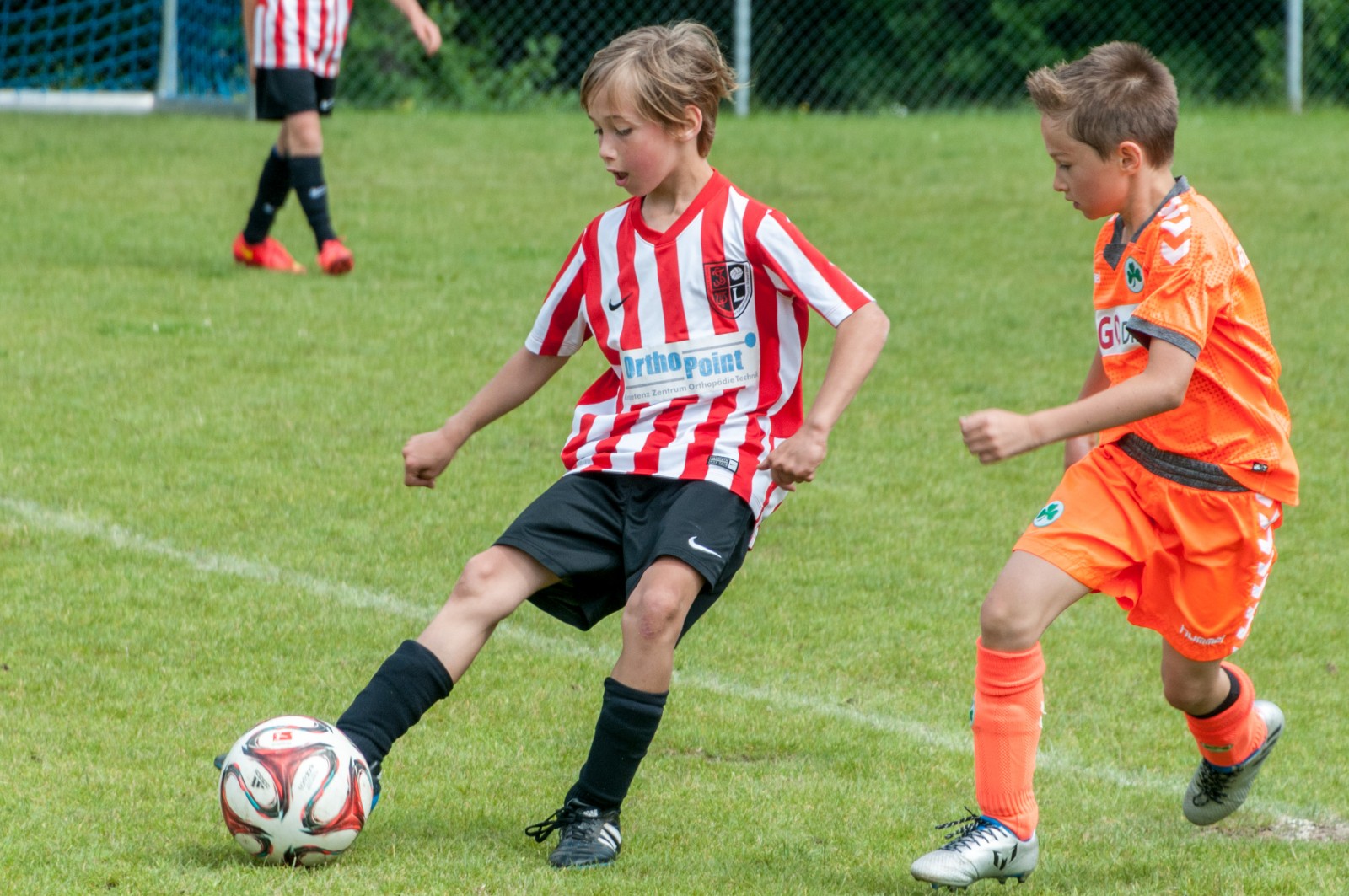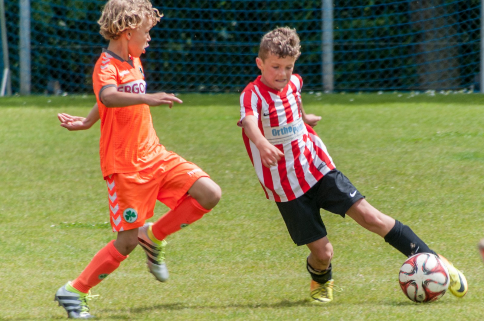 Vor großer Zuschauerkulisse und schönem Fußballwetter bestritten die E2-Junioren zum Abschluss einer langen Saison am vergangenen Sonntag ihr Abschlussspiel gegen die Mannschaft der SpVgg Greuther Fürth. Im Vorfeld wurde vereinbart drei Halbzeiten zu je 20 Minuten zu spielen. Unsere Jungs konnten gegen die erwartet spielstarke Mannschaft der Greuther überraschenderweise ganz gut mithalten und erspielte sich immer wieder gute Möglichkeiten. Das erste und zweite Drittel schlossen wir dann je mit 1:3 ab. Im letzten Drittel des Spiels merkte man dann den Jungs die kräftezehrenden ersten beiden Drittel dann doch an und die Widerstandskraft ließ langsam nach. Insgesamt können wir aber mit dem Ergebnis von 3:12 Toren gegen eine sehr spielstarke Mannschaft am Ende mehr als zufrieden sein. Allen Beteiligten hat das Aufeinandertreffen Spaß gemacht.