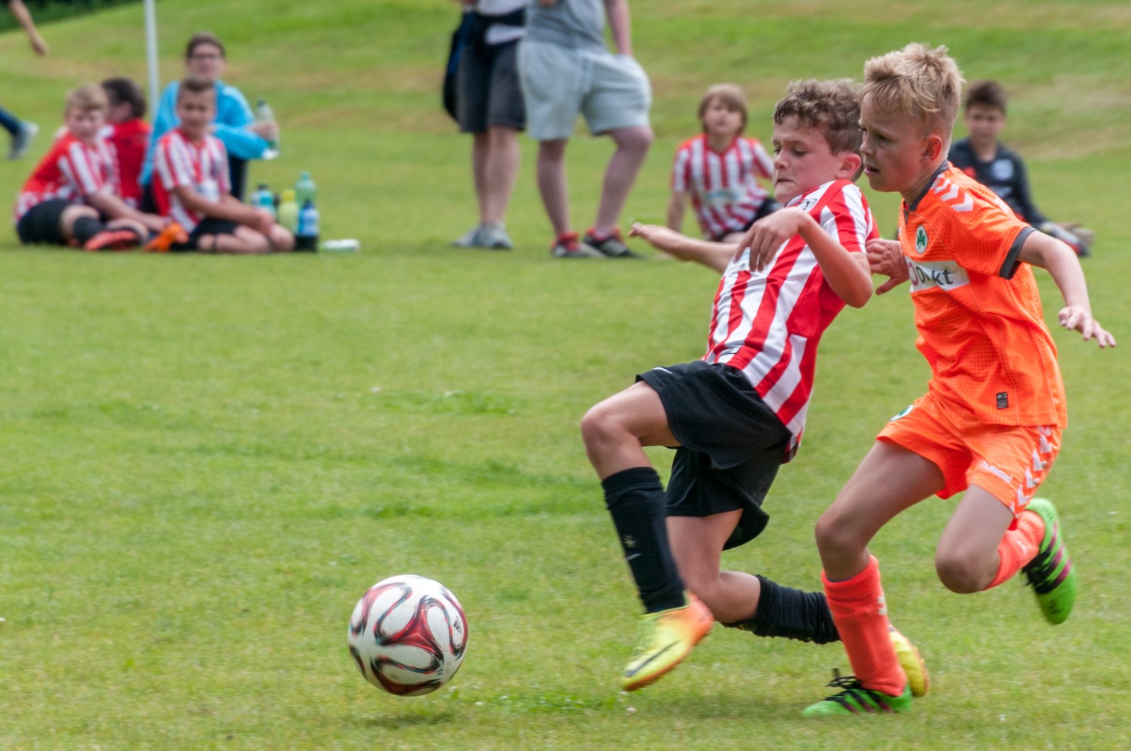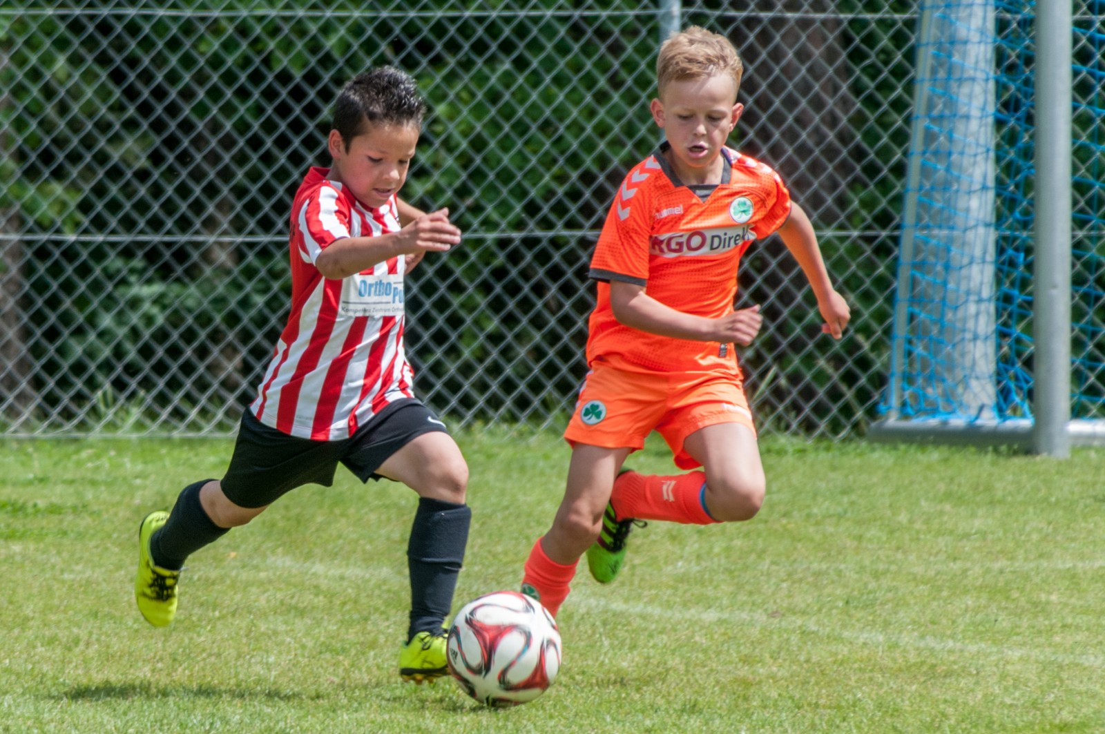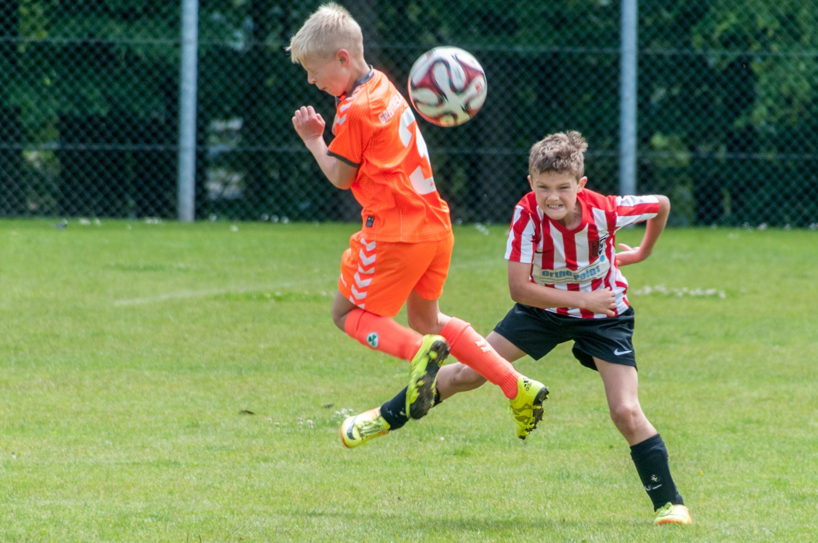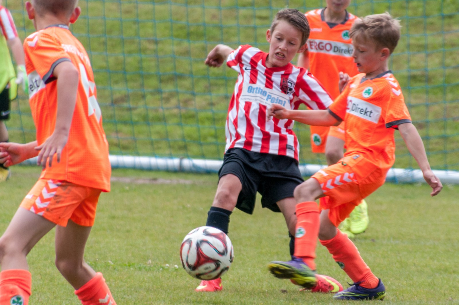 Vor großer Zuschauerkulisse und schönem Fußballwetter bestritten die E2-Junioren zum Abschluss einer langen Saison am vergangenen Sonntag ihr Abschlussspiel gegen die Mannschaft der SpVgg Greuther Fürth. Im Vorfeld wurde vereinbart drei Halbzeiten zu je 20 Minuten zu spielen. Unsere Jungs konnten gegen die erwartet spielstarke Mannschaft der Greuther überraschenderweise ganz gut mithalten und erspielte sich immer wieder gute Möglichkeiten. Das erste und zweite Drittel schlossen wir dann je mit 1:3 ab. Im letzten Drittel des Spiels merkte man dann den Jungs die kräftezehrenden ersten beiden Drittel dann doch an und die Widerstandskraft ließ langsam nach. Insgesamt können wir aber mit dem Ergebnis von 3:12 Toren gegen eine sehr spielstarke Mannschaft am Ende mehr als zufrieden sein. Allen Beteiligten hat das Aufeinandertreffen Spaß gemacht.