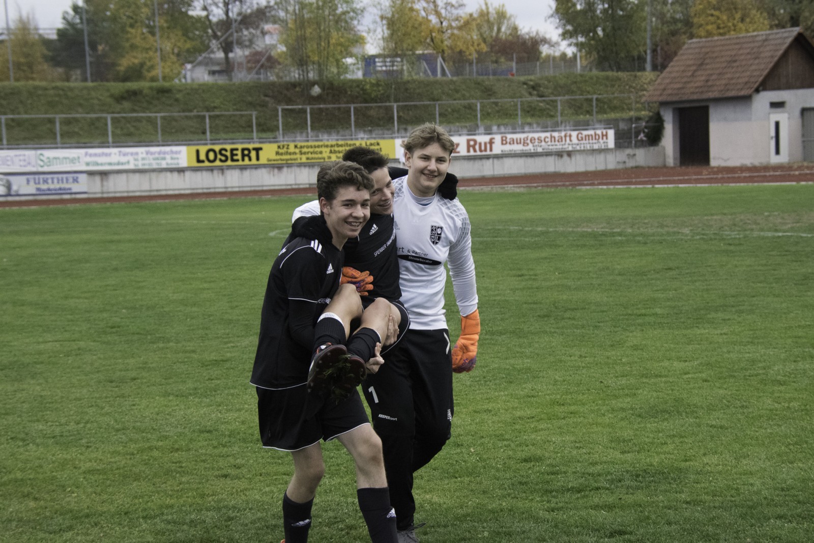 Das Spiel lief weiter, aber unsere Kids waren natürlich schwer geschockt und so plätscherte die Partie so dahin, ehe es wieder Isi war der den Ball zum 0:3 einschob. Dann war Halbzeit. Nach der Halbzeit brauchten wir wieder um ins Spiel zu kommen, da die Partie leider immer härter geführt wurde und durch einige Fouls und leichte Verletzungen unterbrochen wurde. Es war dann wieder Isi der zum 0:4 und zum 0:5 einnetze. Eigentlich war jetzt alles gelaufen. Aber auf einmal waren die Jungs auch nicht mehr so mit der nötigen Aufmerksamkeit am Spiel beteiligt und so häuften sich leichte Abspielfehler und wir mussten den 1:5 Anschlusstreffer hinnehmen. Durch einen sehr fragwürdigen Elfmeter konnten die Langenzenner zum 2:5 herankommen. Wir konnten die restliche Zeit noch herunterspielen und hochverdient als Derby-Sieger nach Hause fahren. Gute Besserung weiterhin für Nicolas.