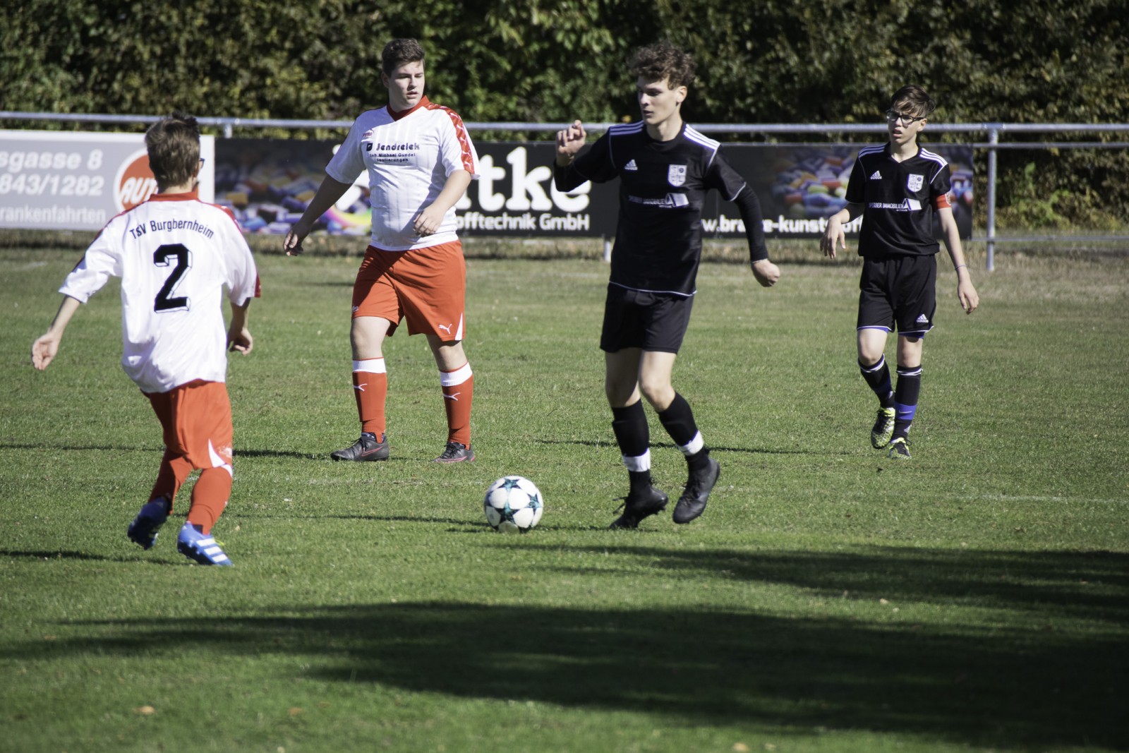 Unser nächstes Spiel führte uns nach Burgbernheim (zur SG Burgbernheim/Marktbergel). Die Jungs waren hochmotiviert und legten los wie die Feuerwehr. Nach 5 Minuten das 0:1 durch Max. Allerdings mussten wir postwendend den Ausgleich hinnehmen 1:1, weiter ging es durch Treffer von Lukas, Isi und wieder Max (die Tore vielen im Minutentakt). Dann ein Foul in unserem Strafraum – Elfmeter. Benni hatte keine Chance. 2:4. Zwei Minuten später war es Yannick der zum 2:5 traf (Timo legte den Ball mit dem Kopf vor). Isi und Mert stellten das Halbzeitergebnis von 2:7 her. Nach der Halbzeit waren sich die Jungs wohl viel zu sicher und ließen den Gegner agieren. Die wenigen Chancen die wir hatten wurden leichtfertig vergeben. Der Gegner brachte dann (durch den Trainer von außen ) und Spieler Härte ins Spiel und unser Team ließ sich von dieser aufgeheizten Atmosphäre total anstecken. Diskutierten mit, beschwerten sich beim Schiedsrichter, ließen sich auf unnötige Fouls ein. So war dann leider das 3:7 die logische Folge und wir konnten keinen weiteren Treffer erzielen, obwohl wir die technisch viel bessere Mannschaft waren, aber in der zweiten Hälfte überhaupt nicht mehr Fußball spielten, sondern nur noch versuchten das Spiel zu verwalten. Schade, denn hier wäre viel mehr drin gewesen.