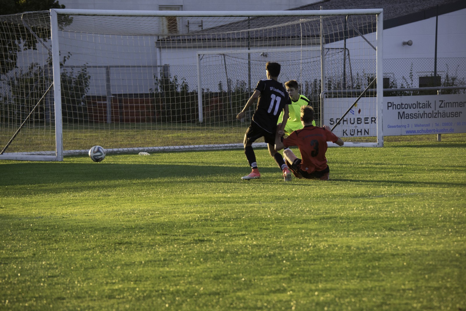 Nach einer tollen Vorbereitung ist unsere B2 Jugend gut in die Saison gestartet.Mit einer guten Trainingsbeteiligung und einigen neuen Gesichtern in der Mannschaft haben wir die Ferien gut genutzt um uns für die erste Saison als B-Jugend fit zu machen. Um mit Spielpraxis in die Saison zu gehen wurden zwei Testspiele vereinbart. Wir konnten leider nicht immer den kompletten Kader nutzen. Unser erstes Testspiel führte uns dann nach Weihenzell. Gegen diesen Gegner waren wir noch als C-Jugend absolut Chancenlos. Deshalb waren wir alle vor dem Spiel noch sehr skeptisch und so ganz sicher, wie unser Leistungsvermögen sein wird, waren wir auch nicht. Aber die Jungs haben uns ein tolles Spiel beschert und unsere neuen Max und Lukas führten sich gleich sehr gut ein. Ein ungefährdeter 0:3 Auswärtssieg war die Folge. Tore: Isi, Lukas, Max.