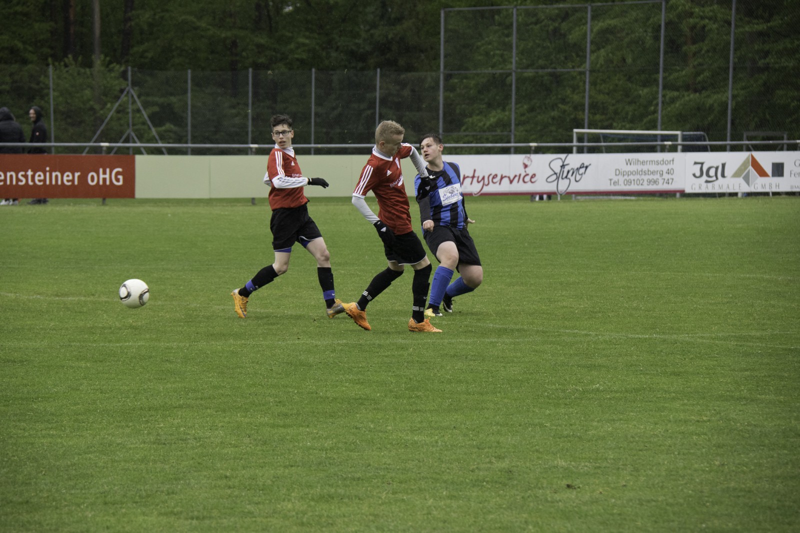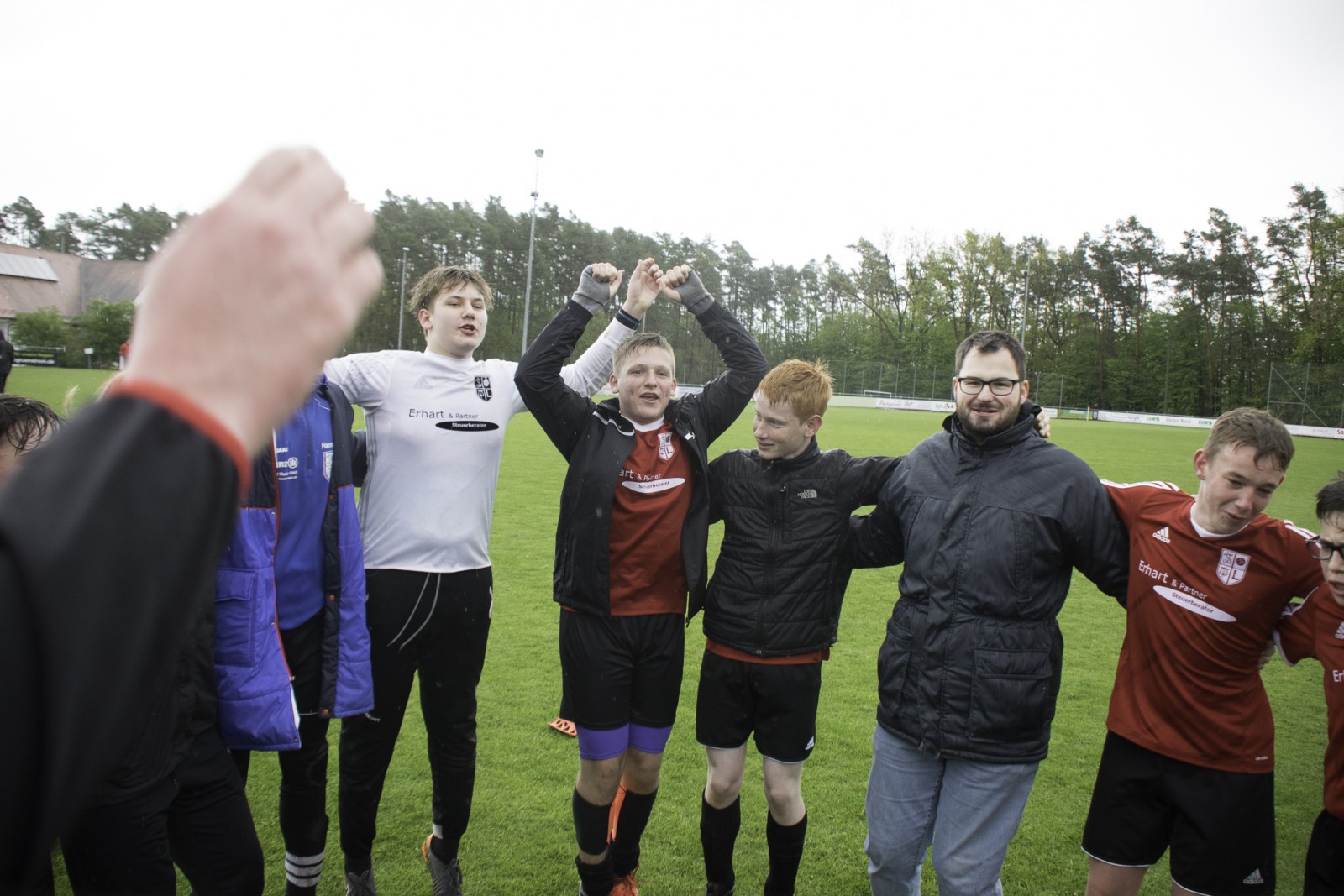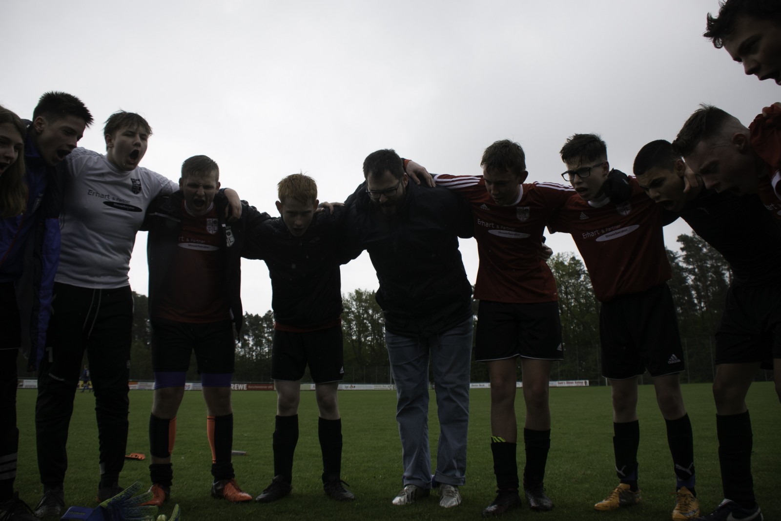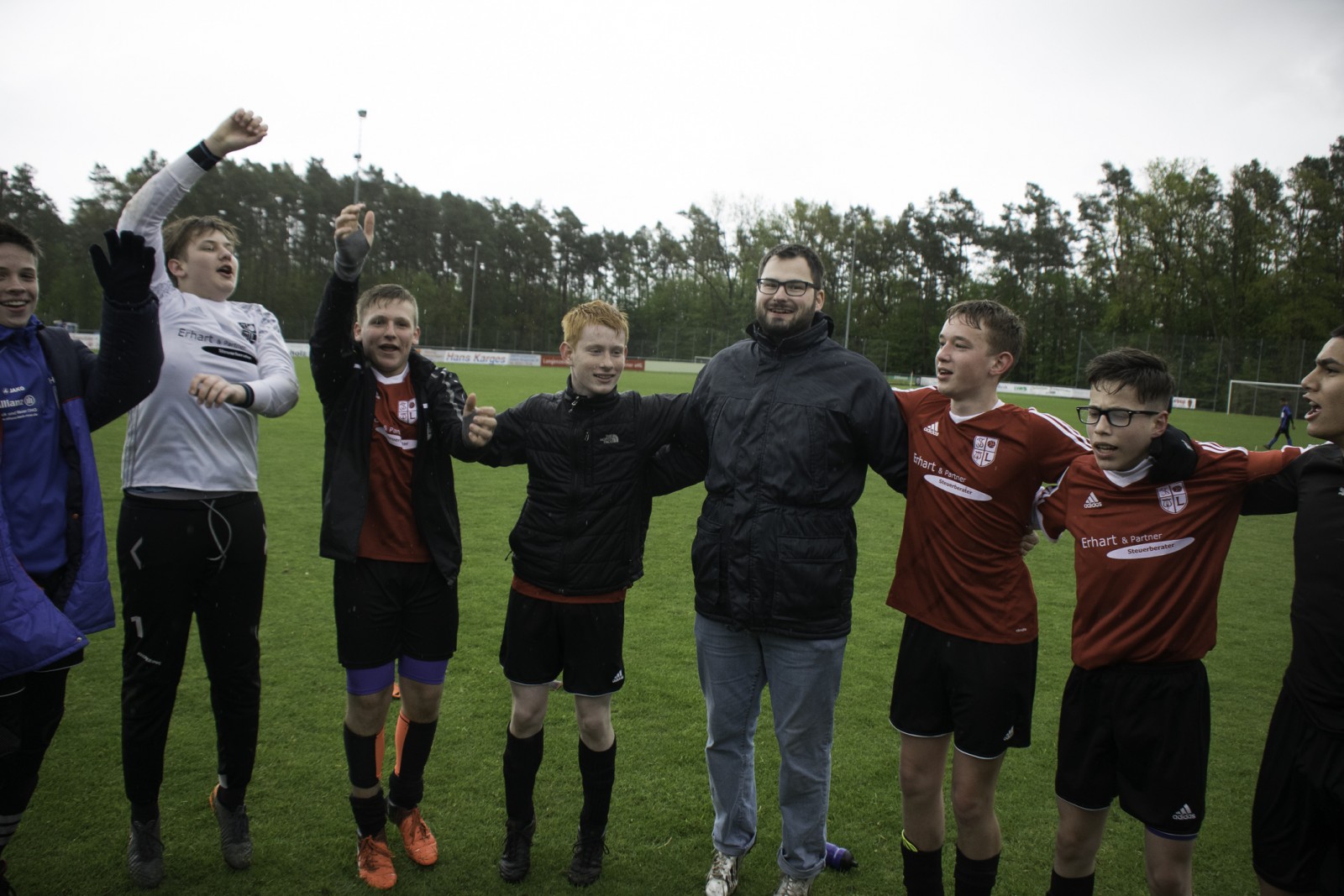 Auch wenn es diese Woche mehr Regen als in den vergangenen Monaten hatte. Unsere Jungs haben das „Fritz-Walter-Wetter“ zu einer optimalen Ausbeute genutzt.Mehrmals musste die Partie gegen die Truppe aus Burgfarrnbach 2 verschoben werden. Da hätte das Wetter besser gepasst, als am vergangenen Montag. Aber egal. Fritz-Walter-Wetter scheint unser Ding zu sein und wir hatten von Anfang an die Partie voll im Griff. Ein Angriff und eine gute Szene nach der anderen liefen auf das Tor der Burgfarrnbacher und es war nur eine Frage der Zeit bis wir das erste Tor erzielen konnten. Isi erzielte den sehenswerten Treffer. Nach ca. 10 Minuten konnten wir sogar auf 0:2 erhöhen und es war wieder Isi der einnetzte. Alles soweit gut. Es war kalt und es regnete in Strömen. Aber unsere Jungs waren gut drauf und der Gegner kam so gut wie nicht vor unser Tor. Dann war Halbzeit und der Matchplan war klar. Schnell ein drittes Tor erzielen und den Sieg nach Hause fahren. Aber es kam wie es kommen musste. Wir verteidigten schlecht und der erste Angriff nach der Pause war auch gleich ein Tor 1:2. Unser Team wurde nervös, im Mittelfeld wurden die Lücken immer größer und alles was uns in der 1. Halbzeit ausgezeichnet hatte, war auf einmal Makulatur. Wir verloren komplett den Zugriff auf das Spiel und mussten prompt den Ausgleich hinnehmen. Dann plätscherte die Partie (wie der Regen auch) so dahin und eigentlich dachte man, das war es jetzt, denn der tiefe Platz hatte bei den Kids konditionelle Spuren hinterlassen. Aber wie es manches Mal so ist, einen Angriff konnten wir noch fahren und Isi wurde im Strafraum gefoult. Elfmeter. Sanel trat an und verwandelte souverän zum 2:3.