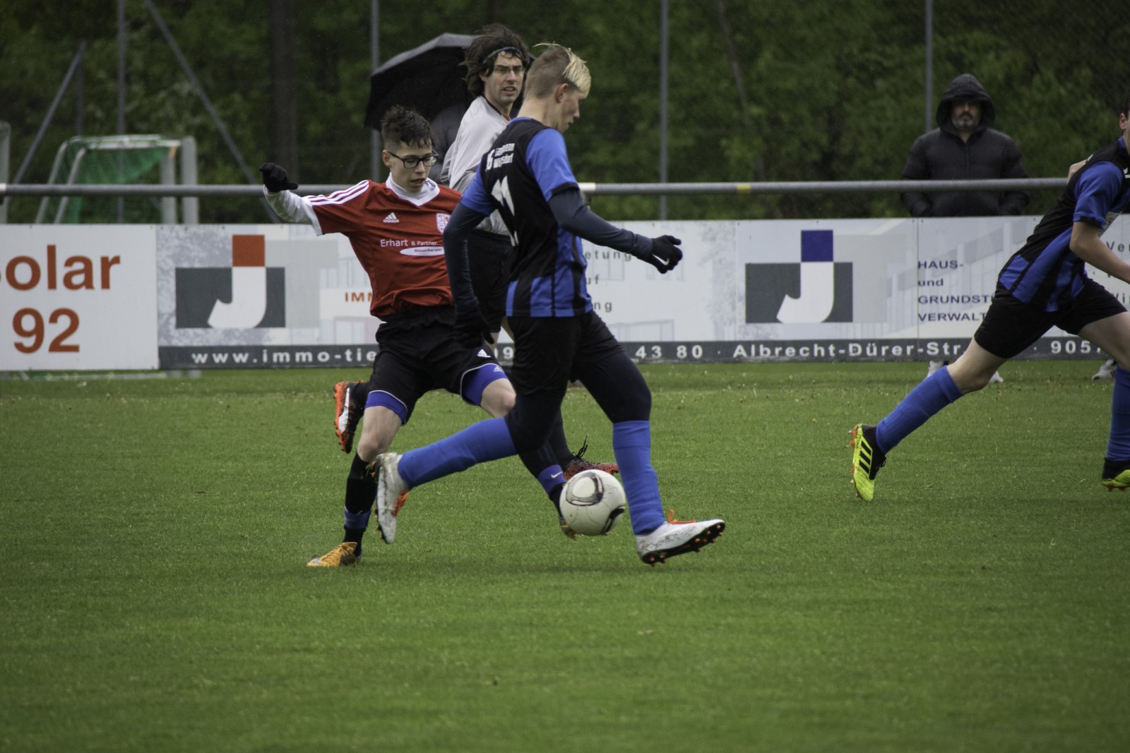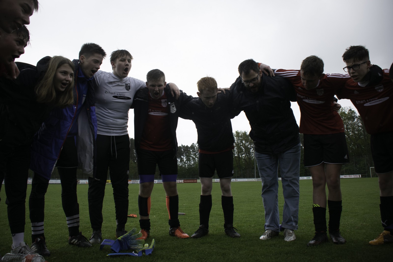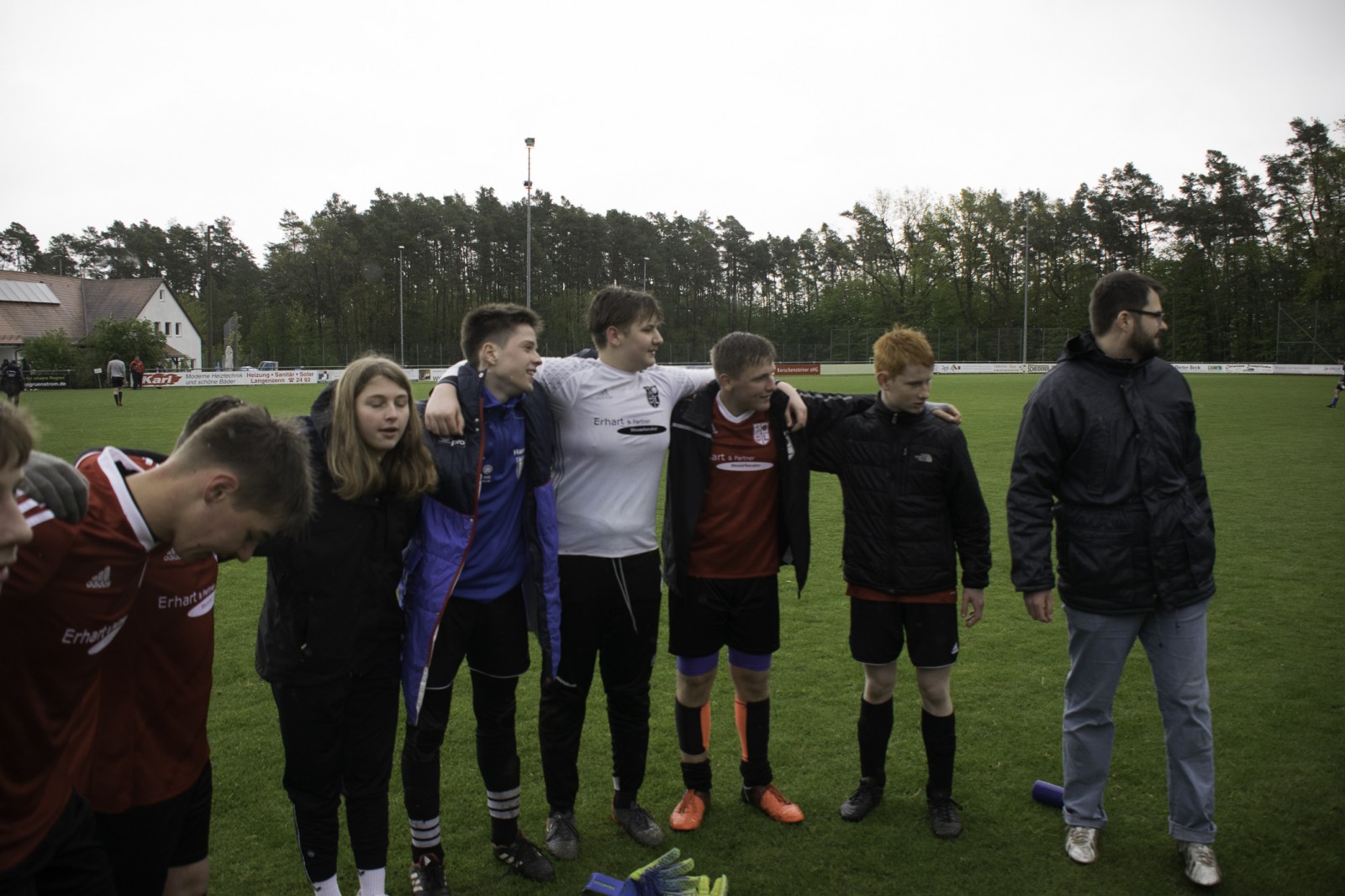 Auch wenn es diese Woche mehr Regen als in den vergangenen Monaten hatte. Unsere Jungs haben das „Fritz-Walter-Wetter“ zu einer optimalen Ausbeute genutzt.Mehrmals musste die Partie gegen die Truppe aus Burgfarrnbach 2 verschoben werden. Da hätte das Wetter besser gepasst, als am vergangenen Montag. Aber egal. Fritz-Walter-Wetter scheint unser Ding zu sein und wir hatten von Anfang an die Partie voll im Griff. Ein Angriff und eine gute Szene nach der anderen liefen auf das Tor der Burgfarrnbacher und es war nur eine Frage der Zeit bis wir das erste Tor erzielen konnten. Isi erzielte den sehenswerten Treffer. Nach ca. 10 Minuten konnten wir sogar auf 0:2 erhöhen und es war wieder Isi der einnetzte. Alles soweit gut. Es war kalt und es regnete in Strömen. Aber unsere Jungs waren gut drauf und der Gegner kam so gut wie nicht vor unser Tor. Dann war Halbzeit und der Matchplan war klar. Schnell ein drittes Tor erzielen und den Sieg nach Hause fahren. Aber es kam wie es kommen musste. Wir verteidigten schlecht und der erste Angriff nach der Pause war auch gleich ein Tor 1:2. Unser Team wurde nervös, im Mittelfeld wurden die Lücken immer größer und alles was uns in der 1. Halbzeit ausgezeichnet hatte, war auf einmal Makulatur. Wir verloren komplett den Zugriff auf das Spiel und mussten prompt den Ausgleich hinnehmen. Dann plätscherte die Partie (wie der Regen auch) so dahin und eigentlich dachte man, das war es jetzt, denn der tiefe Platz hatte bei den Kids konditionelle Spuren hinterlassen. Aber wie es manches Mal so ist, einen Angriff konnten wir noch fahren und Isi wurde im Strafraum gefoult. Elfmeter. Sanel trat an und verwandelte souverän zum 2:3.