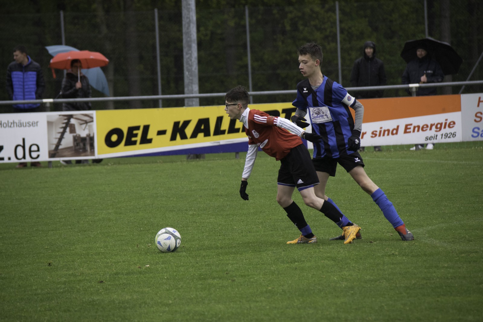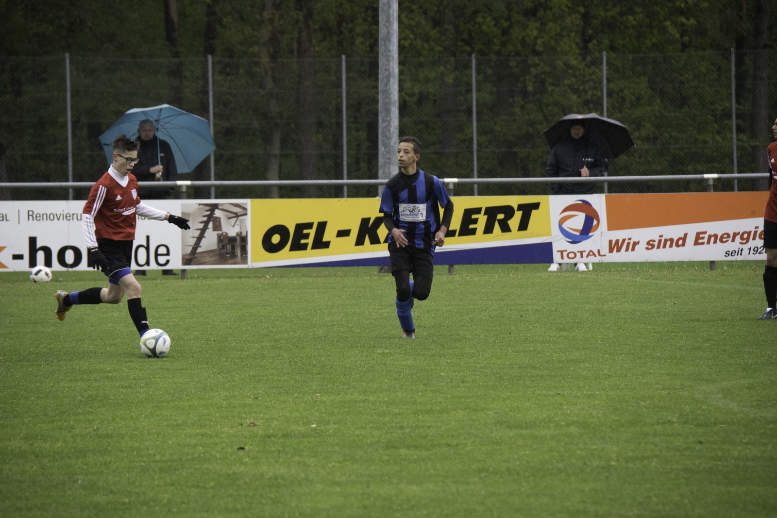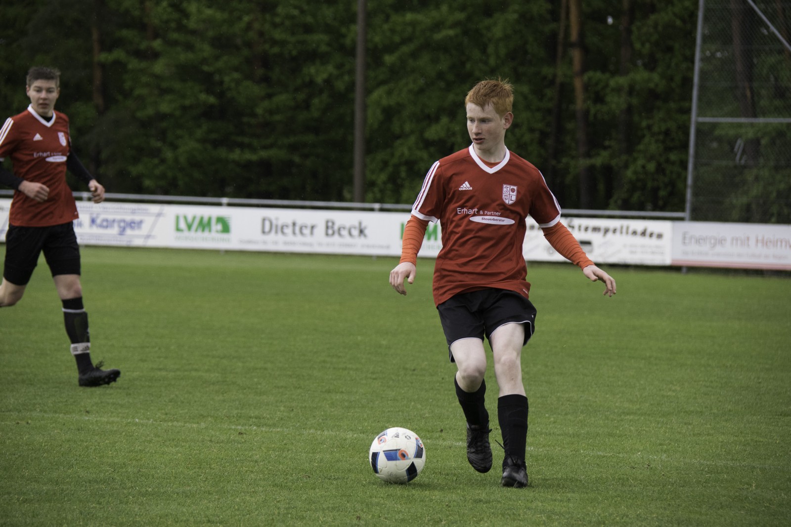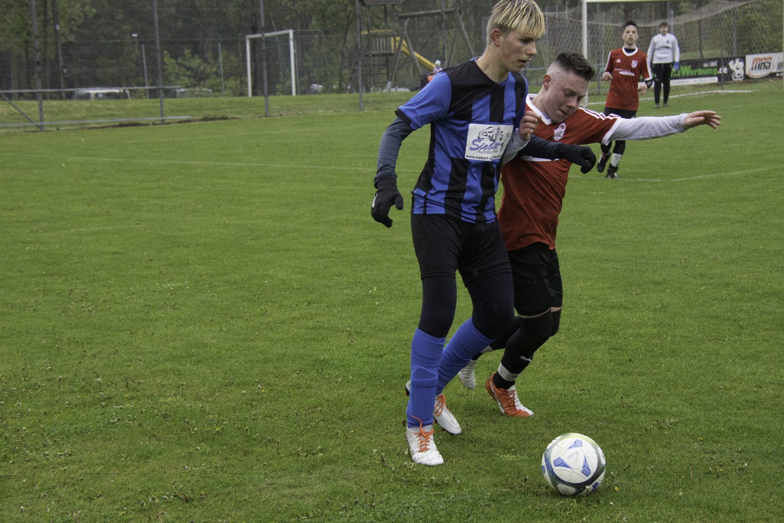 Auch wenn es diese Woche mehr Regen als in den vergangenen Monaten hatte. Unsere Jungs haben das „Fritz-Walter-Wetter“ zu einer optimalen Ausbeute genutzt.Mehrmals musste die Partie gegen die Truppe aus Burgfarrnbach 2 verschoben werden. Da hätte das Wetter besser gepasst, als am vergangenen Montag. Aber egal. Fritz-Walter-Wetter scheint unser Ding zu sein und wir hatten von Anfang an die Partie voll im Griff. Ein Angriff und eine gute Szene nach der anderen liefen auf das Tor der Burgfarrnbacher und es war nur eine Frage der Zeit bis wir das erste Tor erzielen konnten. Isi erzielte den sehenswerten Treffer. Nach ca. 10 Minuten konnten wir sogar auf 0:2 erhöhen und es war wieder Isi der einnetzte. Alles soweit gut. Es war kalt und es regnete in Strömen. Aber unsere Jungs waren gut drauf und der Gegner kam so gut wie nicht vor unser Tor. Dann war Halbzeit und der Matchplan war klar. Schnell ein drittes Tor erzielen und den Sieg nach Hause fahren. Aber es kam wie es kommen musste. Wir verteidigten schlecht und der erste Angriff nach der Pause war auch gleich ein Tor 1:2. Unser Team wurde nervös, im Mittelfeld wurden die Lücken immer größer und alles was uns in der 1. Halbzeit ausgezeichnet hatte, war auf einmal Makulatur. Wir verloren komplett den Zugriff auf das Spiel und mussten prompt den Ausgleich hinnehmen. Dann plätscherte die Partie (wie der Regen auch) so dahin und eigentlich dachte man, das war es jetzt, denn der tiefe Platz hatte bei den Kids konditionelle Spuren hinterlassen. Aber wie es manches Mal so ist, einen Angriff konnten wir noch fahren und Isi wurde im Strafraum gefoult. Elfmeter. Sanel trat an und verwandelte souverän zum 2:3.