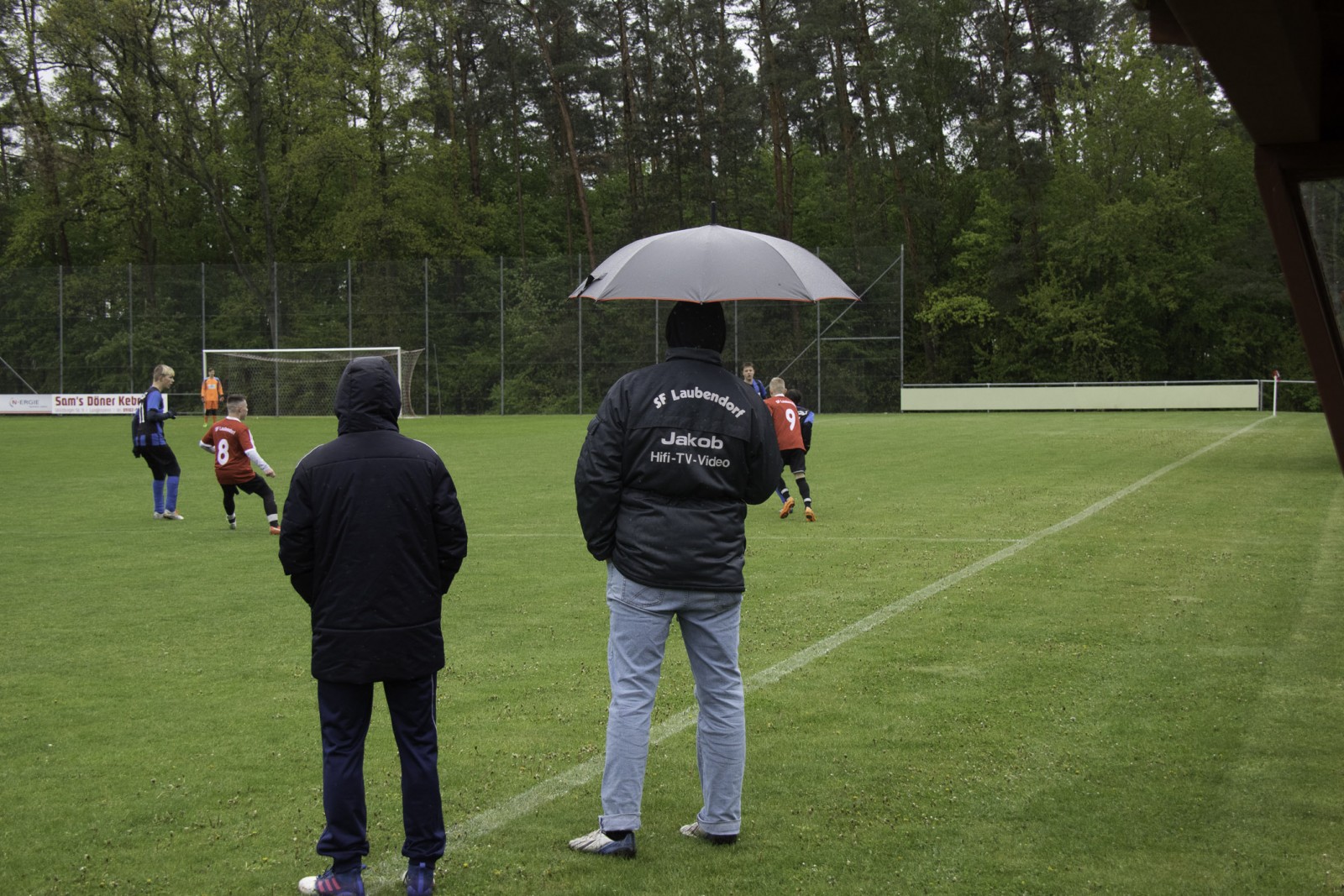 Nach der Halbzeit lies der Regen etwas nach und die Partie verlief im Mittelfeld. Leider mit sehr vielen Stockfehlern, zu kurzen Pässen, schlechten Zweikämpfen. Aber auch keiner Gefahr für unser Tor. Es war dann wiederum Isi der den Ball zum 4:1 im Netz unterbrachte. Ein paar Minuten später wurde Sanel im Strafraum gefoult. Elfmeter. Wer trat an? Na klar, Isi. Souverän verwandelt. 5:1 für den SFL. Danach hatten wir das Spiel komplett im Griff und Benni konnte sich als Passgeber auszeichnen, da wir extrem viel hinten herum spielten um dann mit überfallartigen Kontern, sehenswerten Hackentricks und unglaublichen Pässen die SG-Spieler zur Verzweiflung brachten. Es war dann Sanel der zum 6:1 traf und wie sollte es anders sein, es war wieder Isi der seinen „6.“ Treffer dieser Partie zum 7:1 Endstand erzielte. Jungs es hat richtig Spaß gemacht und wir gratulieren zu diese grandiosen Derby-Sieg und natürlich ganz besonders Isi zu seinem 6er-Pack.