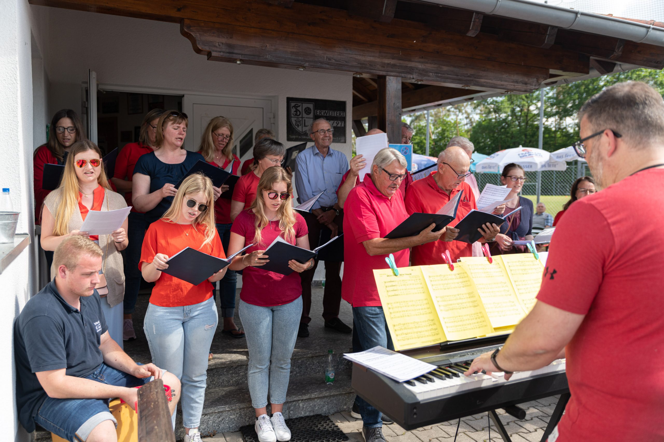 Bei bestem Wetter fand der Begegnungstreff dieses Mal im Biergarten unseres Sportheims statt. Manche kamen zu Fuß, andere nutzten das Angebot des BüBLas, oder kamen mit dem eigenen Auto. Nach der Begrüßung durch Lena Goos von der Ukrainehilfe und unserem Vorstand Christian Gall sorgte leckerer selbst gemachter Kuchen, Kaffee und Kaltgetränke und vor allem die schöne Musik unserer Sänger für einen wunderbaren Nachmittag. Die Kinder spielten Fußball und rannten über den Rasen. Vielleicht kommt ja der ein oder andere wieder mal vorbei!