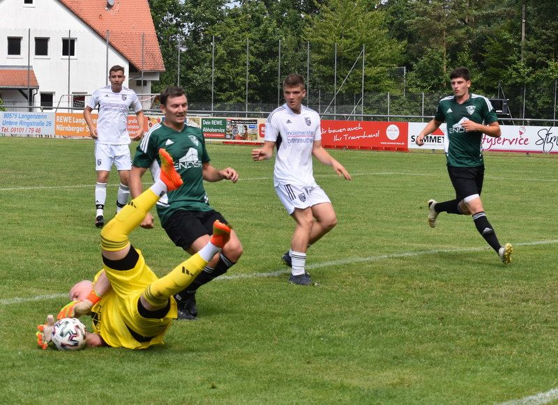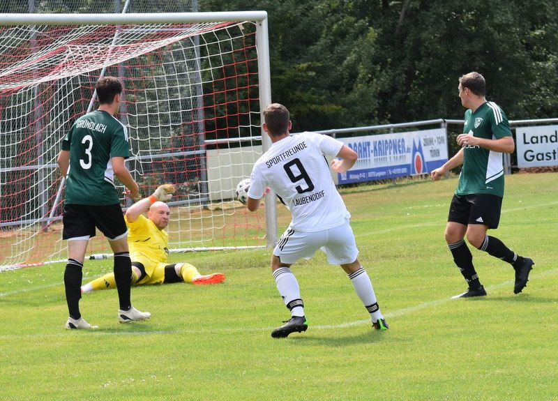Nach zwei intensiven Trainingswochen und einem Test im Trainingslager stand nun das erste Testspiel auf der heimischen Sportanlage an. Gegner waren die Sportfreunde Großgründlach. Bei bestem Sommerwetter präsentierten sich beide Mannschaften zunächst auf Augenhöhe. Auf beiden Seiten konnten gefährliche Abschlüsse erzielt werden. Doch sowohl Laubendorfs Becker war immer zur Stelle als auch der Schlussmann der Gäste, der kurz vor der Pause bei einem Versuch von Werner blitzschnell unten in der Ecke war. Bis zum Seitenwechsel konnten die Gäste die etwas besseren Chancen verzeichnen. Dennoch blieb es nach 45 Minuten beim torlosen Remis. In der zweiten Hälfte ließen die Gäste etwas nach und das Laubendorfer Mittelfeld hatte nun mehr Raum und Zeit um die Bälle zu spielen. Folge war ein deutliches Chancenplus für den SFL. Aber der gut aufgelegte Schlussmann der Großgründlacher war auch hier immer zur Stelle. In der 71. Minute aber war er machtlos als Korn nach einem Eckball den Ball aufs kurze Eck köpfte und das Tor des Tages erzielte. Einmal wurde es noch vor dem Laubendorfer Gehäuse gefährlich als der Ball infolge eines Einwurfes verloren ging aber Becker war wieder zur Stelle und konnte parieren. In der Schlussphase kamen die Laubendorfer noch zu einigen Möglichkeiten es blieb aber beim knappen 1:0.