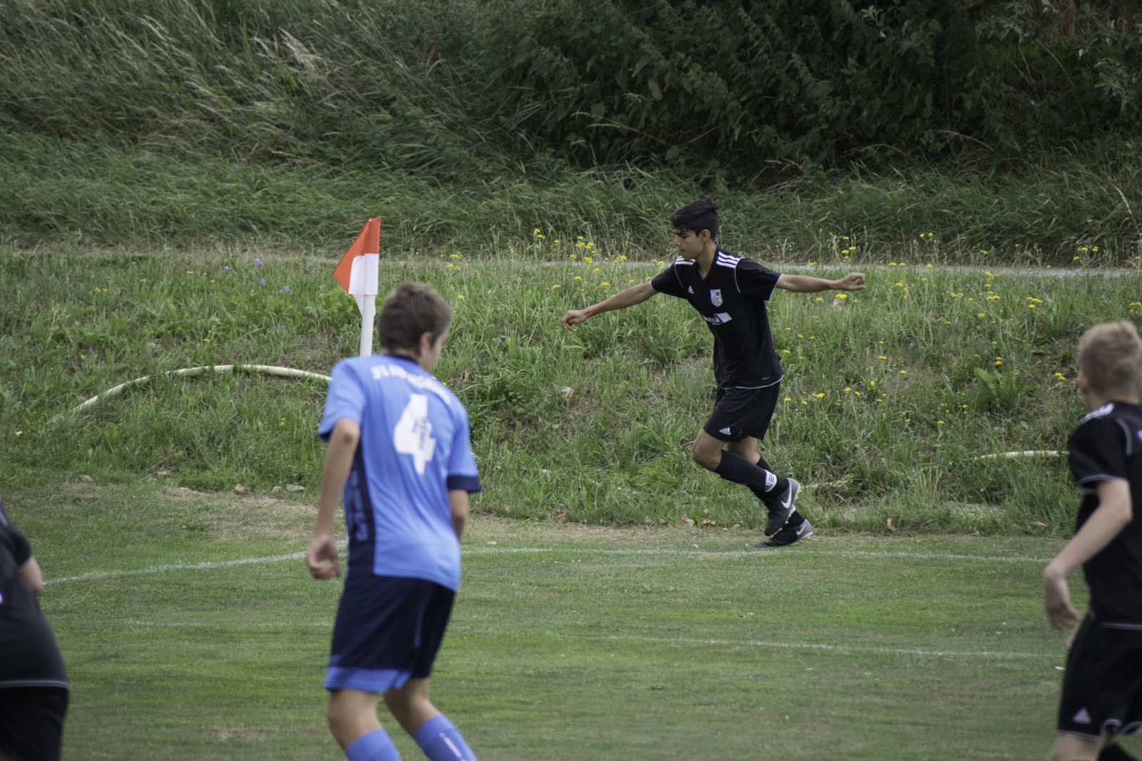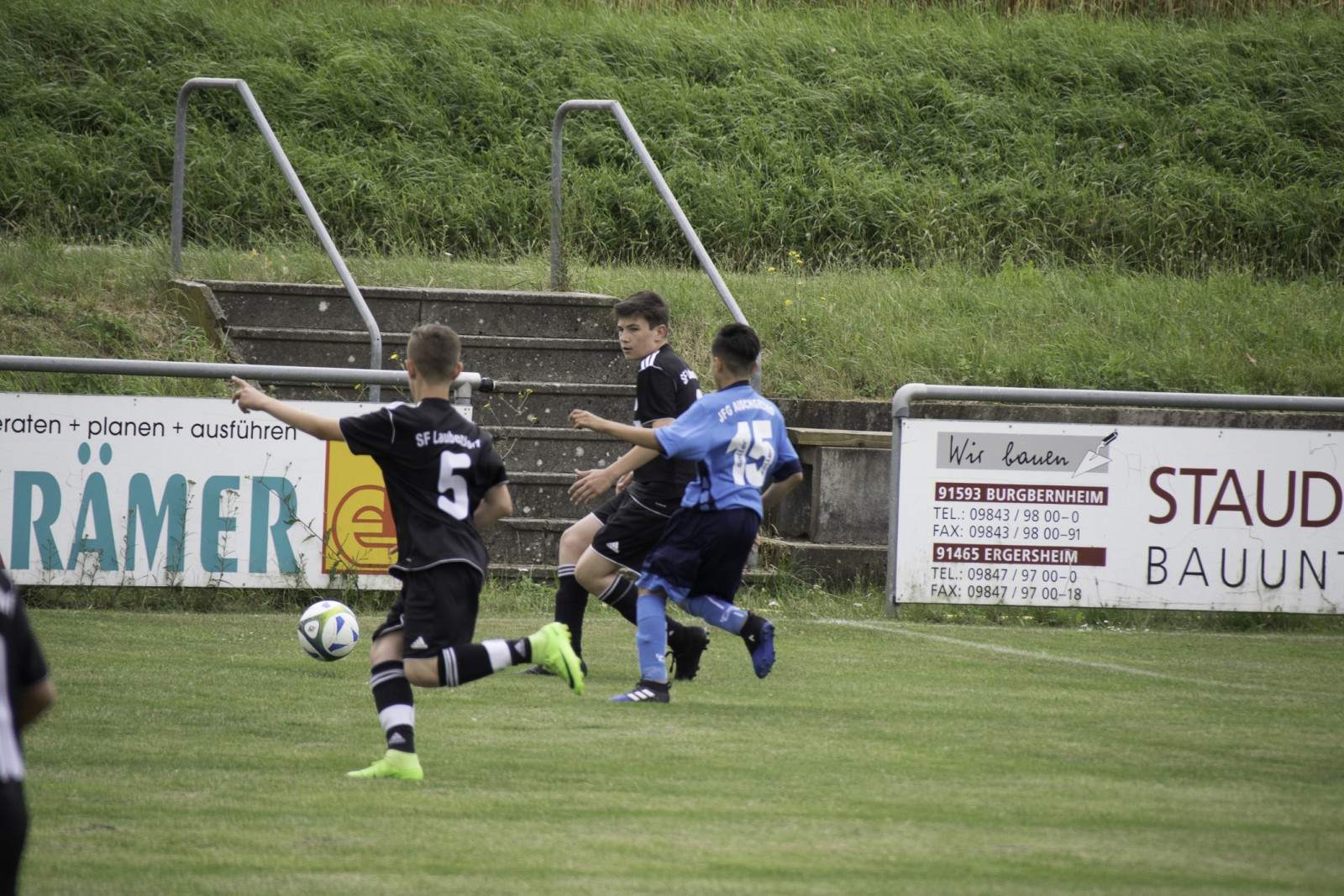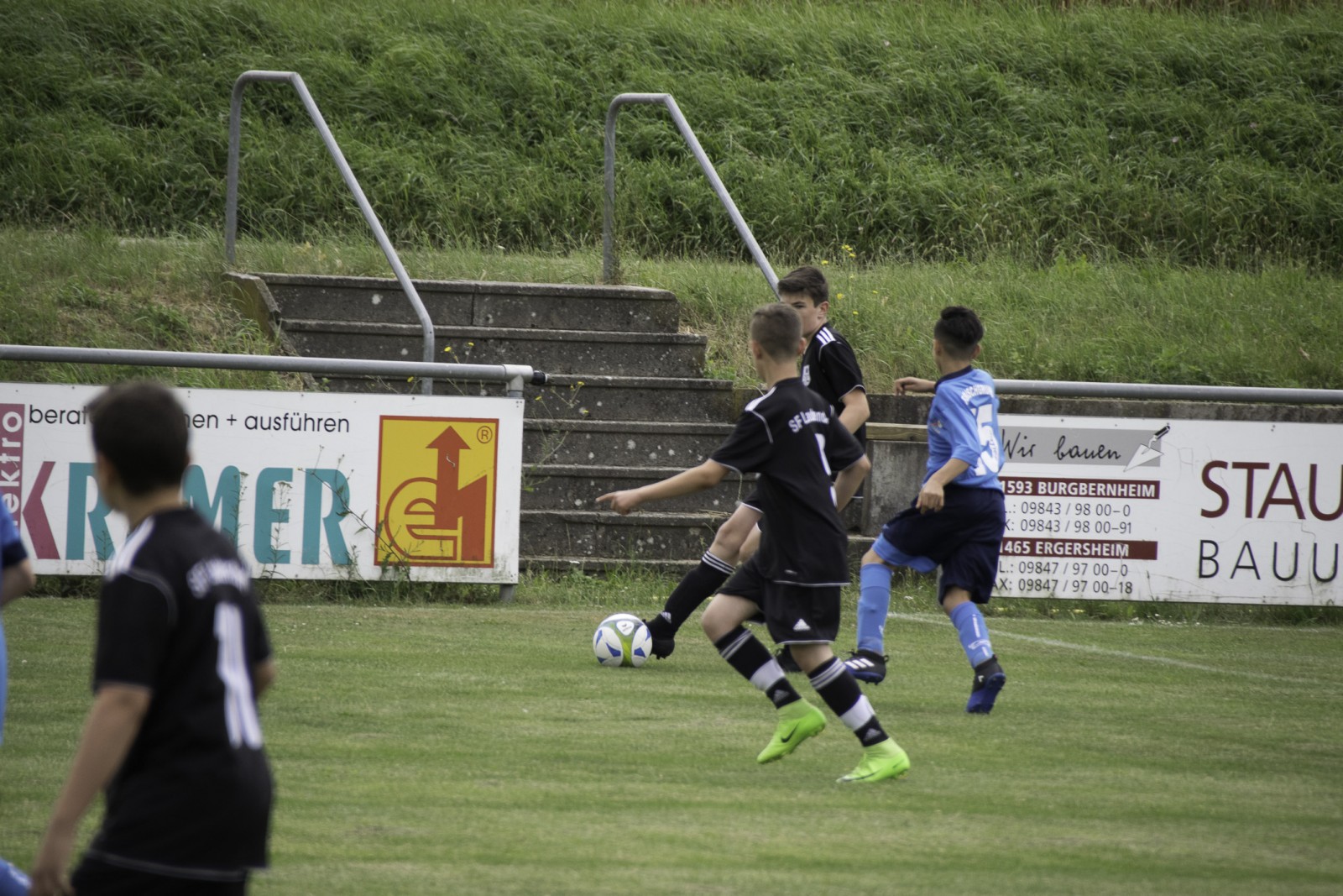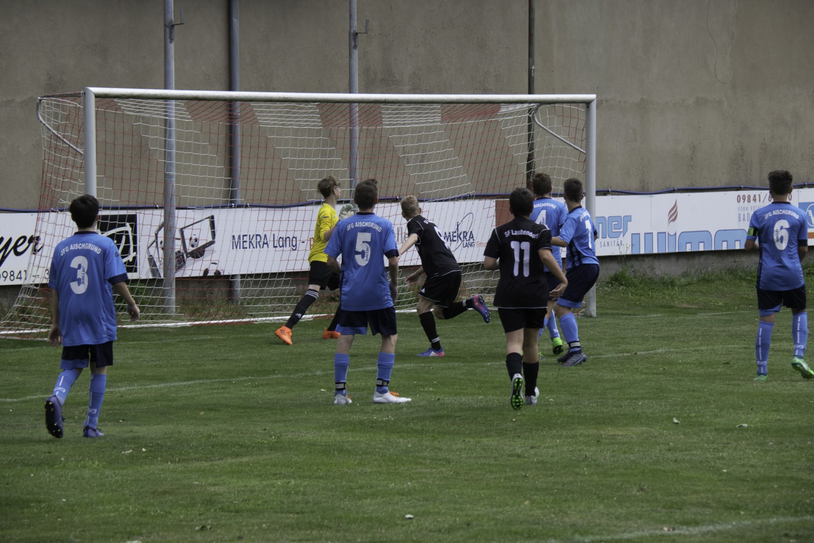 Am gestrigen Samstag spielten wir unser letztes Saisonspiel gegen die JFG Aischgrund 2 in Ergersheim.  Bestes Fußballwetter, nicht unbedingte ideale Platzverhältnisse und leider viel zu wenige Zuschauer sahen unser letztes Saisonspiel.Der Ball lief von Anfang an gut durch unsere Reihen und die Kids konnten dadurch auch wieder an Sicherheit gewinnen. Man merkte ihnen an,  dass die Niederlage gegen die SG Losaurach/Markt-Erlbach doch leider ein paar Spuren hinterlassen hat.  Auch die erste Druckphase des Gegners überstanden wir durch aufmerksame Abwehrarbeit und einen aufmerksamen Torhüter gut. Isi erlöste dann alle mit dem 0:1 und konnte kurze Zeit später auch noch das 0:2 nachlegen. Eigentlich alles gut. Wir hatten den Gegner im Griff und erspielten uns viele Möglichkeiten. Leider fehlte am Ende immer noch eine Kleinigkeit um noch ein paar Tore mehr nachzulegen. Eine Coproduktion von Isi und Nicolas führte dann zum 0:3. Jetzt dachten wir es passt alles. Leider waren wir dann unaufmerksam und wir mussten vor der Pause das 1:3 hinnehmen.