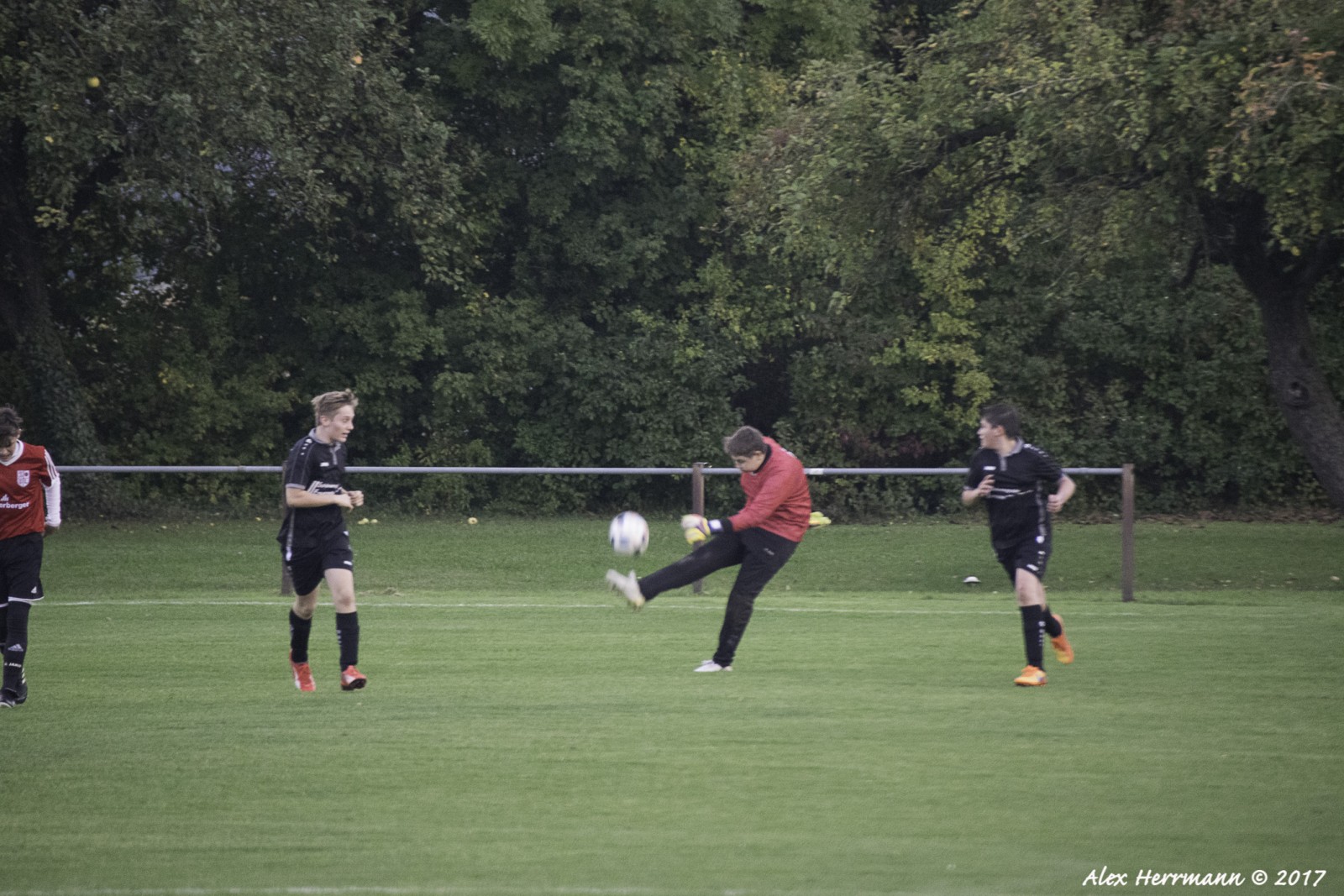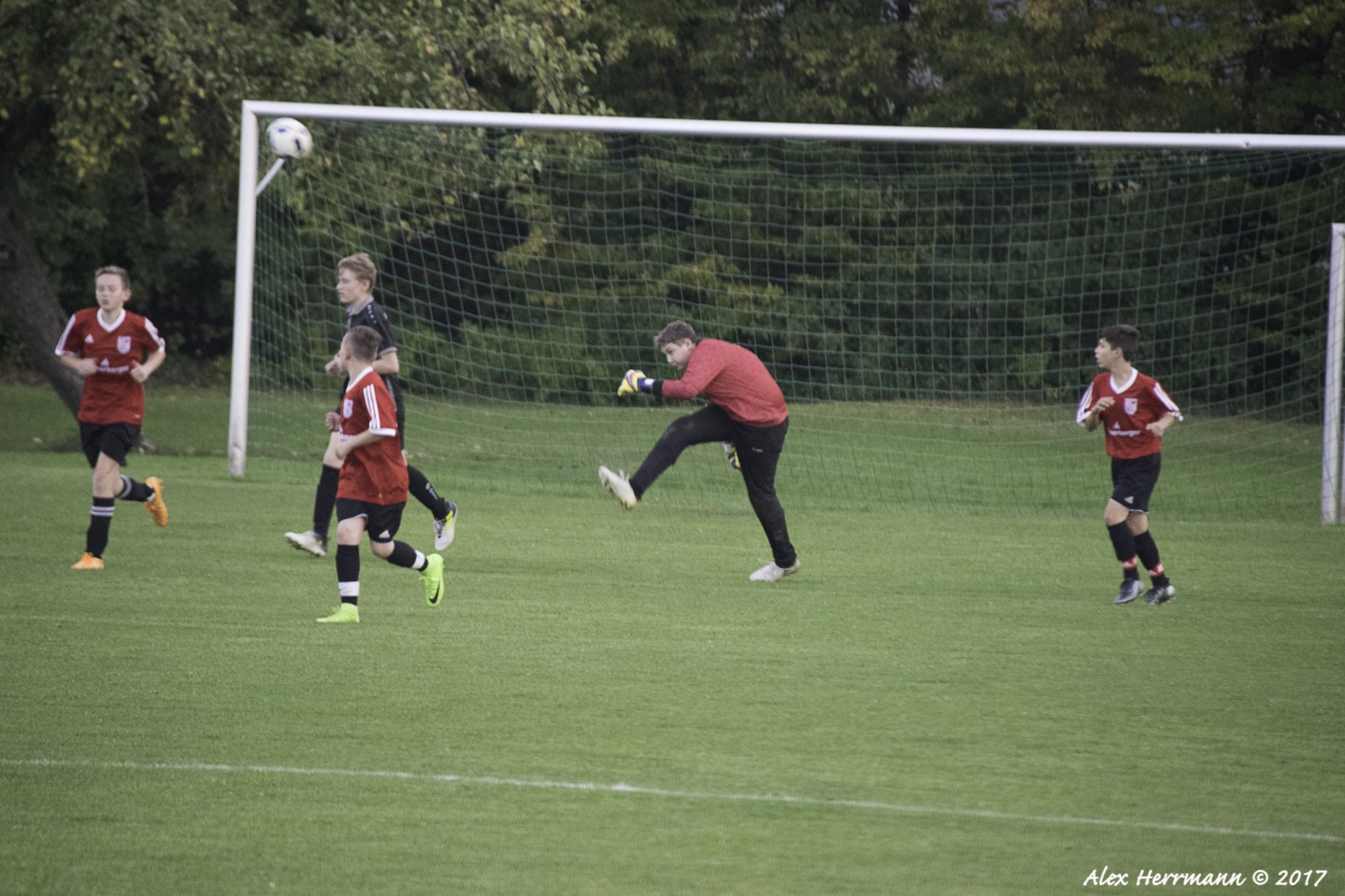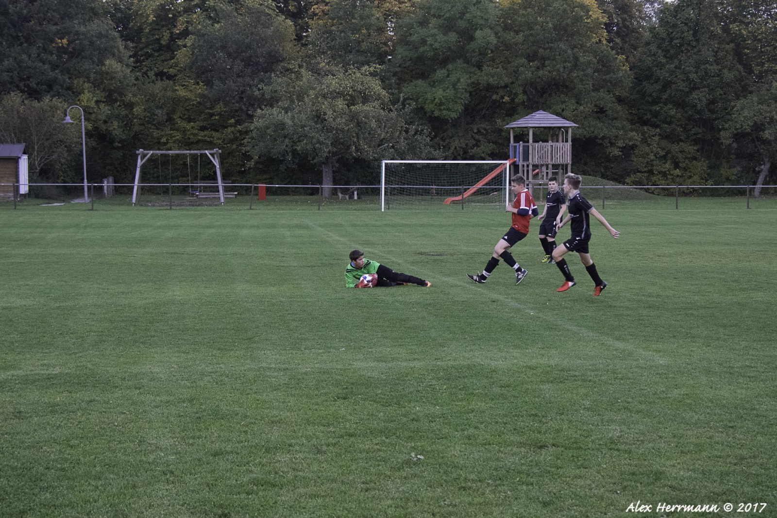 Nachdem unser Gegner den ersten Spieltermin absagen musste, fand am letzten Donnerstag nun das zweite Saisonspiel nach dem dritten statt. Die Wettervorhersage war leider alles andere als günstig, denn es stürmte und regnete als wir uns warm machten. Zum Spiel waren aber plötzlich Wind und Regen weg und wir legten los wie die Feuerwehr.  Nach einem kurzem Abtasten ging es mit dem 1:0 durch Kimi los und nach einer der vielen Ecken erzielte Kimi per Kopf auch gleich das 2:0. Lukas erhöhte durch einen tollen Weitschuss auf 3:0. Leider folgte dann eine Fehlentscheidung des ansonsten unaufgeregt leitenden Schiedsrichters. Isi war auf der Außenbahn auf dem Weg zum 16er und wurde von seinem Gegenspieler ins Straucheln gebracht (also klares Foul), beim Hinfallen ging allerdings auch sein Gegenspieler mit zu Boden und der Schiri gab Freistoß für die SG Emskirchen-Hagenbüchach.  Wir waren alle noch gedanklich auf dem Weg zum gegnerischen Tor und verteidigten leider nicht konsequent. Benni hatte keine Chance und somit stand es 1:3. Dies war dann auch der Pausenstand.