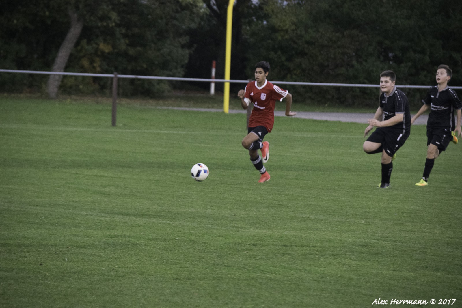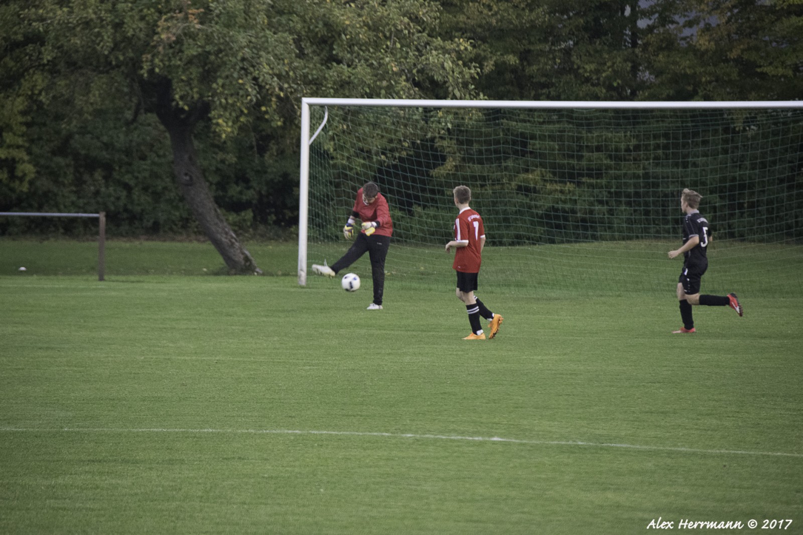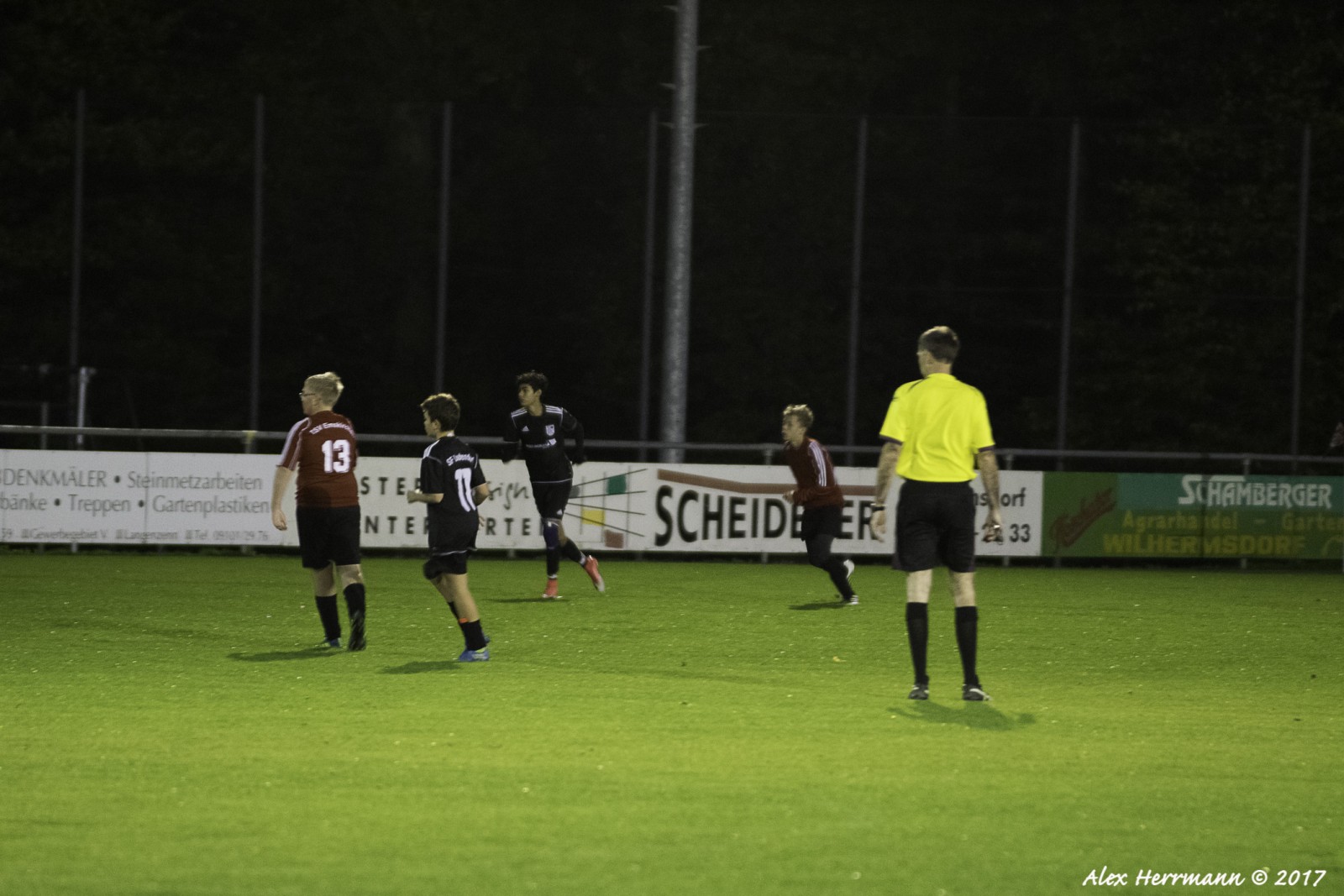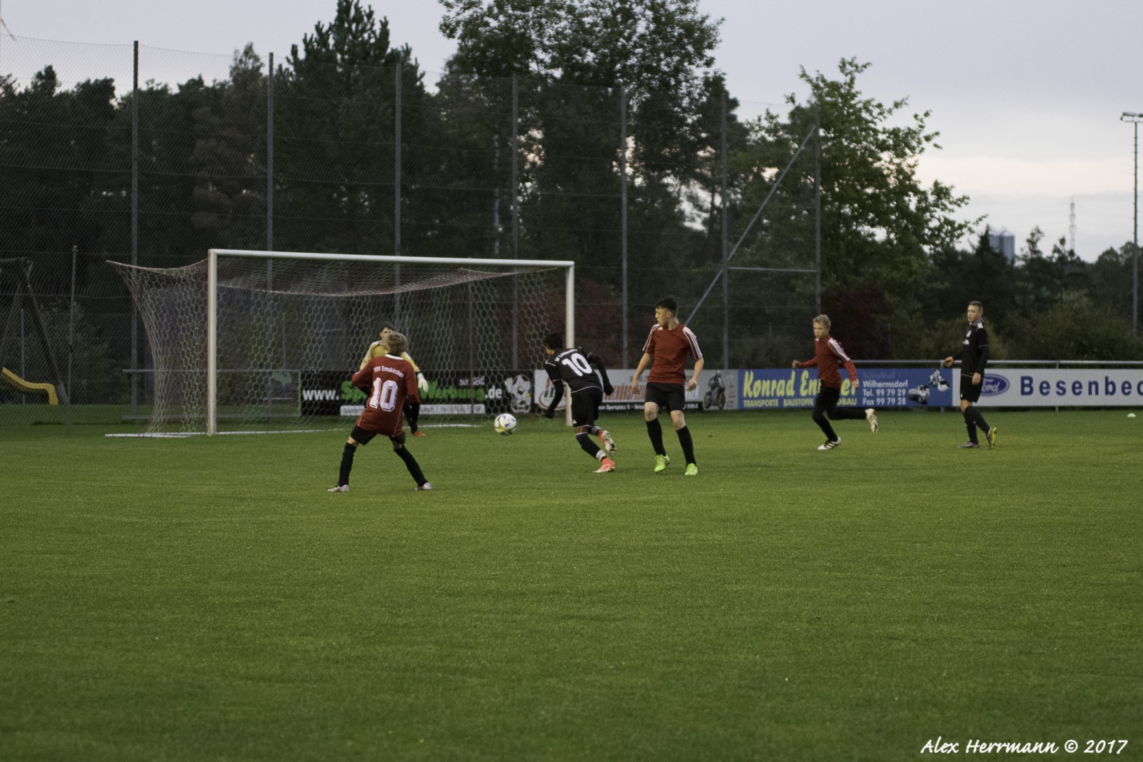 Nachdem unser Gegner den ersten Spieltermin absagen musste, fand am letzten Donnerstag nun das zweite Saisonspiel nach dem dritten statt. Die Wettervorhersage war leider alles andere als günstig, denn es stürmte und regnete als wir uns warm machten. Zum Spiel waren aber plötzlich Wind und Regen weg und wir legten los wie die Feuerwehr.  Nach einem kurzem Abtasten ging es mit dem 1:0 durch Kimi los und nach einer der vielen Ecken erzielte Kimi per Kopf auch gleich das 2:0. Lukas erhöhte durch einen tollen Weitschuss auf 3:0. Leider folgte dann eine Fehlentscheidung des ansonsten unaufgeregt leitenden Schiedsrichters. Isi war auf der Außenbahn auf dem Weg zum 16er und wurde von seinem Gegenspieler ins Straucheln gebracht (also klares Foul), beim Hinfallen ging allerdings auch sein Gegenspieler mit zu Boden und der Schiri gab Freistoß für die SG Emskirchen-Hagenbüchach.  Wir waren alle noch gedanklich auf dem Weg zum gegnerischen Tor und verteidigten leider nicht konsequent. Benni hatte keine Chance und somit stand es 1:3. Dies war dann auch der Pausenstand.