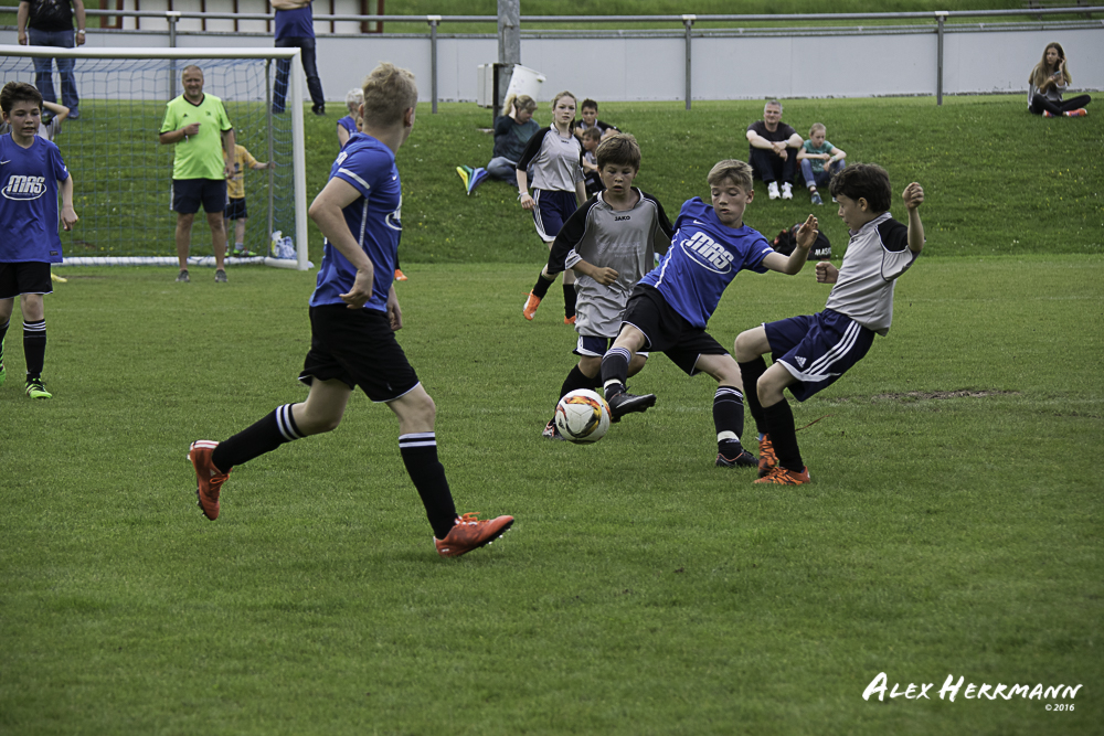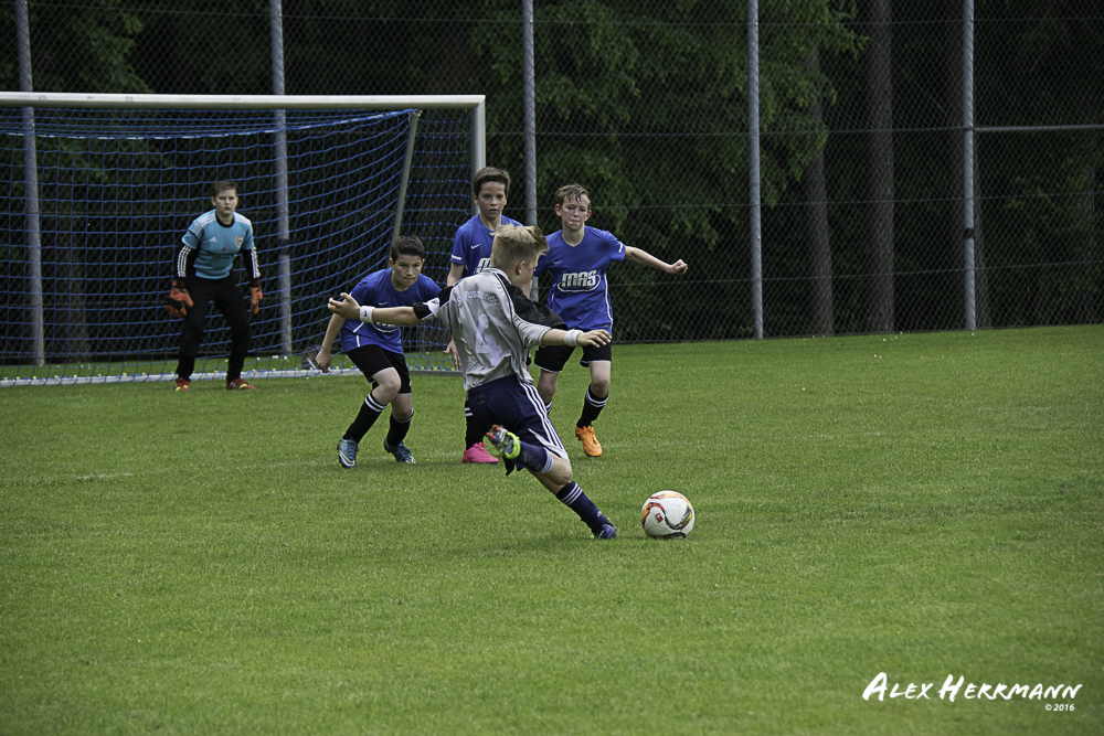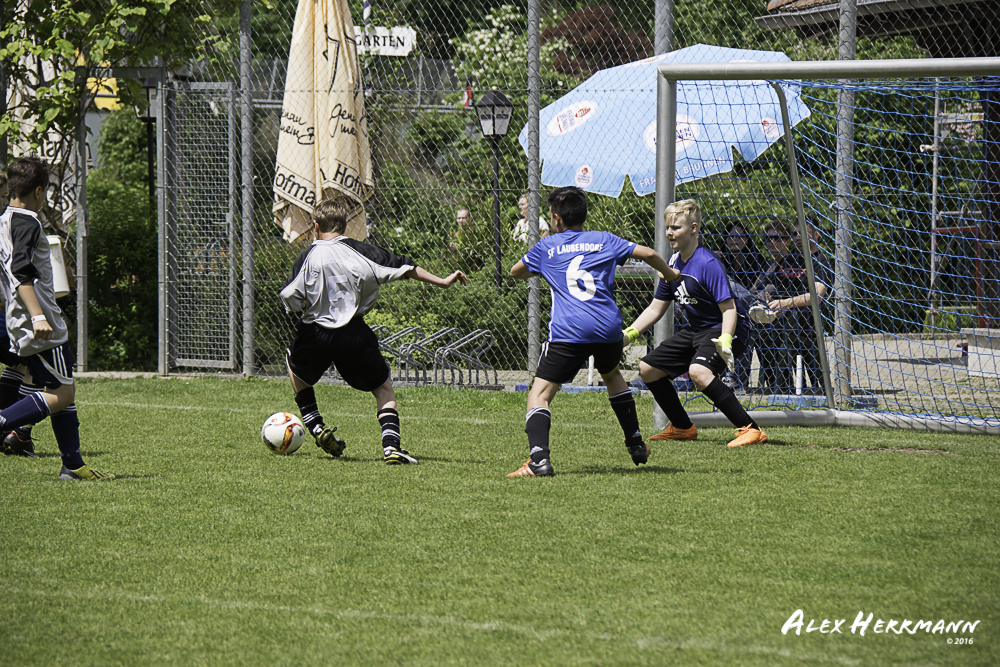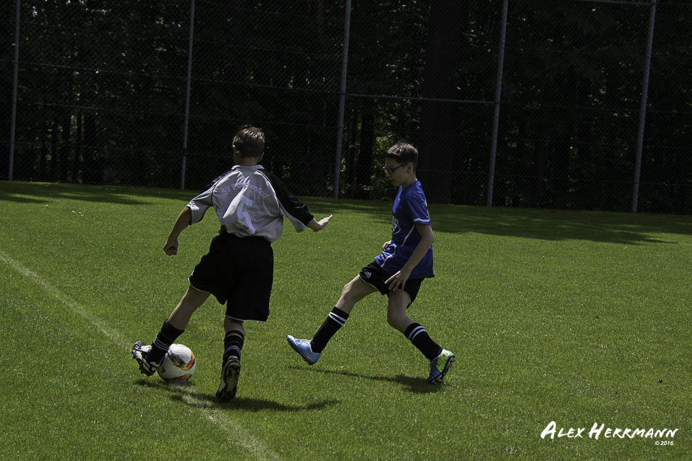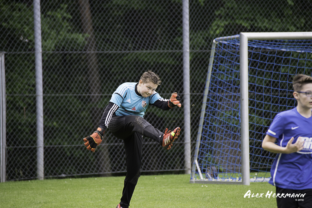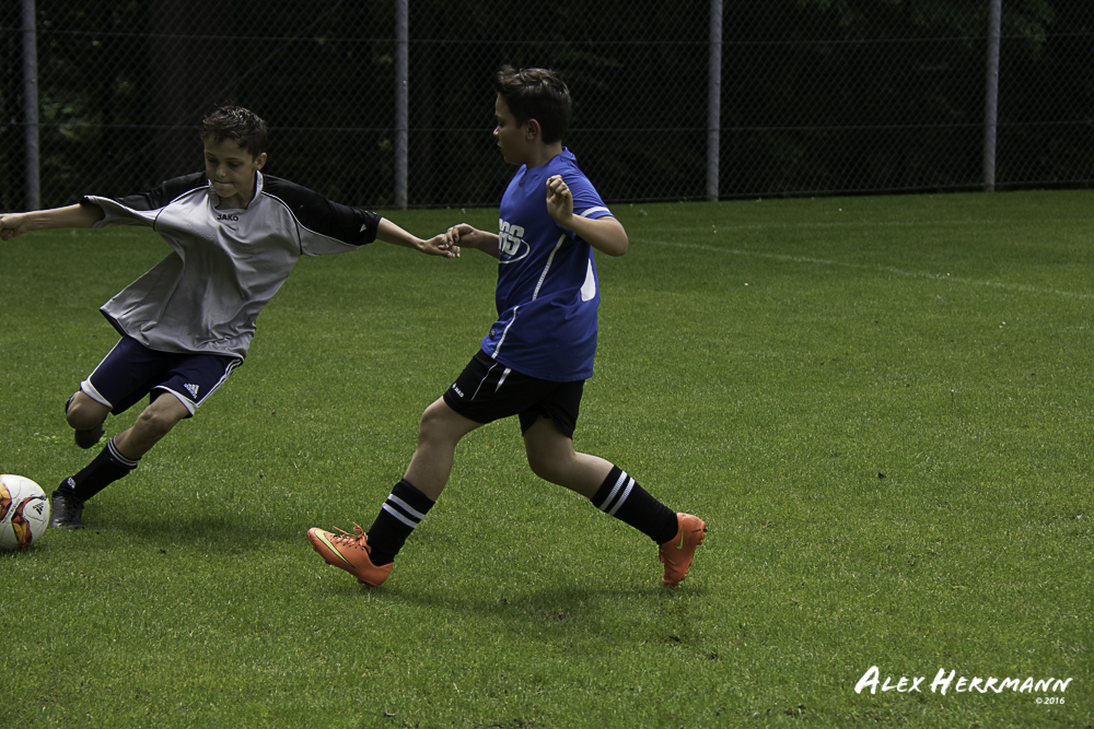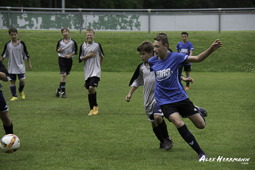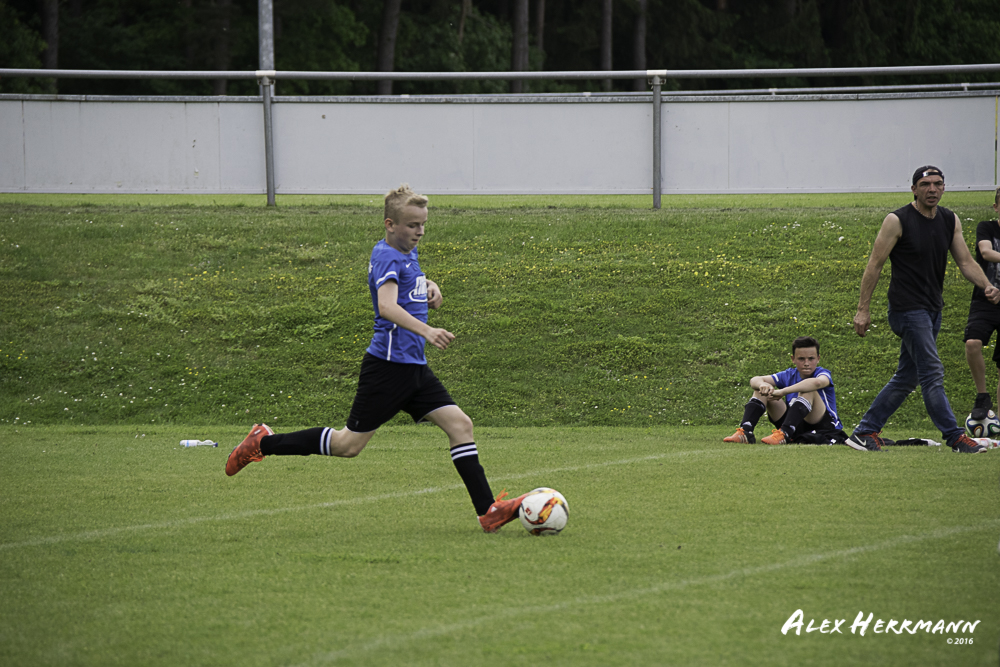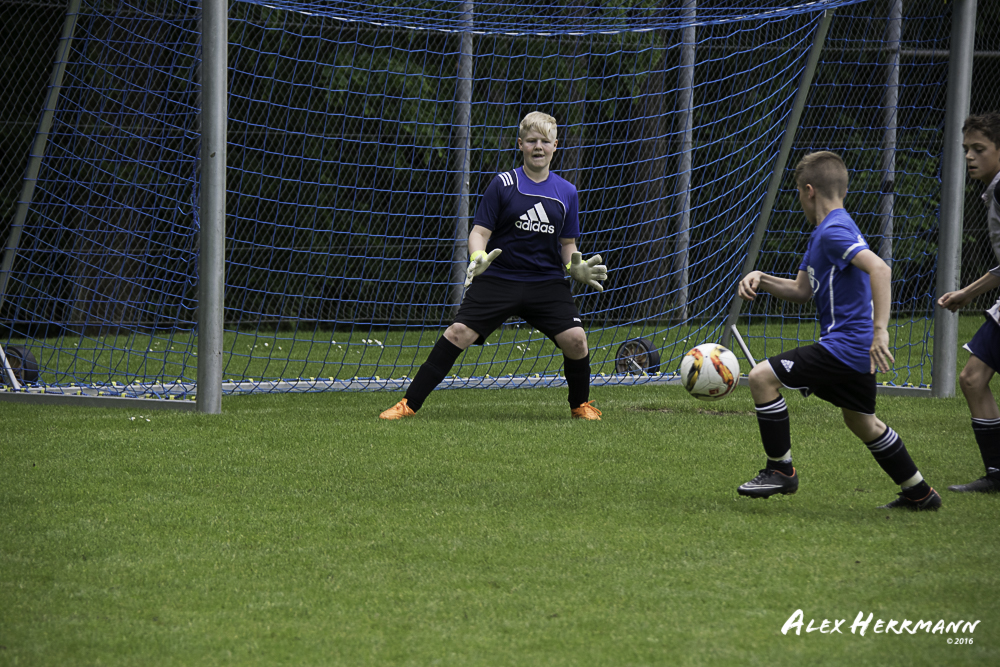 Nachdem bereits klar war, dass wir die Meisterschaft gesichert haben, war unser neues Ziel für dieses Spiel ganz klar. Wir wollten die Partie unbedingt gewinnen. Gegen eine Gegner der in der Abwehr gut stand, kein leichtes Unterfangen. Wir brauchten ca. 10 Minuten um das Spiel wirklich in den Griff zu bekommen und gleich die erste Tormöglichkeit nutze Kimi zum verdienten 1:0.  Leider sorgte der Treffer nicht wirklich für Sicherheit im Team und wir standen gerade im Mittelfeld zu weit vom Gegner weg und kamen nicht wirklich gut in die Zweikämpfe im Mittelfeld. Das war auch der Tatsache geschuldet, dass es am Platz eine gefühlte Luftfeuchtigkeit von 90% hatte und den Kids die Beine schwer machte. Unsere Abwehrreihe stand aber um Organisator Hannes sicher und somit ging es mit 1:0 in die Pause.