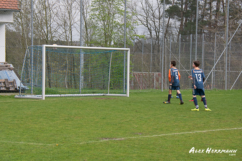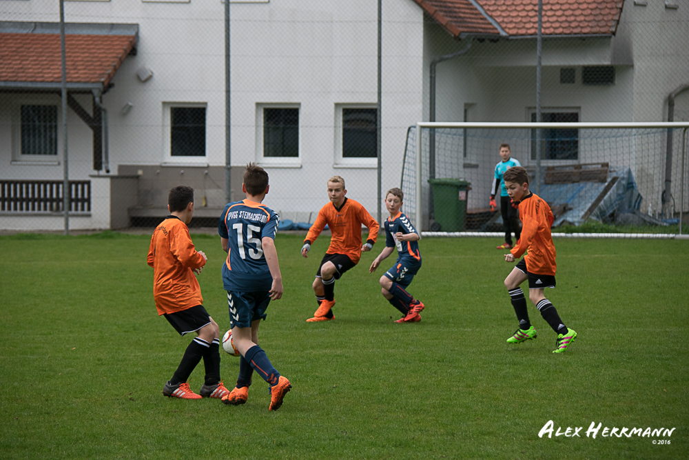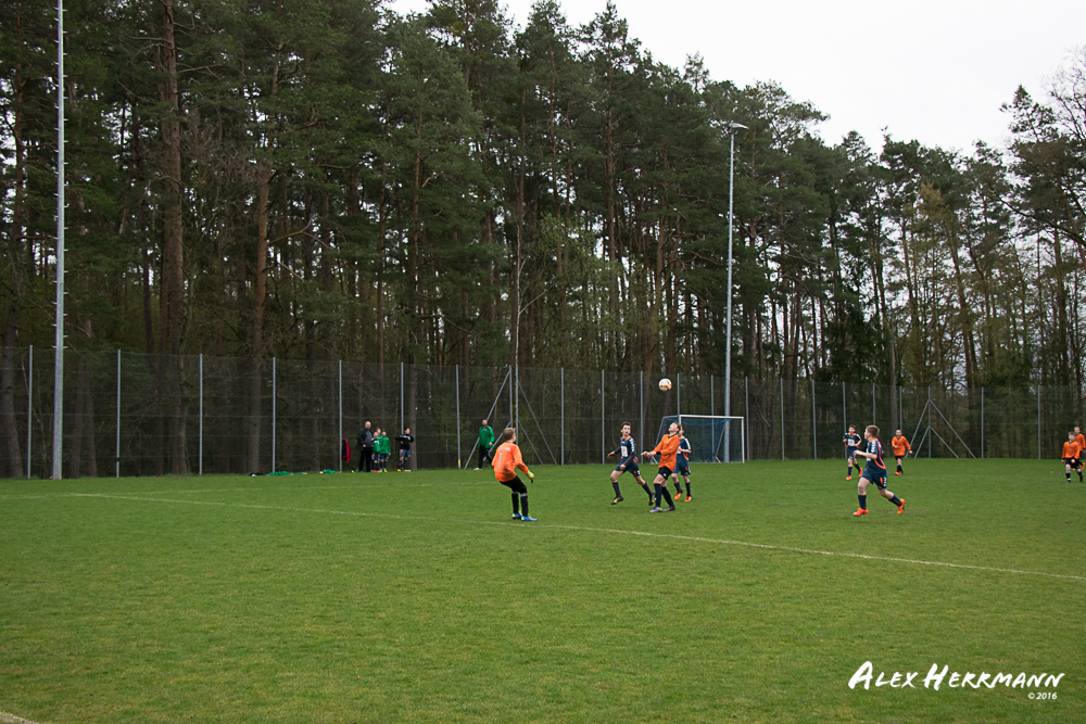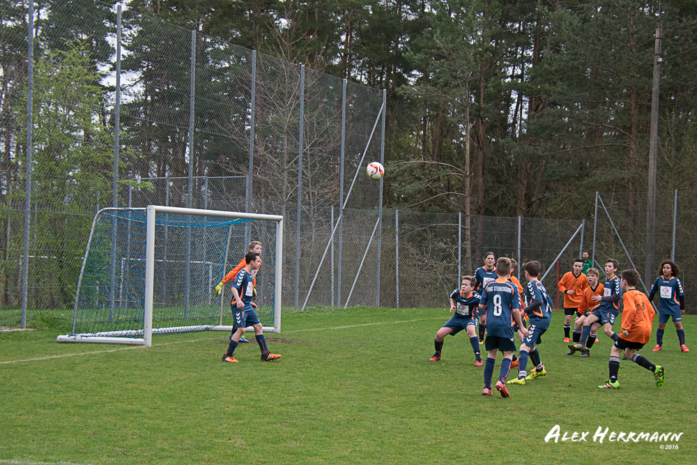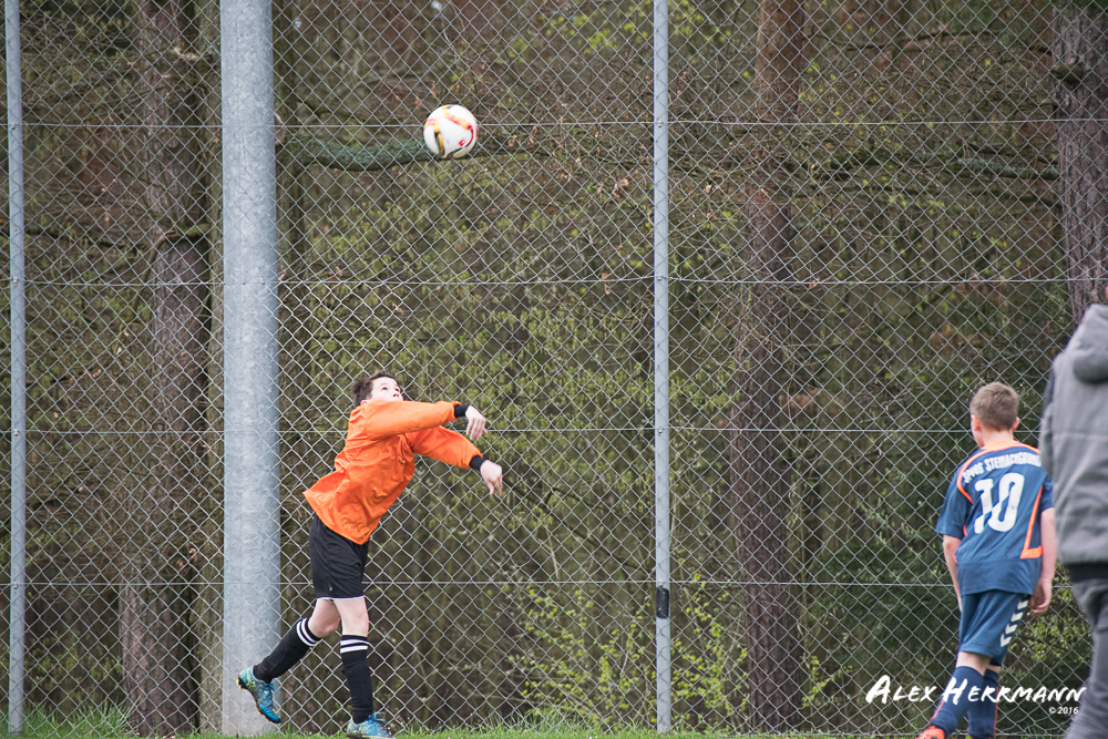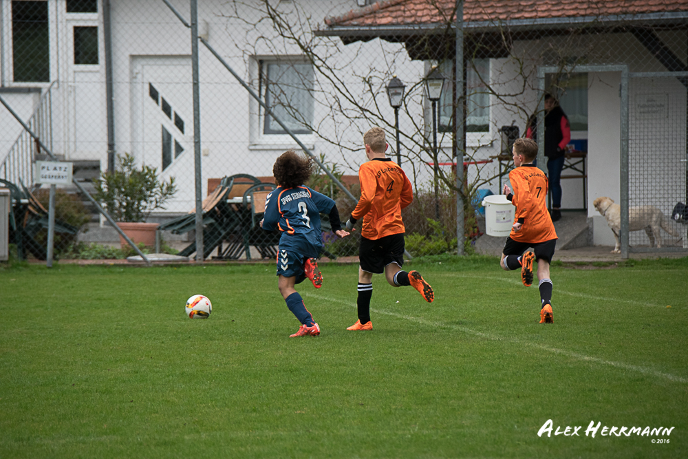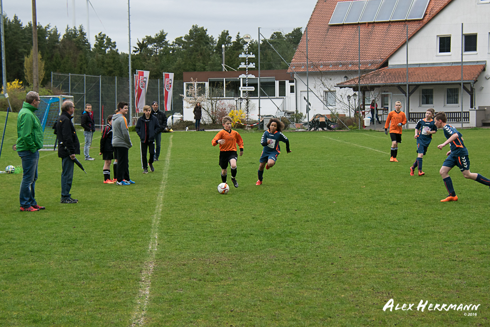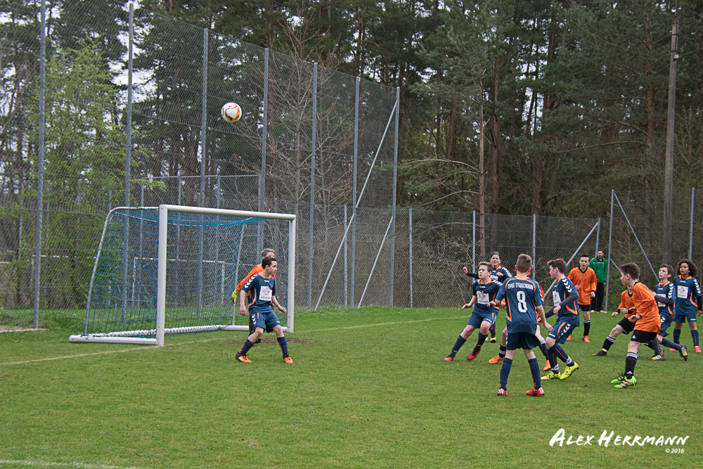 Es hat einfach nicht sein sollen. Trotz gefühlten 25:3 Torchancen konnten wir das heutige Spitzenspiel gegen den bis dahin Tabellenzweiten aus Gutenstetten (SpVgg Steinachgrund) nicht gewinnen und mussten uns mit einem 1:1 Unentschieden begnügen.Es fing alles so gut an. Der Regen hatte aufgehört und wir konnten durch einen tollen Schuß von Kimi schnell mit 1:0 in Führung gehen. Zwei, Drei weitere super Chancen landeten entweder an Latte oder Pfosten oder wir scheiterten am super aufgelegten Gästetorhüter. Der erste Angriff der Gästemannschaft war dann auch gleich ein Tor. Unser Torwart Benni konnte den Ball nicht sicher festhalten und somit stand es 1:1. Wir erspielten uns Chance um Chance, aber es wollte einfach der Ball nicht ins Netz gehen. Weitere 4 Aluminiumtreffer und der Gästetorwart verhinderten unsere Führung. Dann kurz vor dem Halbzeitpfiff, hatten wir noch die Gelegenheit, mit einem Elfmeter die Führung zu erzielen. Aber heute hat es einfach nicht sein sollen und Anton scheiterte am Gästekeeper. Somit stand es zur Halbzeit 1:1. Leider wendte sich das Blatt auch in der zweiten Halbzeit nicht. Wir erspielten uns Chance über Chance und scheiterten am Aluminium oder am gut aufgelegten Gästekeeper. Die Truppe hat alles gegeben und einfach kein Glück gehabt. Vielen Dank an alle für Ihren tollen Einsatz und immerhin konnten wir unser Serie weiter ausbauen. Bisher haben wir noch kein Punktspiel in dieser Saison verloren. Weiter so – Jungs und Sarah!