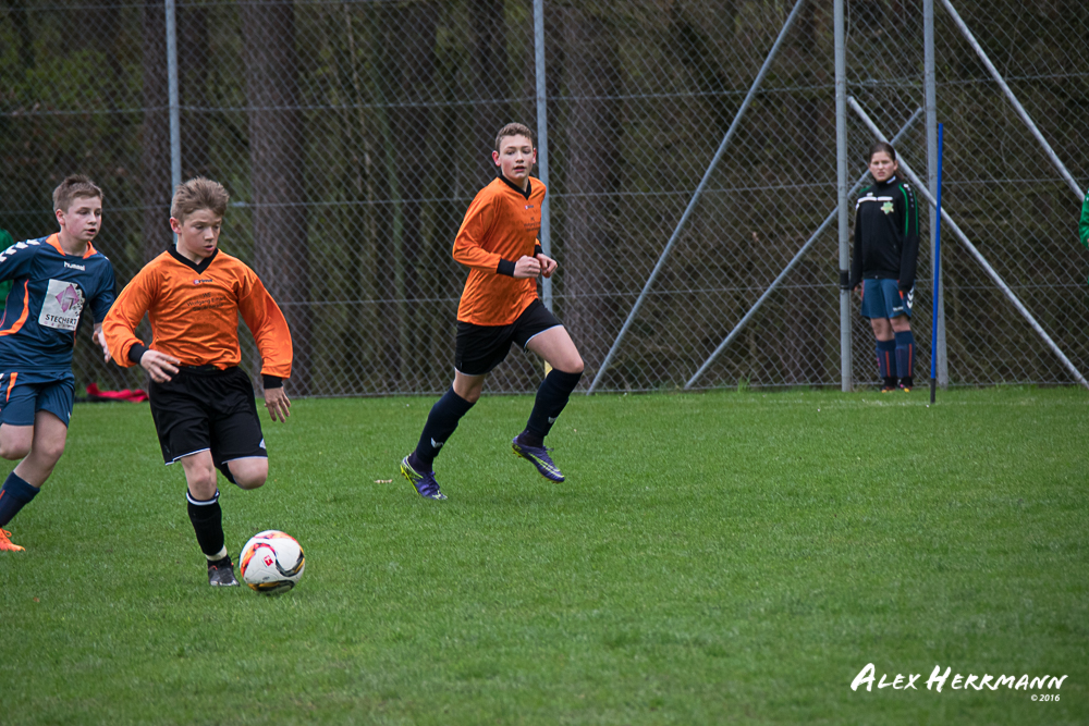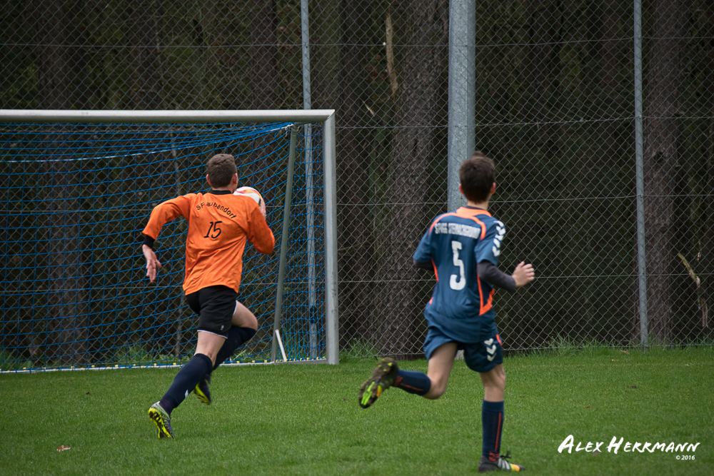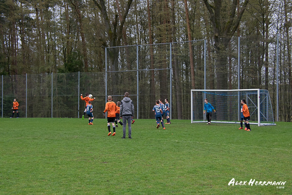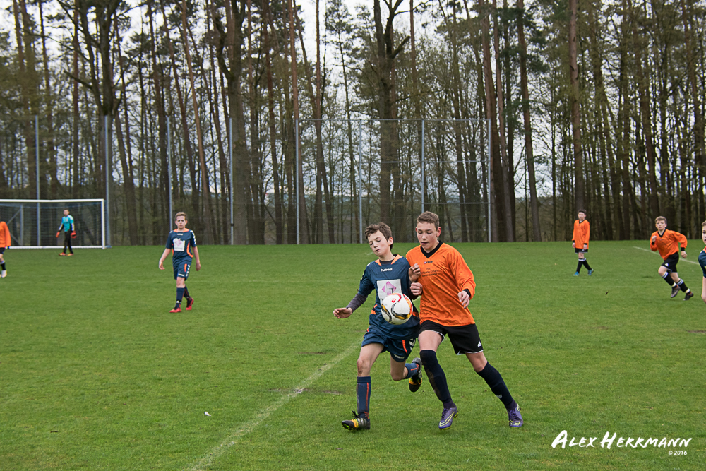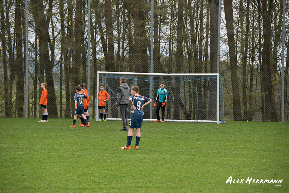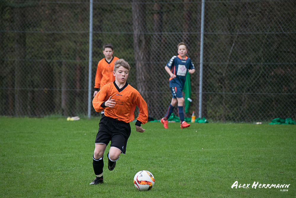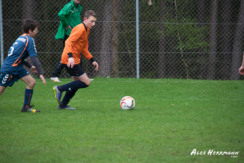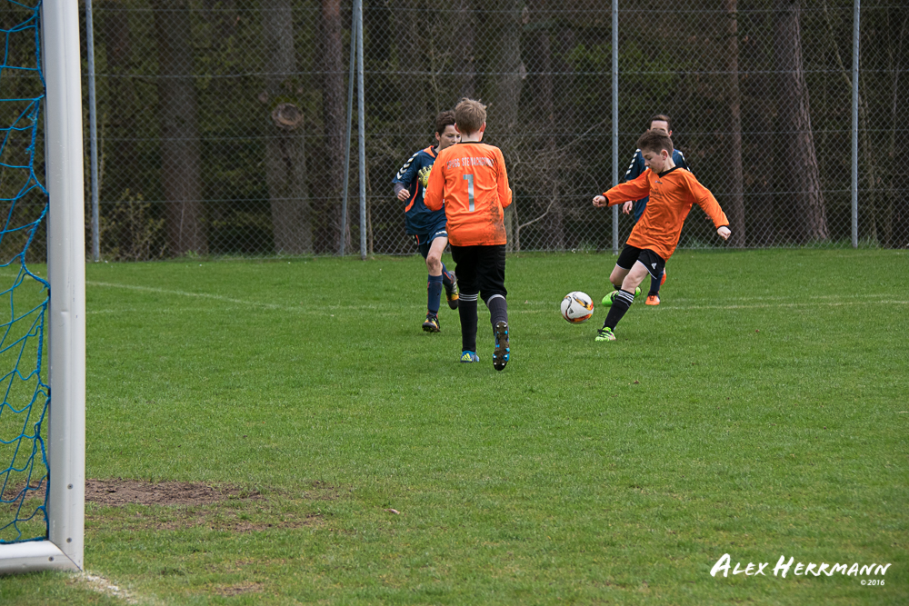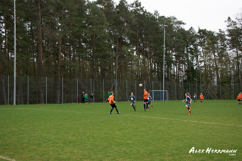 Es hat einfach nicht sein sollen. Trotz gefühlten 25:3 Torchancen konnten wir das heutige Spitzenspiel gegen den bis dahin Tabellenzweiten aus Gutenstetten (SpVgg Steinachgrund) nicht gewinnen und mussten uns mit einem 1:1 Unentschieden begnügen.Es fing alles so gut an. Der Regen hatte aufgehört und wir konnten durch einen tollen Schuß von Kimi schnell mit 1:0 in Führung gehen. Zwei, Drei weitere super Chancen landeten entweder an Latte oder Pfosten oder wir scheiterten am super aufgelegten Gästetorhüter. Der erste Angriff der Gästemannschaft war dann auch gleich ein Tor. Unser Torwart Benni konnte den Ball nicht sicher festhalten und somit stand es 1:1. Wir erspielten uns Chance um Chance, aber es wollte einfach der Ball nicht ins Netz gehen. Weitere 4 Aluminiumtreffer und der Gästetorwart verhinderten unsere Führung. Dann kurz vor dem Halbzeitpfiff, hatten wir noch die Gelegenheit, mit einem Elfmeter die Führung zu erzielen. Aber heute hat es einfach nicht sein sollen und Anton scheiterte am Gästekeeper. Somit stand es zur Halbzeit 1:1. Leider wendte sich das Blatt auch in der zweiten Halbzeit nicht. Wir erspielten uns Chance über Chance und scheiterten am Aluminium oder am gut aufgelegten Gästekeeper. Die Truppe hat alles gegeben und einfach kein Glück gehabt. Vielen Dank an alle für Ihren tollen Einsatz und immerhin konnten wir unser Serie weiter ausbauen. Bisher haben wir noch kein Punktspiel in dieser Saison verloren. Weiter so – Jungs und Sarah!