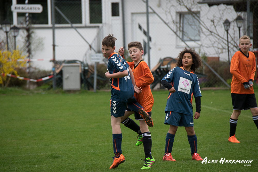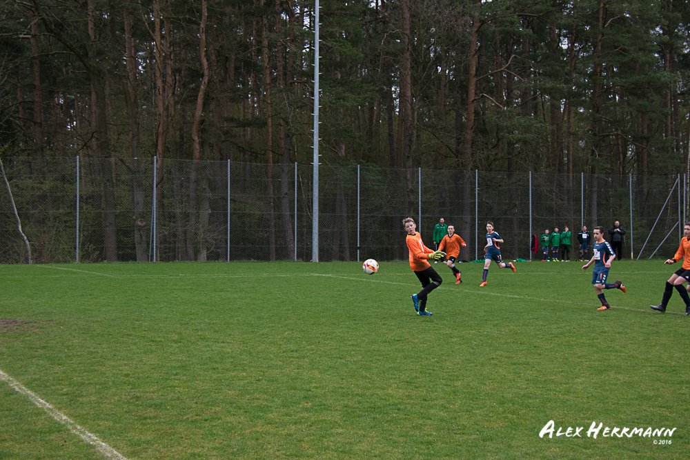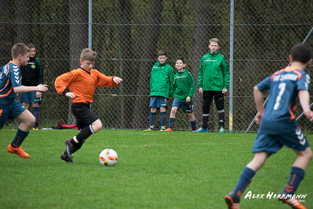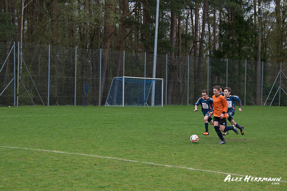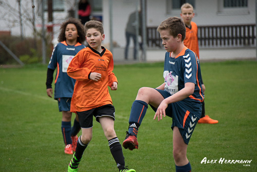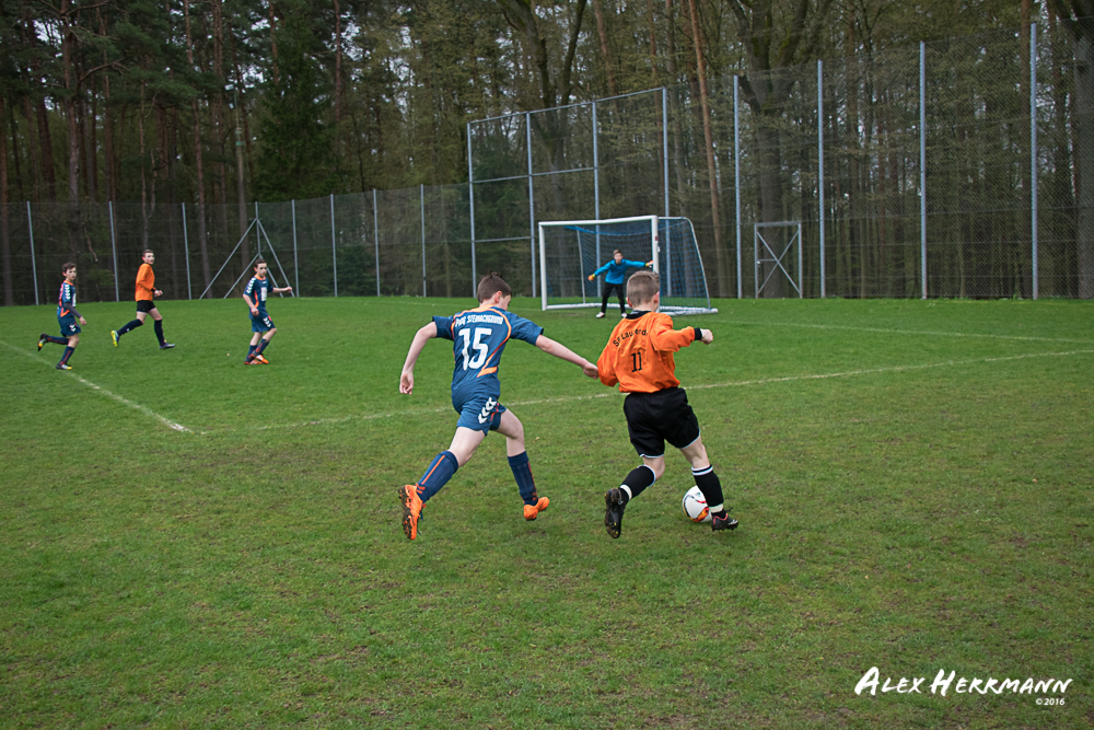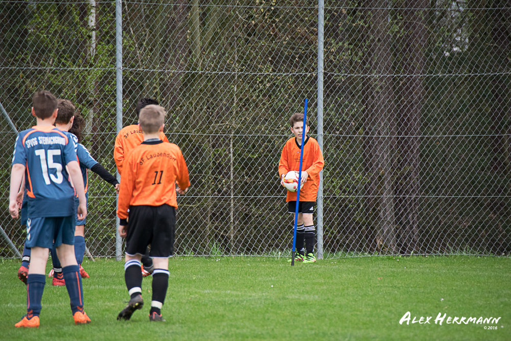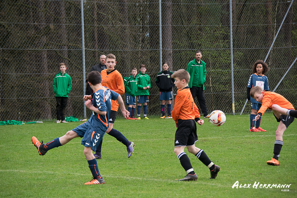Es hat einfach nicht sein sollen. Trotz gefühlten 25:3 Torchancen konnten wir das heutige Spitzenspiel gegen den bis dahin Tabellenzweiten aus Gutenstetten (SpVgg Steinachgrund) nicht gewinnen und mussten uns mit einem 1:1 Unentschieden begnügen.Es fing alles so gut an. Der Regen hatte aufgehört und wir konnten durch einen tollen Schuß von Kimi schnell mit 1:0 in Führung gehen. Zwei, Drei weitere super Chancen landeten entweder an Latte oder Pfosten oder wir scheiterten am super aufgelegten Gästetorhüter. Der erste Angriff der Gästemannschaft war dann auch gleich ein Tor. Unser Torwart Benni konnte den Ball nicht sicher festhalten und somit stand es 1:1. Wir erspielten uns Chance um Chance, aber es wollte einfach der Ball nicht ins Netz gehen. Weitere 4 Aluminiumtreffer und der Gästetorwart verhinderten unsere Führung. Dann kurz vor dem Halbzeitpfiff, hatten wir noch die Gelegenheit, mit einem Elfmeter die Führung zu erzielen. Aber heute hat es einfach nicht sein sollen und Anton scheiterte am Gästekeeper. Somit stand es zur Halbzeit 1:1. Leider wendte sich das Blatt auch in der zweiten Halbzeit nicht. Wir erspielten uns Chance über Chance und scheiterten am Aluminium oder am gut aufgelegten Gästekeeper. Die Truppe hat alles gegeben und einfach kein Glück gehabt. Vielen Dank an alle für Ihren tollen Einsatz und immerhin konnten wir unser Serie weiter ausbauen. Bisher haben wir noch kein Punktspiel in dieser Saison verloren. Weiter so – Jungs und Sarah!