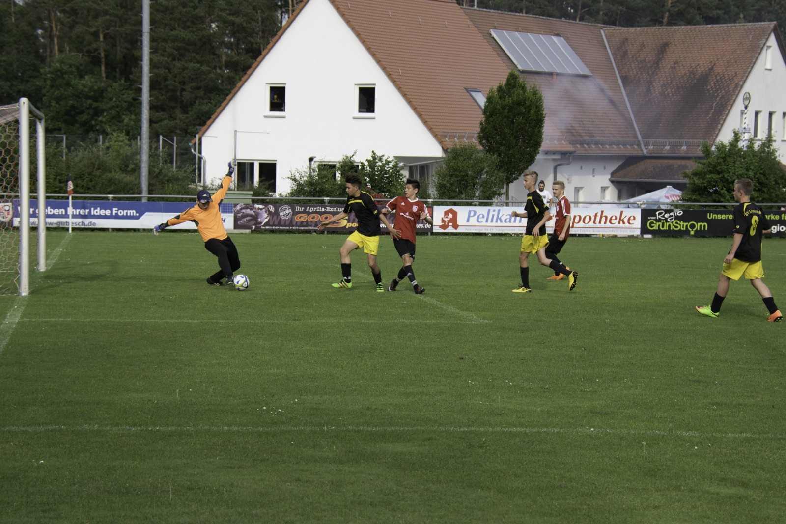 Am vergangenen Freitag hat unsere C1 Jugend im Spitzenspiel gegen die SG Losaurach/Markt-Erlbach im Spiel 1. gegen 2. leider die vorzeitige Meisterschaft verpasst.Die Kids waren mega nervös und hatten leider immer im Kopf, dass sie das Spiel unbedingt gewinnen müssen. Bei unserem Gegner war es genau umgekehrt, die wollten unbedingt das Spiel gewinnen. Wir sind leider von Anfang an nicht in die Zweikämpfe gekommen, waren immer viel zu weit weg vom Gegner und musste schon nach ein paar Minuten den 0:1 Gegentreffer hinnehmen. Danach kamen wir besser ins Spiel, hatten auch einige Großchancen, die wir aber leider nicht nutzen konnten. Zur Pause also 0:1. Nach der Pause standen wir in der Abwehr etwas besser und wenn mal ein Konter durchkam war Benni zur Stelle. Aber nach vorne ging viel zu wenig. Der Gegner presste sofort und damit kam unser Team leider überhaupt nicht zu Recht und fand auch keine Lösung um sich entsprechende Räume zu schaffen. Wir hatten zwar auch noch einige Gelegenheiten, aber leider konnten wir keine verwerten und verloren das Spiel mit 0:1.