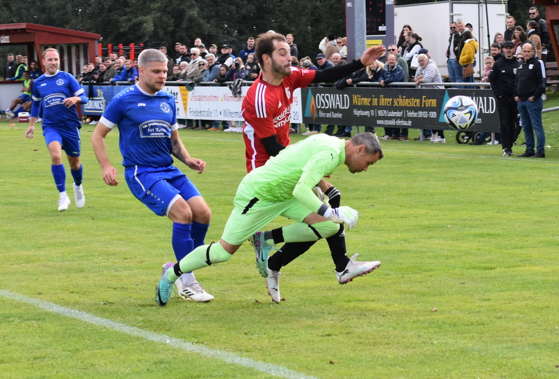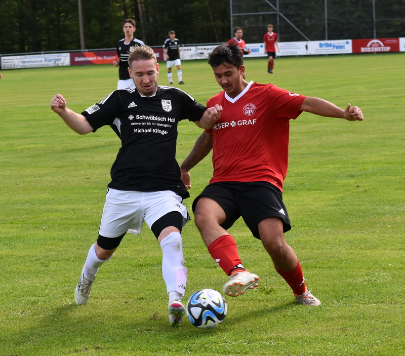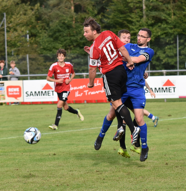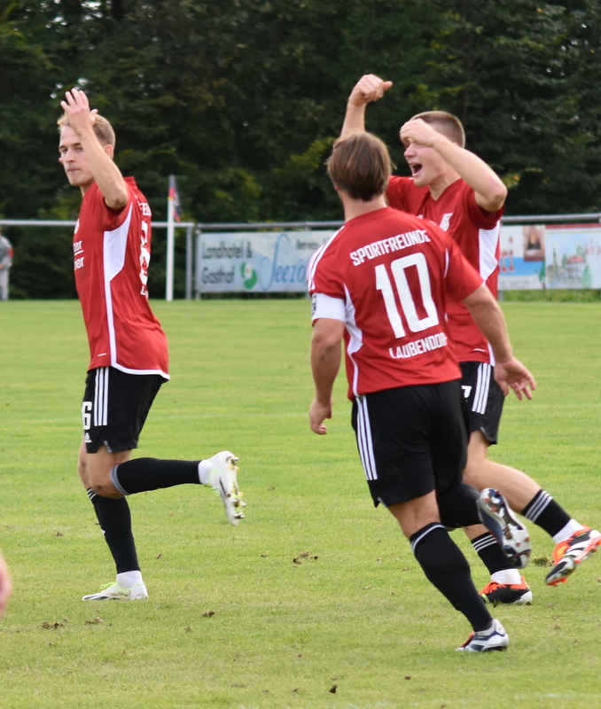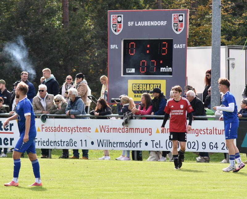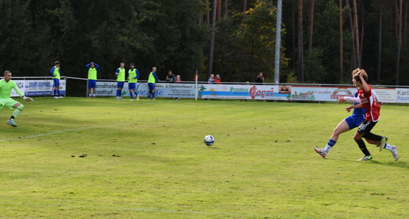 Die Gäste vom TSV starteten furios in ein in der ersten Hälfte rassiges Derby. Bereits in der 4. Spielminute wurde Peetz freigespielt und konnte den Laubendorfer Keeper umkurven und zur frühen Führung einschieben. Nur 2 Minuten später war er wieder zur Stelle und konnte eine weitere Vorlage zur 2-Tore Führung verwerten. In diesem Takt ging es weiter. Stumpf konnte seine Gegenspieler stehen lassen und stellte sogar auf 0:3 (8. Minute). Aber fast im Gegenzug meldete sich der SFL und konnte durch Hertlein auch seinen ersten Treffer verbuchen. Es entwickelte sich ein offener Schlagabtausch in dem beide Teams sehr gute Möglichkeiten hatten einen weiteren Treffer zu erzielen, doch die Chancen wurden meist vergeben. In der 32. Minute waren es erneut die Heimfans die jubeln konnten. Wassner brachte einen direkten Freistoß aus knapp 20 Metern sehenswert im rechten oberen Toreck unter. Dem vorangegangen war ein Platzverweis auf Seiten des TSV. Zarnescu war alleine auf dem Weg zum Tor und wurde von Hientz per Notbremse gestoppt. Nach dem Seitenwechsel wurde die Partie etwas zerfahrener. Langenzenn konzentrierte sich aufs Verteidigen und versuchte ab und an per Konter gefährlich zu werden. Laubendorf indessen konnte nicht so richtig Kapital aus der zahlenmäßigen Überlegenheit schlagen und agierte mit langen Bällen. Folge war eine zweite Hälfte, die nicht mehr so munter war wie die erste Hälfte und mit deutlich weniger Tormöglichkeiten. In den Schlussminuten versuchte es der SFL nochmal mit der Brechstange aber es gelang nicht sich eine klare Tormöglichkeit zu erarbeiten und am Ende stand das knappe Ergebnis aus der ersten Hälfte.
