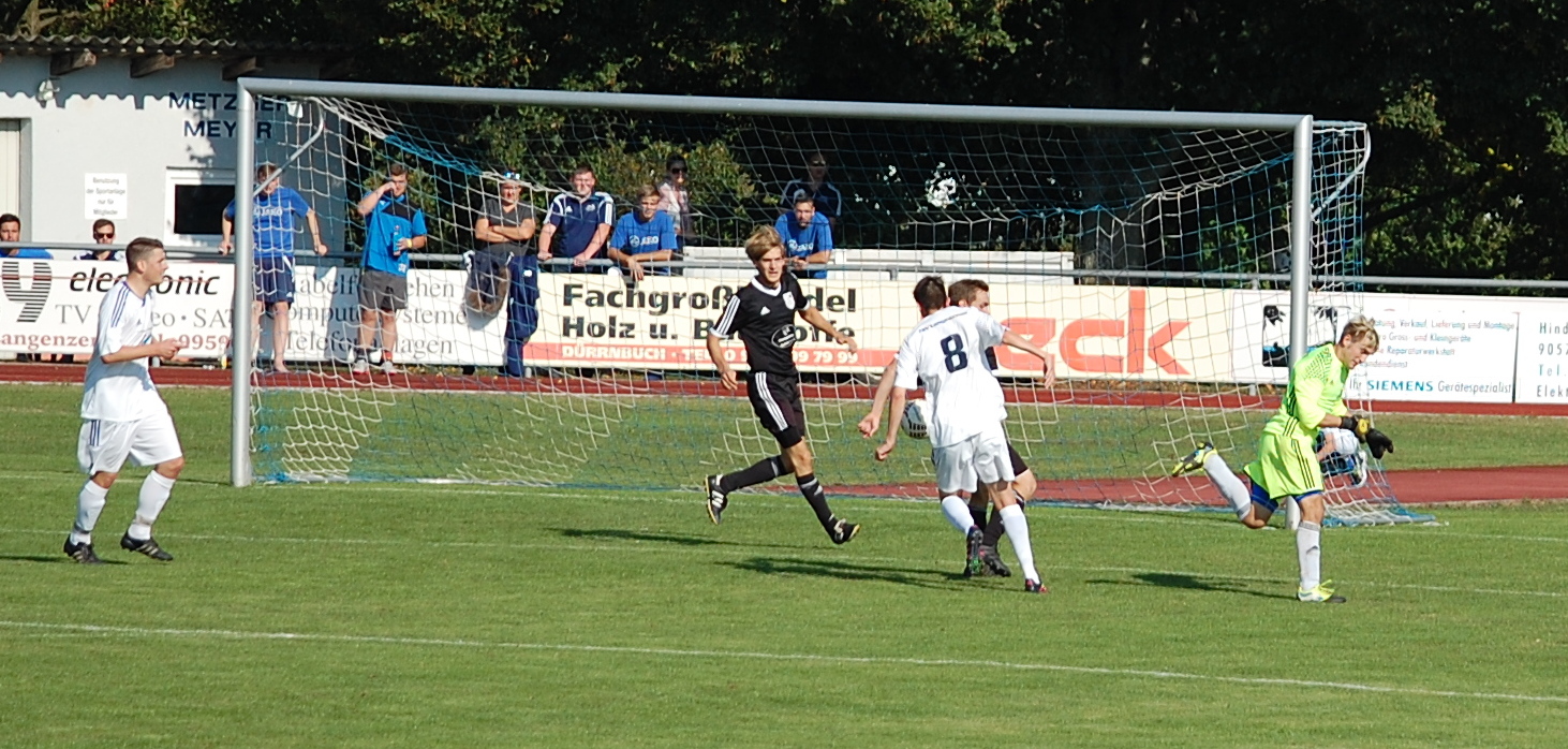 .. dann das 0:1, als Alex Schneider die Verwirrung in der SFl- Hintermannschaft ausnutzt