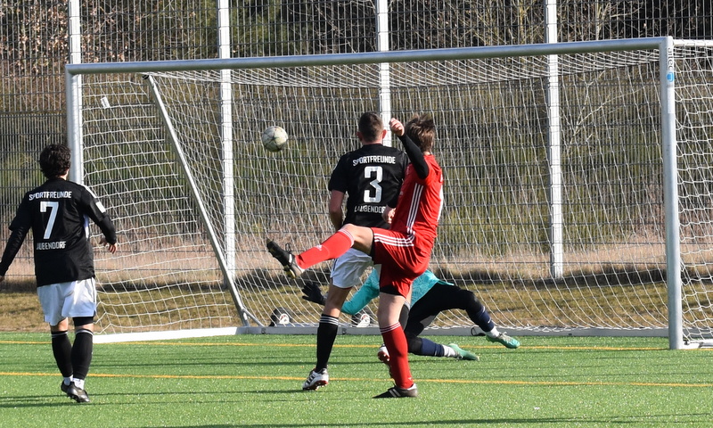 Ohne Vier, Andi Becker, Marc Bernreuther, Dani Werner und Anton Gattinger fehlten verletzt, kam die Mannschaft nur schwer in die Partie. Der höherklassige Gegner presste von Anfang an und zwang die Laubis zu vielen Ballverlusten im Mittelfeld. Dombühl lies den Ball geschickt durch die eigenen Reihen laufen und fand immer wieder freie Räume vor dem SFL – Tor. Florian war von Anfang gefordert und hielt was zu halten war. Er konnte aber nicht verhindern, dass Dombühl schnell auf 3:0 davon zog. Der Gegner war eingespielter und ballsicherer als die Laubis, für die es der erste Test auf dem Platz seit langem war. Unglücklich dann auch noch die Verletzung im Gesicht von Nico Schneider, der ausgewechselt werden musste.Gute Besserung und schnelle Genesung von hier aus. So ging es mit 0:4 in die Pause. Mit einigen Wechseln auf beiden Seiten blieb es auch in Halbzeit zwei unterhaltsam, wobei die Laubis mit zwei Toren das Endergebnis von 2:7 etwas freundlicher gestalten konnten. Es war alles in allem ein guter Test, dem weitere folgen werden bevor es wieder um Punkte geht.