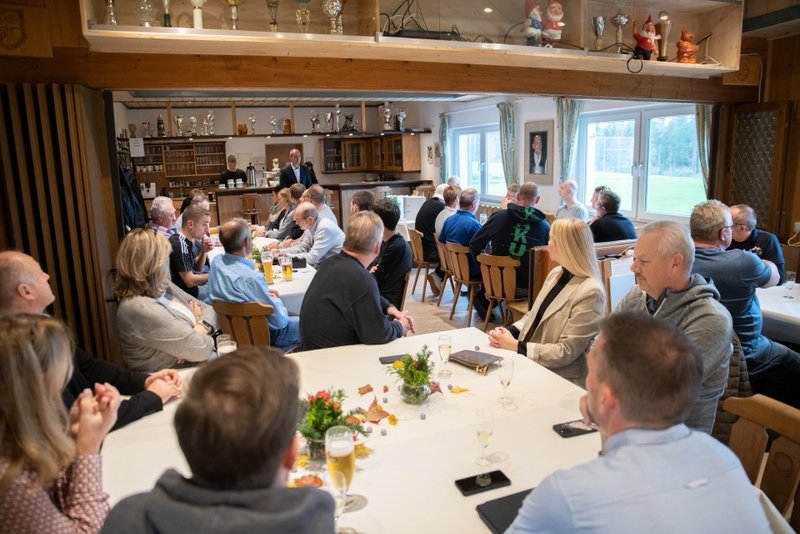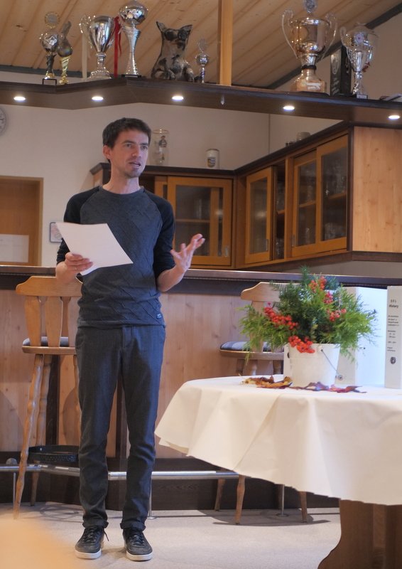 Vorstand Christian Gall stellte in seiner Begrüßung die aktuelle Zahl von 1163 Mitglieder vor und auch wie sie sich auf die Abteilungen Fußball (520), Fitness (503), Ski (233), Ringen (129) und Sänger (40) aufteilen, wobei viele in mehreren Sparten tätig sind. Er freute sich, dass ein derartiges Werk entstanden ist, das wahrscheinlich in weitem Umkreis ein Alleinstellungsmerkmal haben wird.