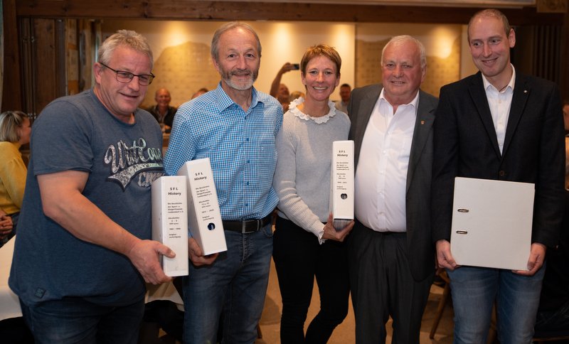 Am Samstag, den 5. November, war es so weit. Was in Hunderten von Stunden, bei Tag, und in Teilen auch bei Nacht, in mühevoller Kleinarbeit entstand, wurde als „SFL-History“ in vier gut gefüllten Ordnern der Vorstandschaft übergeben.