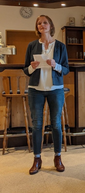 Pfarrerin Schönauer betonte in ihrem Beitrag wie herzlich ihre Familie aufgenommen wurde und sie schnell Anschluss bei den Sportfreunden gefunden haben. Sie lobte die viele Arbeit, die auch von Freud und Leid berichtet. Sie wies darauf hin wie wichtig die Arbeit im Team ist, was auch für das Team Gottes gilt und schloss ihren Vortrag mit „Gott behüte euch alle“. Stephan Schmidt und Klaus Schneider beleuchteten das Zustandekommen der SFL-History aus ihren eigenen Erfahrungen, während Manfred Durlak in seiner Funktion als Ehrenamtsbeauftragter die herausragende ehrenamtliche Arbeit der Beteiligten über viele Jahre, aber vor allem die von Bernhard Jakob, lobte. Er konnte auch zu vielen Geschehnissen Bilder zur Verfügung stellen und erinnerte daran, wie der Besuch von Bayern 1 im Jahr 2012 zu Stande kam. Alles nachzulesen in der Vereinsgeschichte.
