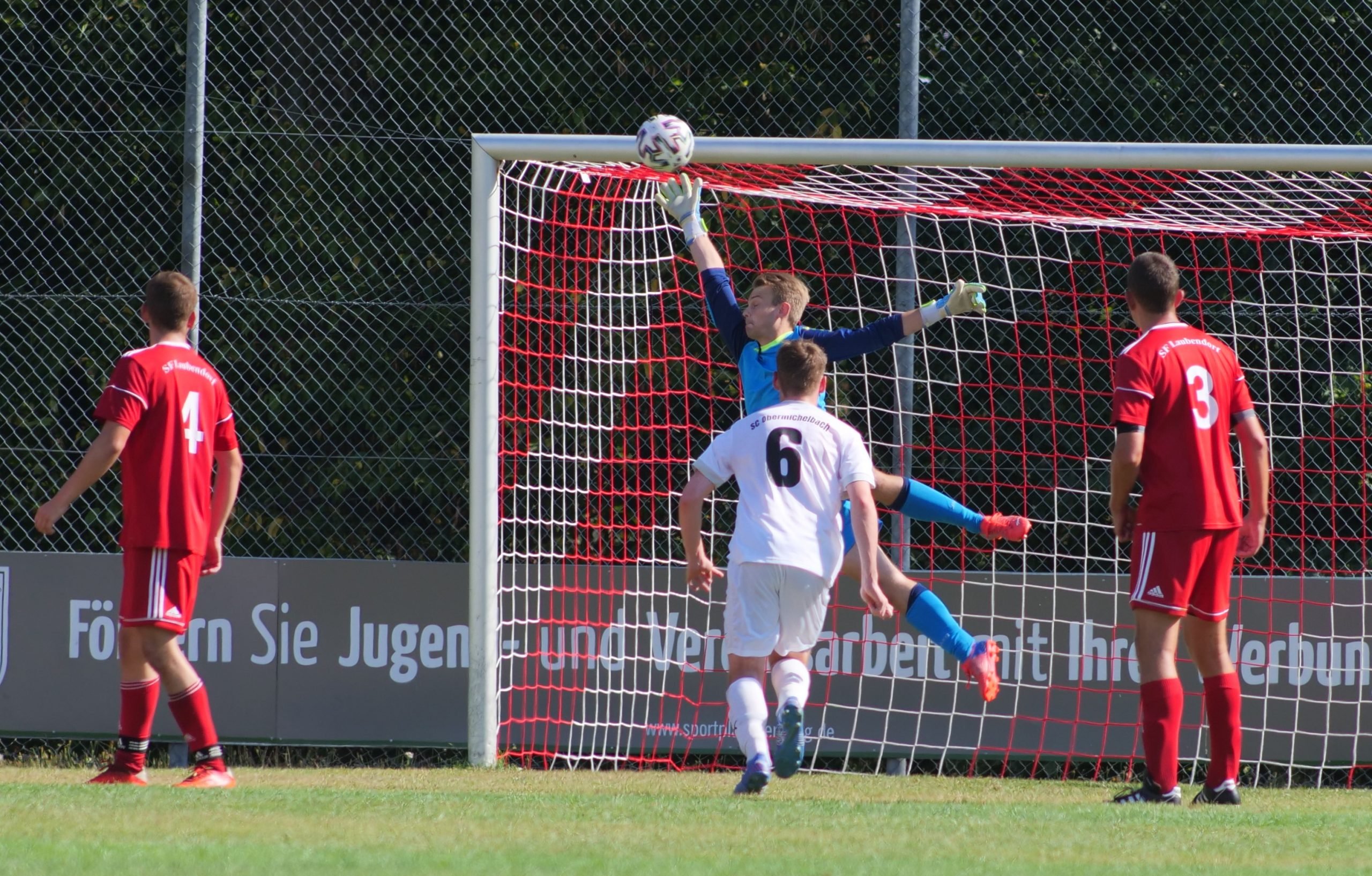 Beide Mannschaften zeigten sich zunächst ausgeglichen. Auf beiden Seiten gab es Tormöglichkeiten die aber anfangs noch vergeben wurden. In der Schlussphase der ersten Hälfte wurde es dann turbulent. Als erstes konnte der Gast aus Obermichelbach in Führung gehen als der SFL den Ball nicht geklärt bekam und Hemmeter abstaubte. Direkt vom Anstoßpunkt weg kombinierte sich der SFL schön in den gegnerischen Strafraum wo Gattinger Wassner bediente. Dieser konnte ausgleichen. Wiederum nur eine Minute später war es erneut Wassner der freigespielt wurde und das Spiel mit seinem zweiten Treffer drehte. Gleich nach dem Seitenwechsel konnten die Laubendorfer die Führung ausbauen als Werner und Knies den Ball gemeinsam ins Tor köpften. Trotz der Führung mussten die 110 Zuschauer noch lange zittern, denn der Gast kam noch einmal zurück. Ein direkter Freistoß von Berninger an dem der Schlussmann noch die Fingerspitzen an den Ball brachte und der Pfosten mithalf bedeutete für Obermichelbach noch einmal den Anschlusstreffer. In der Schlussphase musste der SFL dann zeitweise noch mit 10 Mann agieren, da Bernreuther eine Zeitstrafe bekam. Der Einsatz wurde aber belohnt und man konnte als Sieger vom Platz gehen auch weil ein weiterer Versuch der Obermichelbacher in der letzten Spielminute an der Latte landete und von dort aus dem Keeper in die Hände sprang.