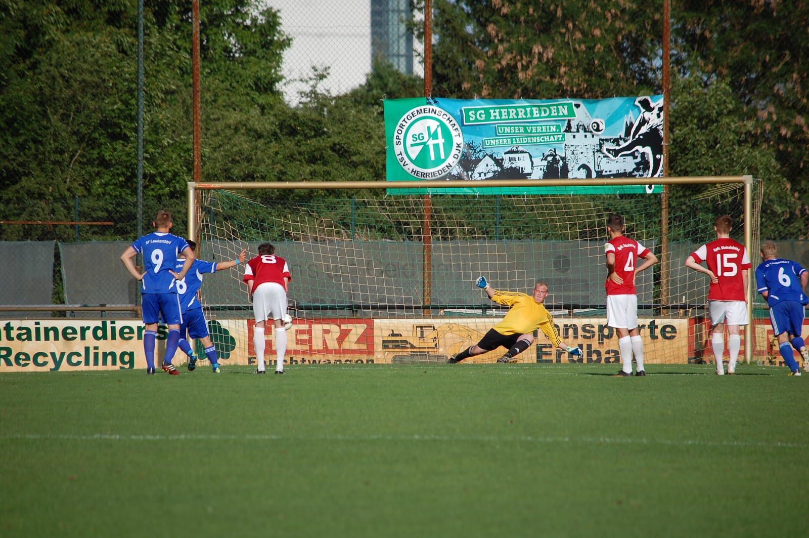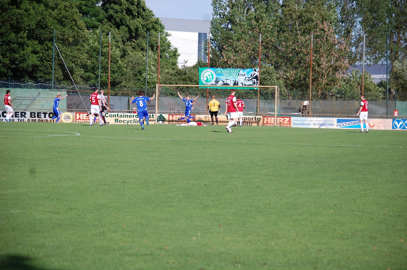Bei sehr guten Rahmenbedingungen in Herrieden begann die 1.Mannschaft forsch und ging bereits nach 5 Minuten in Führung. Daniel Bauer schickte Johannes Keppner auf die Reise, der Bauer wieder in Szene setzten wollte, doch der Ball sprang zurück zu Keppner und dieser konnte das leere Tor freistehend nicht mehr verfehlen. Direkt im Anschluß  jedoch die kalte Dusche für den SFL. Mit ein Doppelschlag in der 7. und 10.Minute ließen die Sportfreunde aus Dinkelsbühl aufhorchen. Der SFL suchte eine passende Antwort, doch sowohl Benkert, als auch Keppner scheiterten freistehend. Im Gegenzug unterstrich der Gegner seine kaltschnäuzigkeit und erhöhte nach einen schönen Doppelpass zur 3:1 Führung. Der SFL verlor die nötige Sicherheit im Spielaufbau, suchte aber weiterhin das Heil in der Offensive.  Kurz vor der Halbzeit verwandelte Klaus Jakob einen Elfmeter zum 2:3 Anschlußtreffer, nachdem Daniel Bauer im Strafraum am Abschluß gehindert wurde.