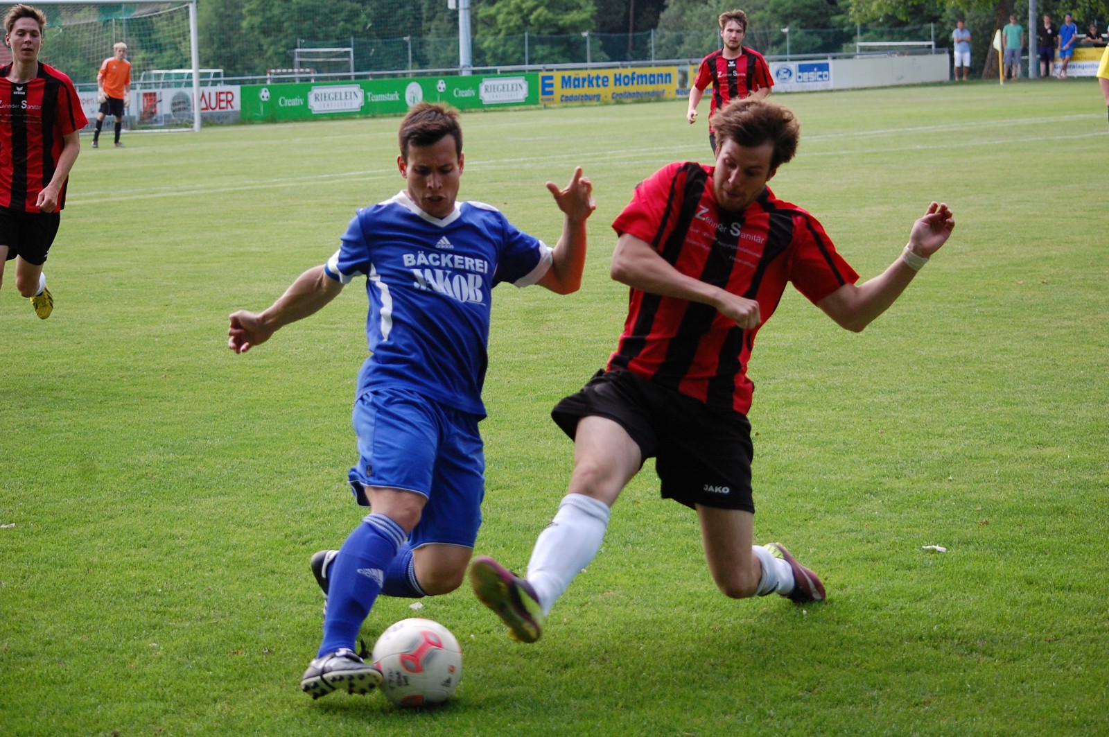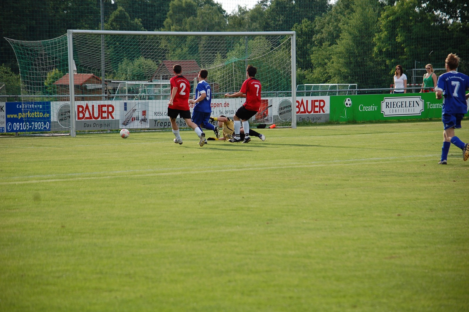 Mit einem auch in dieser Höhe verdienten 6:0 kehrte die Zweite vom notwendigen Plazierungsspiel gegen den SV Burggrafenhof aus Cadolzburg zurück. Unsere Reserve spielte heute wie aus einem Guss und zeigte bereits in der 1. Halbzeit, dass man das 0:1 vom Rückspiel in Laubendorf vergessen machen wollte. Und so rollte Angriff auf Angriff gegen das Tor des SVB und Luca Horneber sorgte per Kopf für das frühe 1:0. Danach war Kapitän Markus Kraus an der Reihe. Erst versenkte er einen weiteren Kopfball schulmäßig im Tor des SVB, um dann einen an Luca Horneber verursachten Elfmeter sicher zu verwandeln. Mit 3:0 ging es in die Pause und auch in der 2. Halbzeit erzielte die deutlich überlegene Reserve der SFL regelmäßige Tore durch Luca Horneber, Stephan Schmidt und Daniel Benkert bis zum 6:0 Endstand. Das Ergebnis hätte bei konsequenter Chancenausnutzung eher noch höher ausfallen können, während Torwart Frank Hallwas einen ruhigen, wenn auch sehr warmen Abend verbringen durfte. Jetzt geht es am Mittwoch den 18.6. in Dietenhofen gegen Fichte Ansbach weiter.
